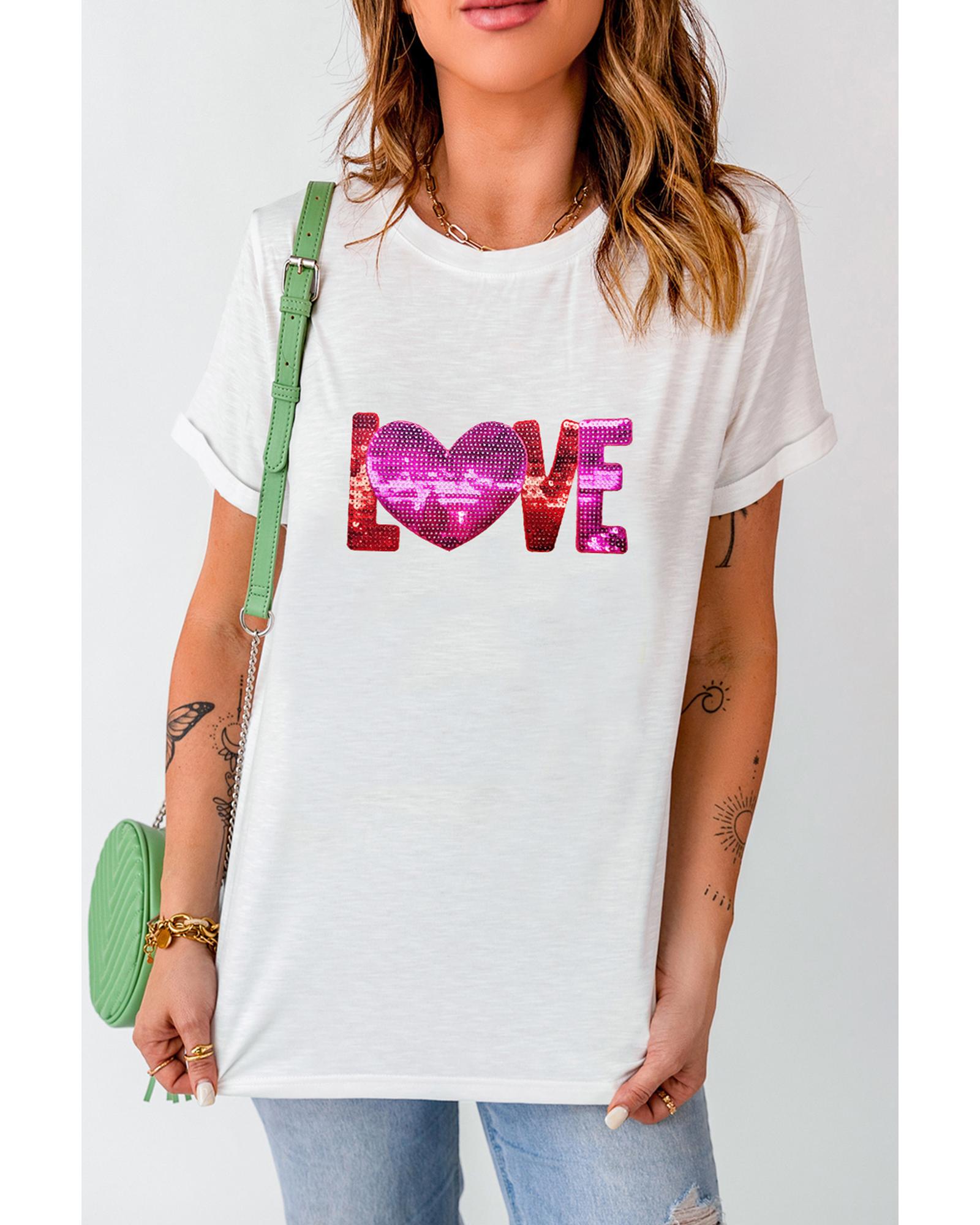 White Heart LOVE Patched Pattern Crewneck Valentines T Shirt – XL