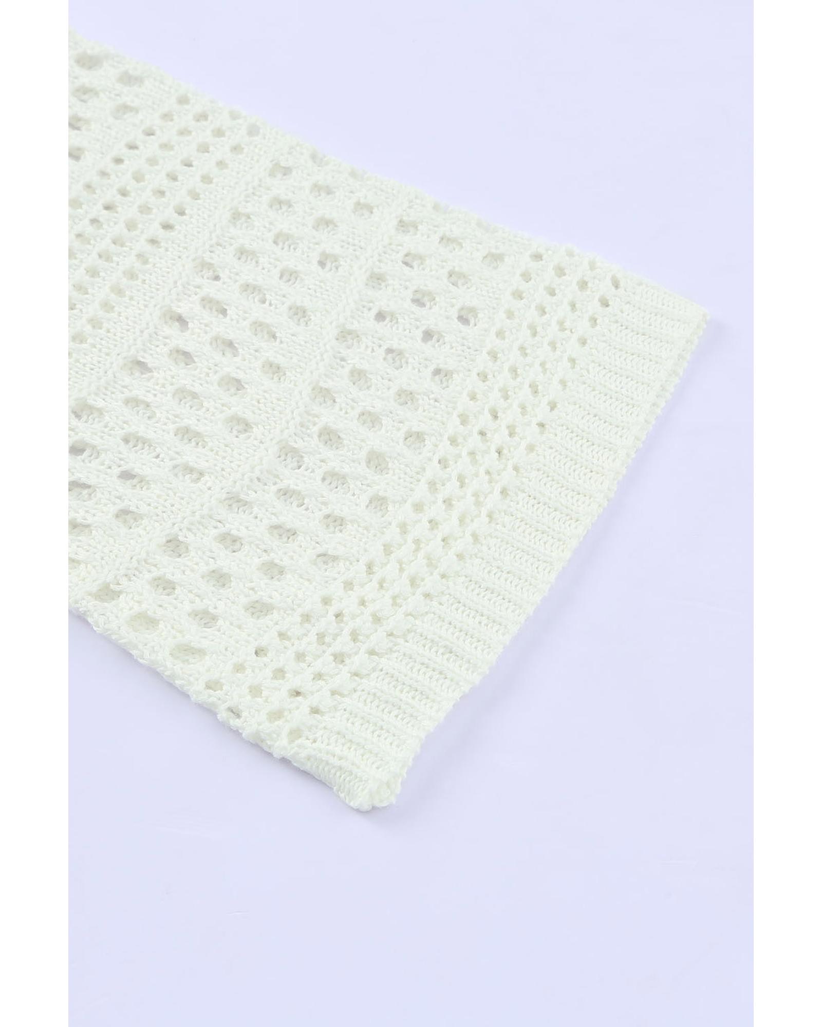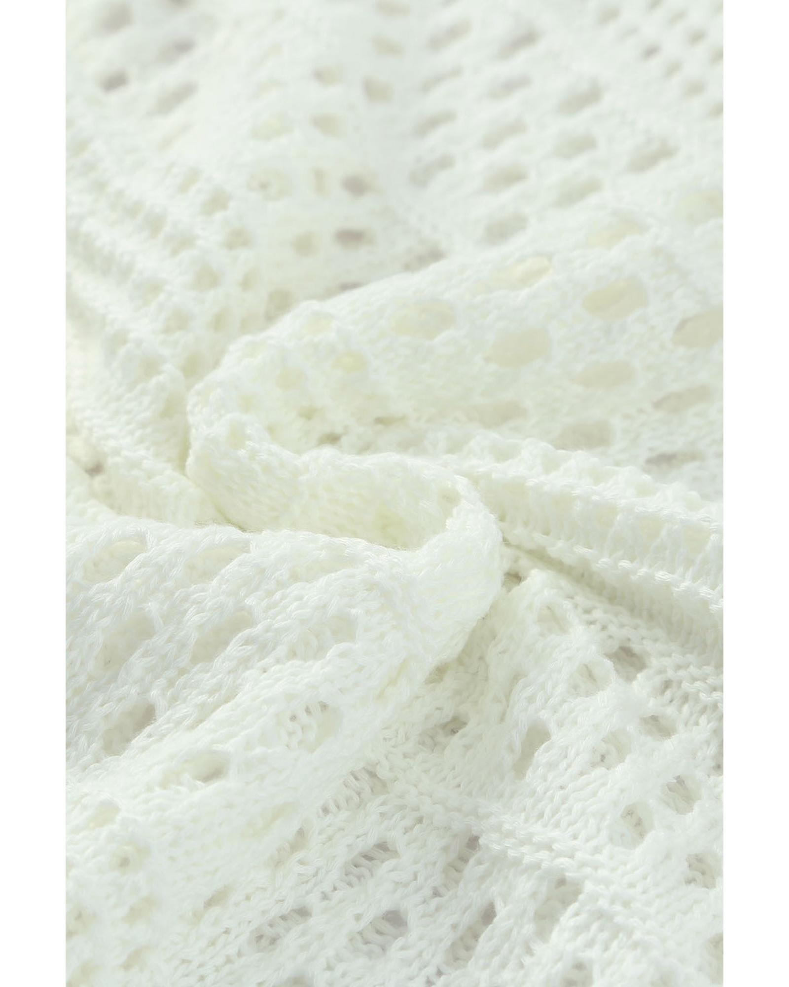 White Hollow Out Crochet V Neck Pullover Sweater – L