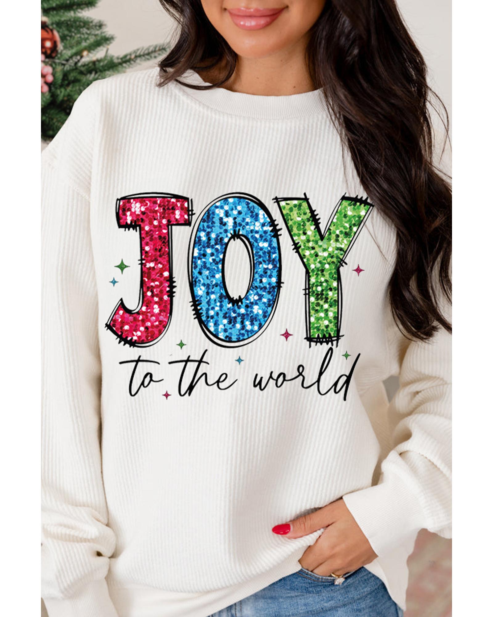 White JOY to the world Ribbed Crewneck Pullover Sweatshirt – L