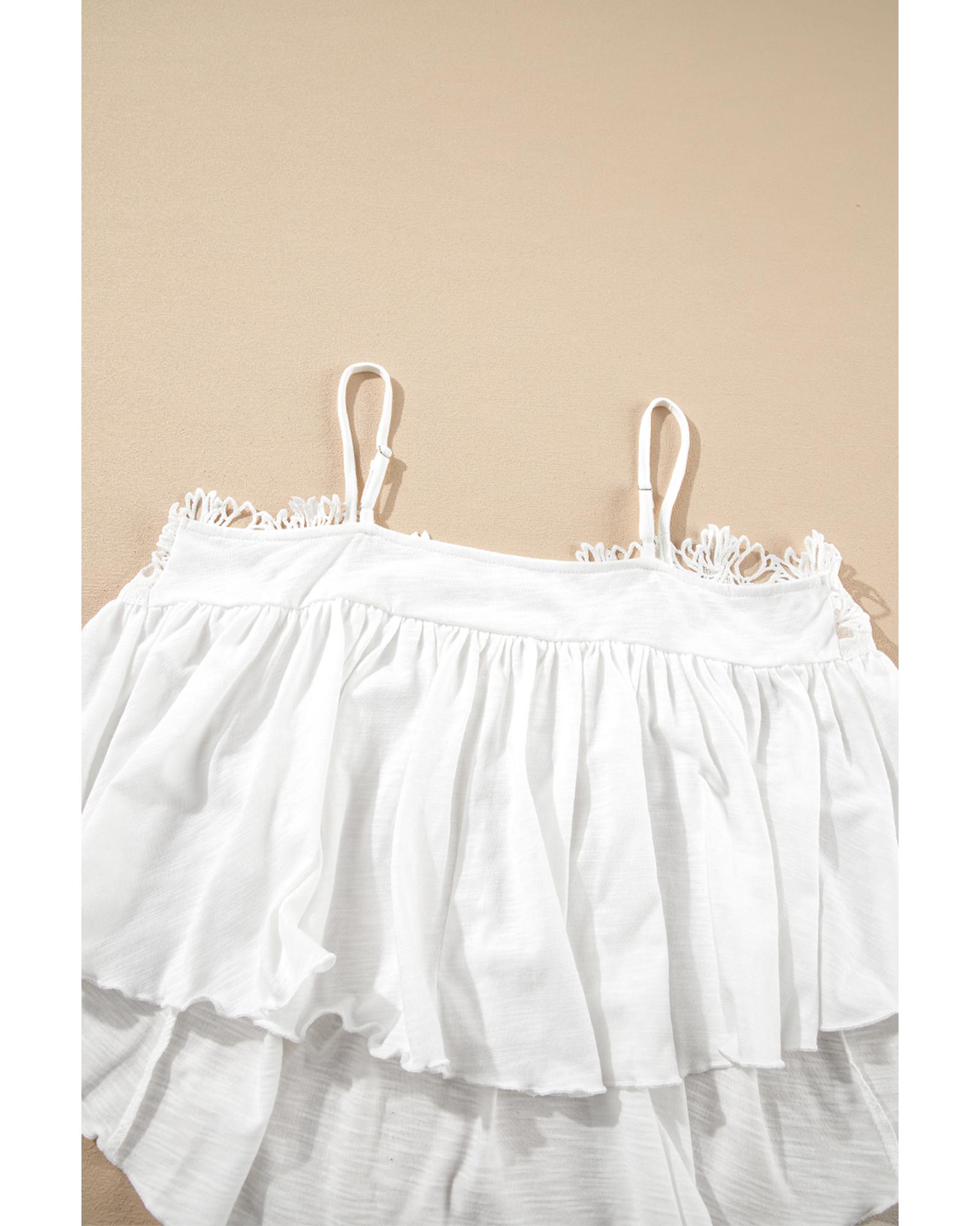 White Lace Splicing Spaghetti Straps Ruffle Flared Tank Top – XL