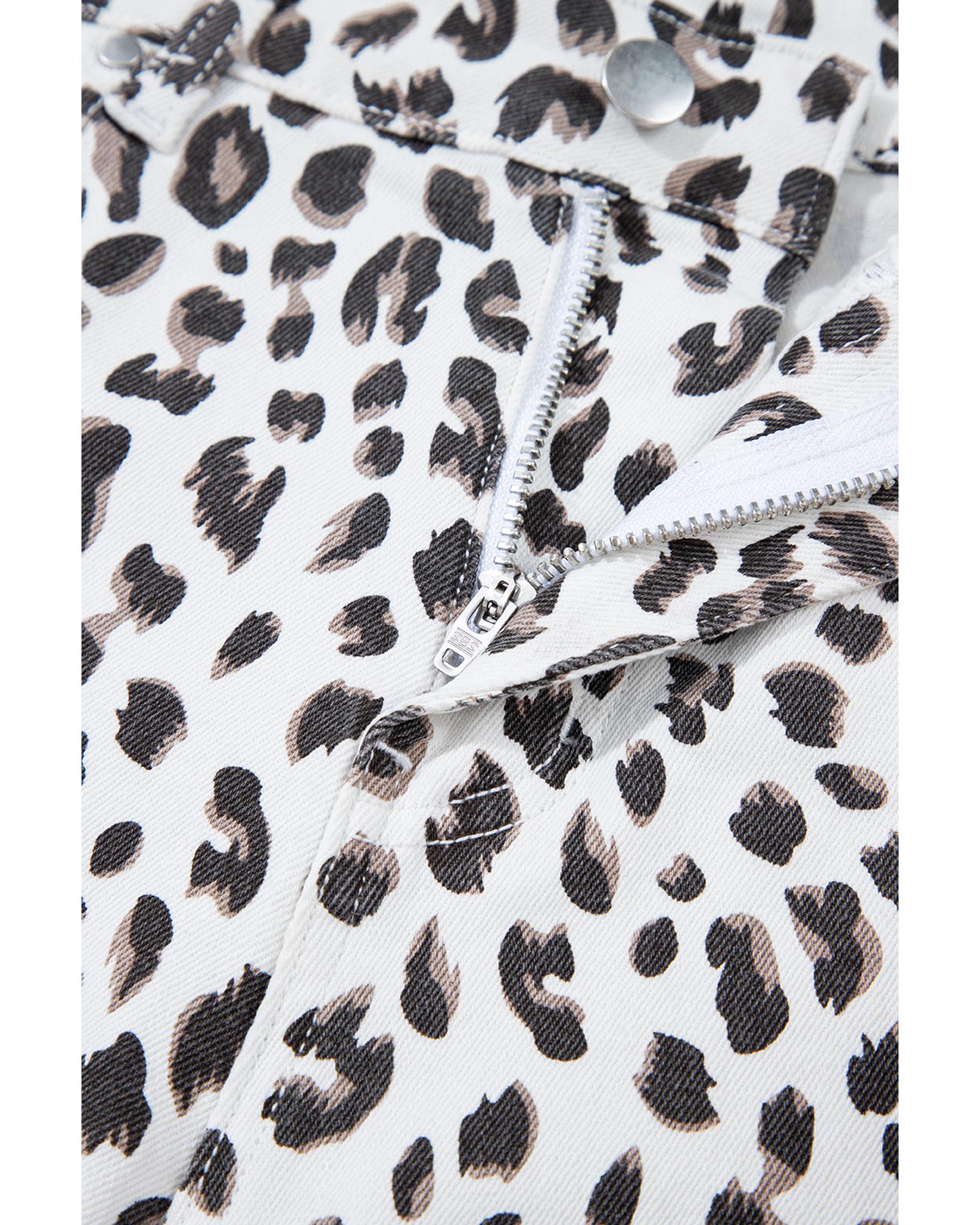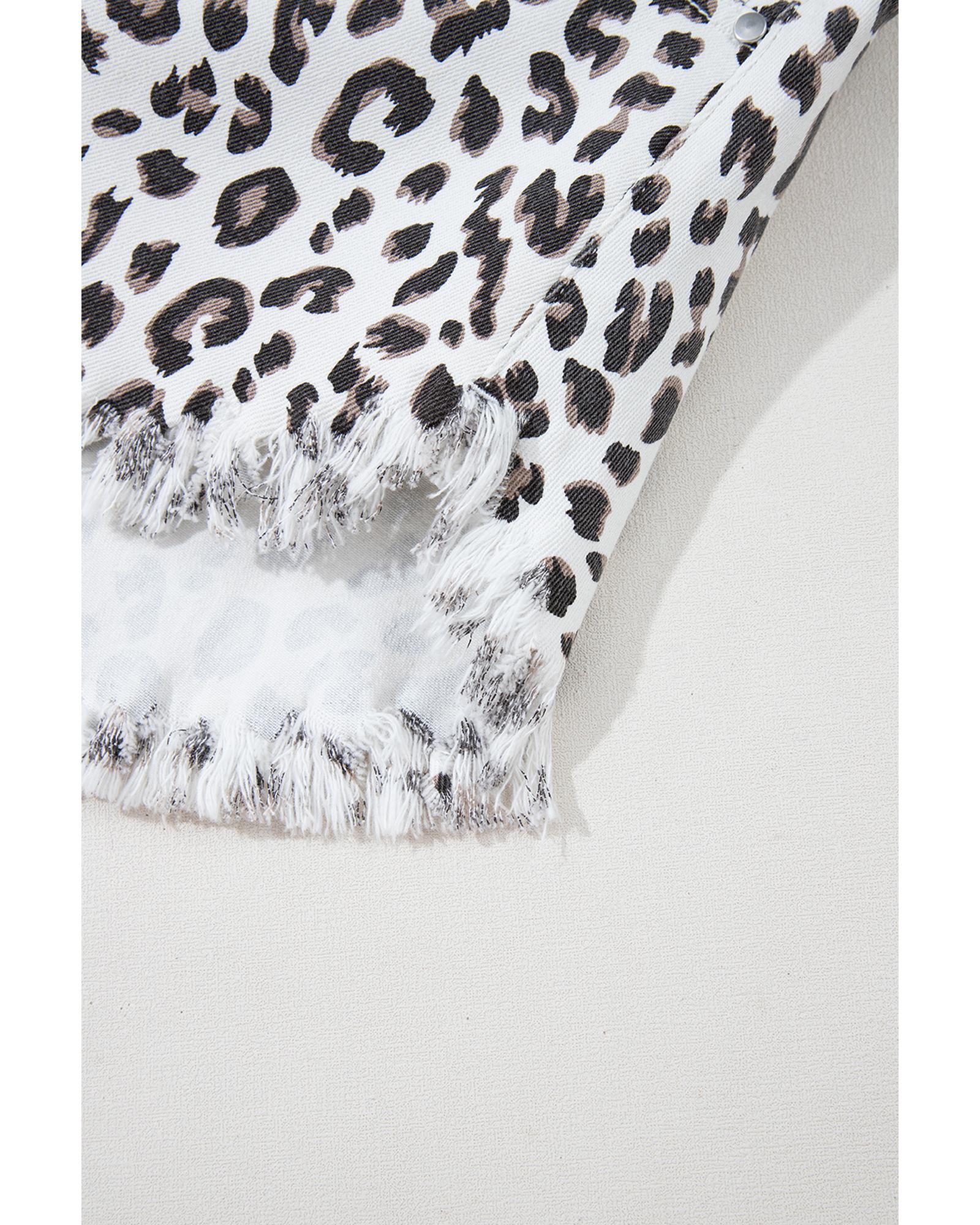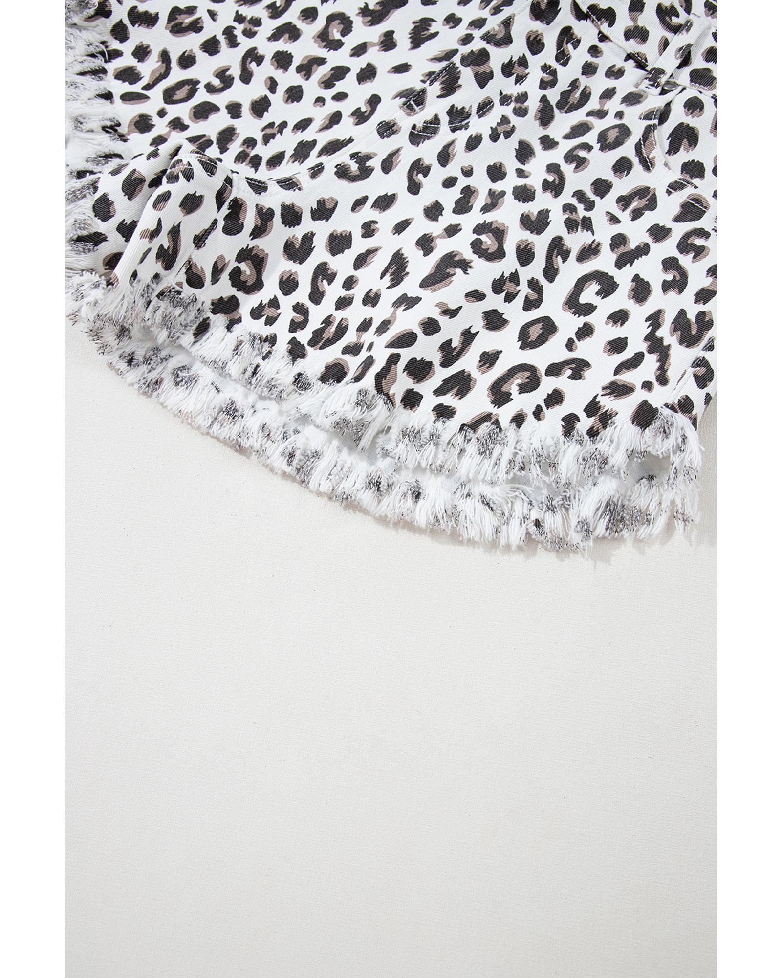 White Leopard Frayed Hem Denim Shorts – 10 US