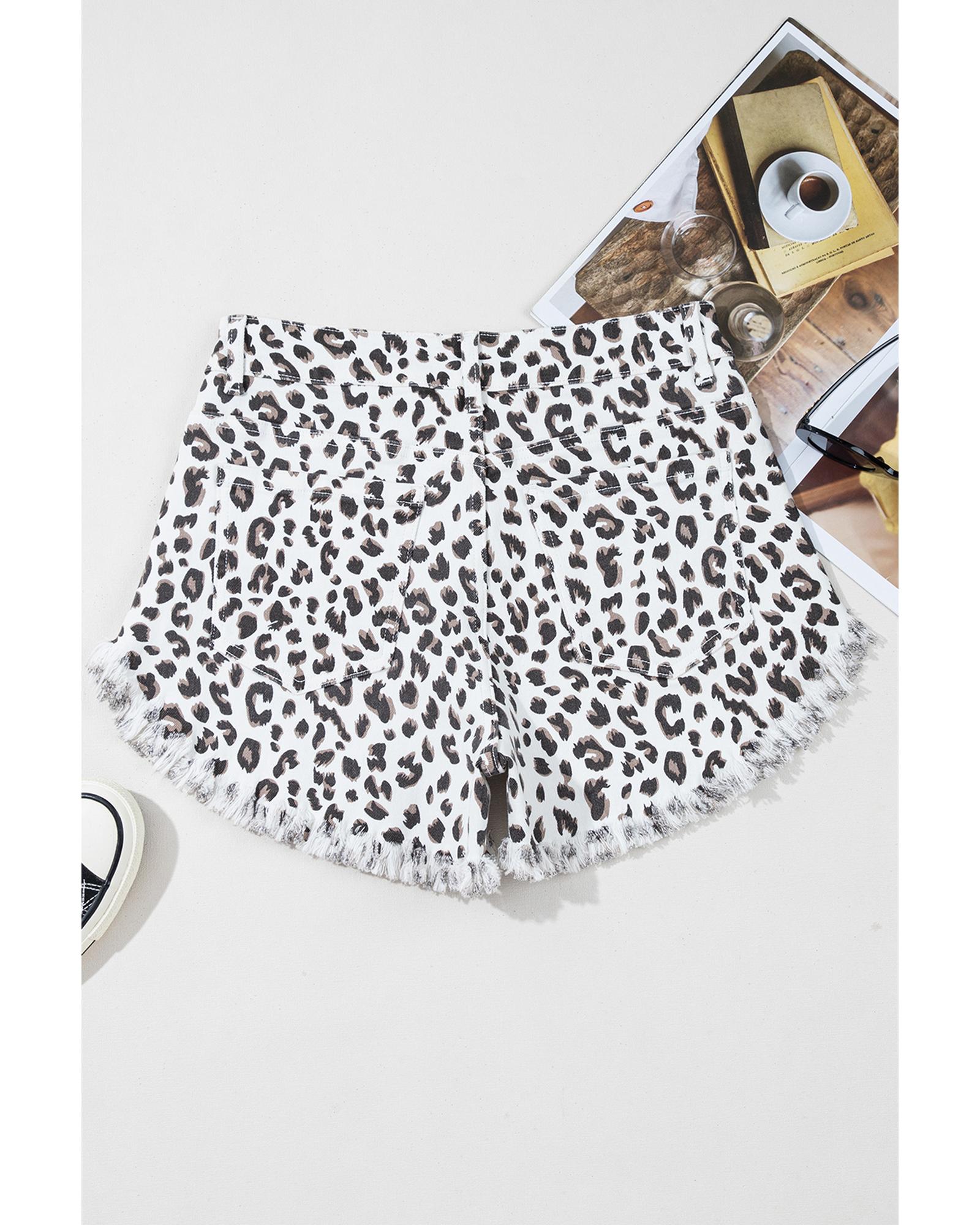 White Leopard Frayed Hem Denim Shorts – 12 US