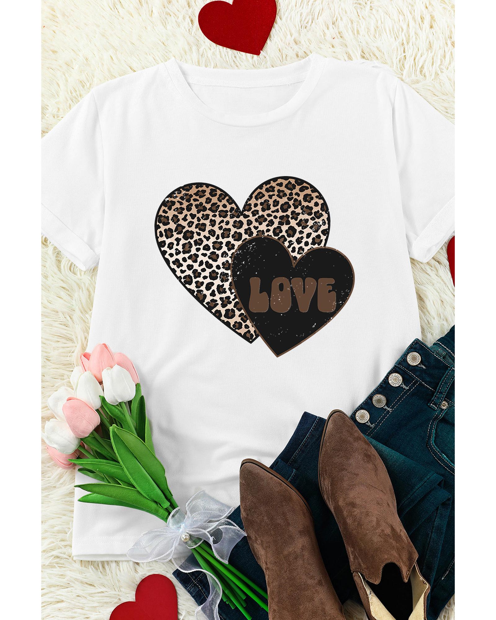 • White Leopard LOVE Double Heart Printed Valentines Graphic Tee