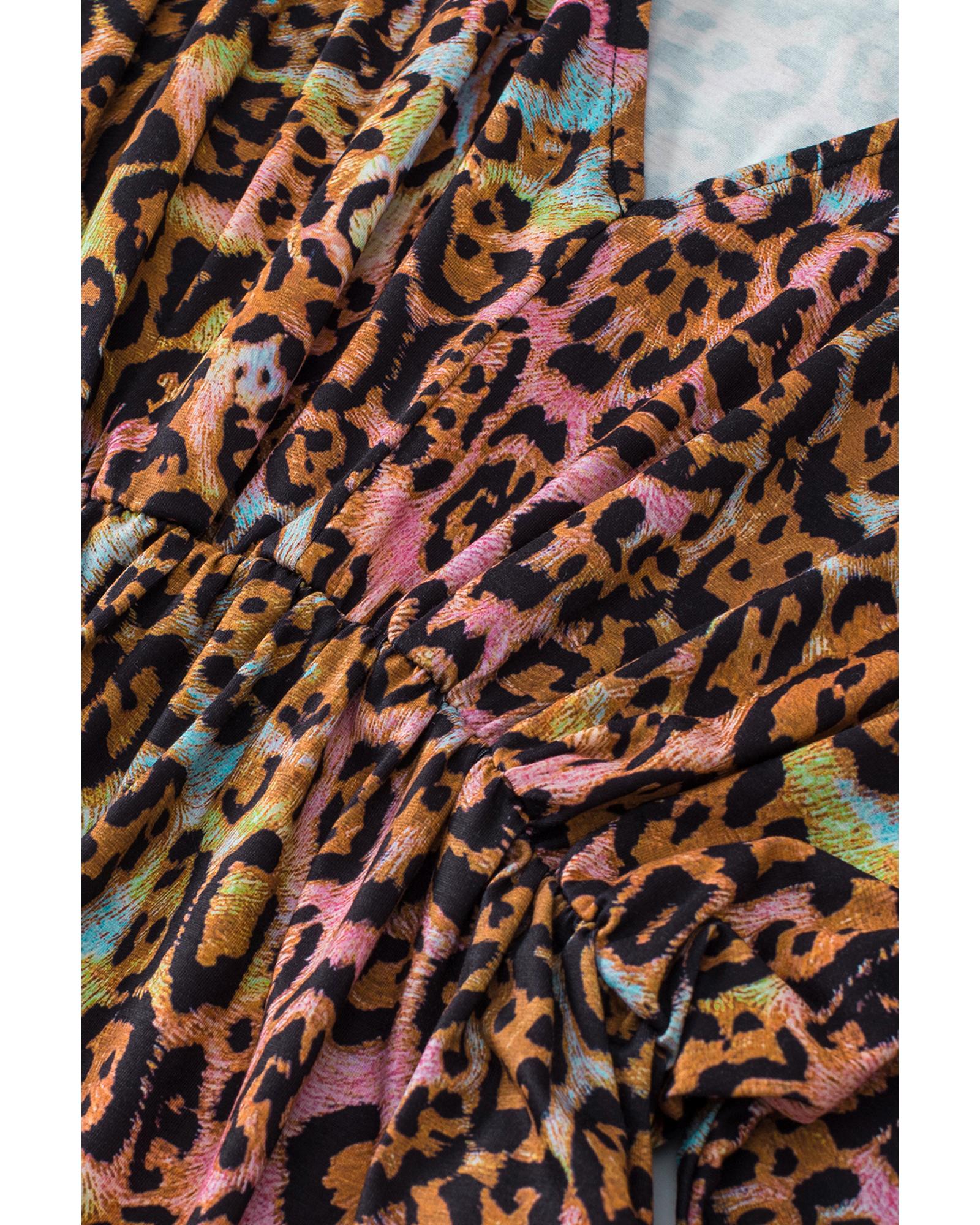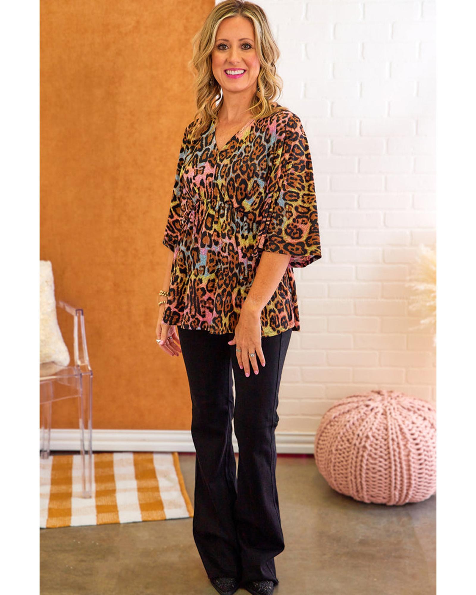 White Leopard Print Wide Sleeve Peplum Hem Blouse – XL