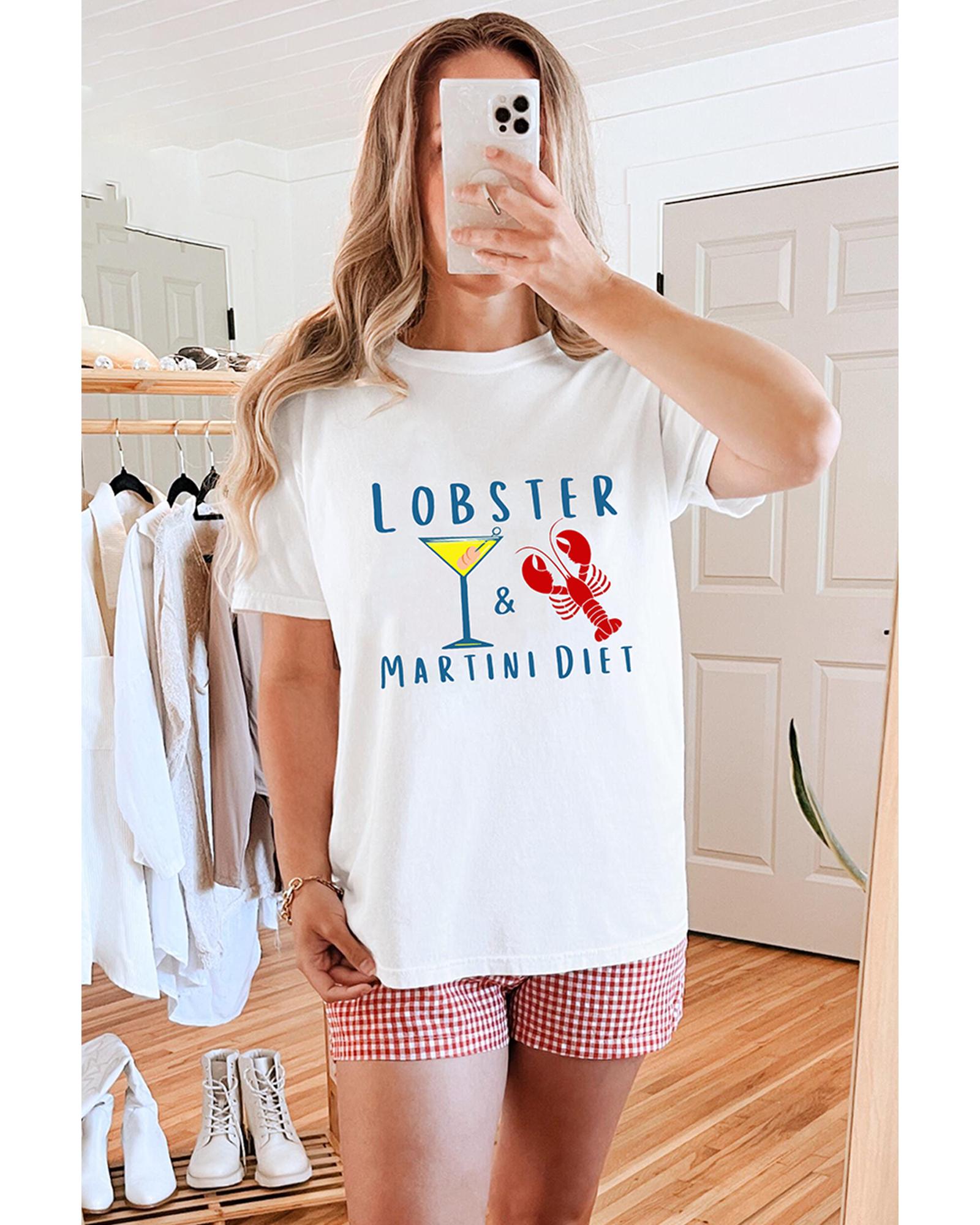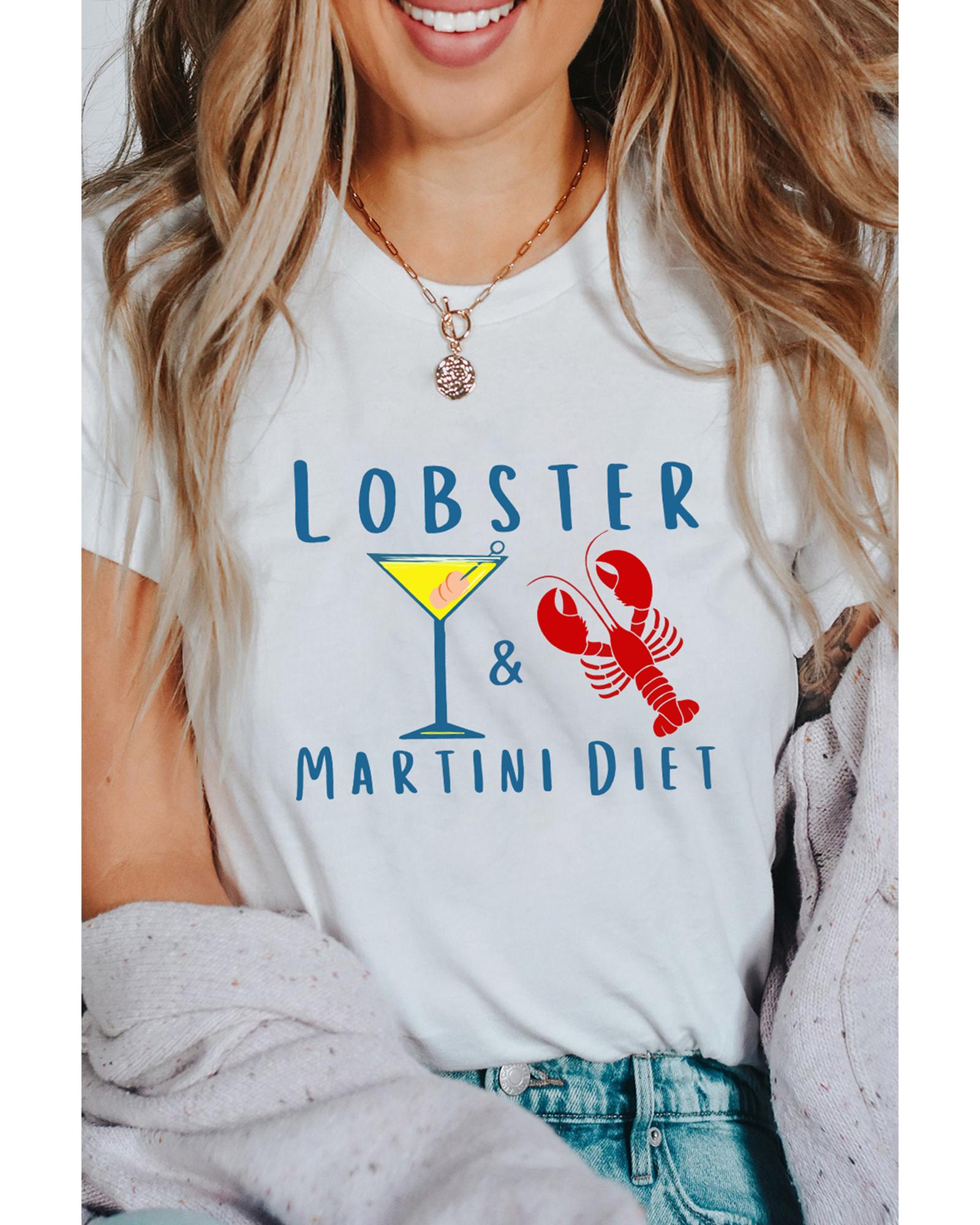 - White LOBSTER MARTINI DIET Cocktail & Crawfish Print T