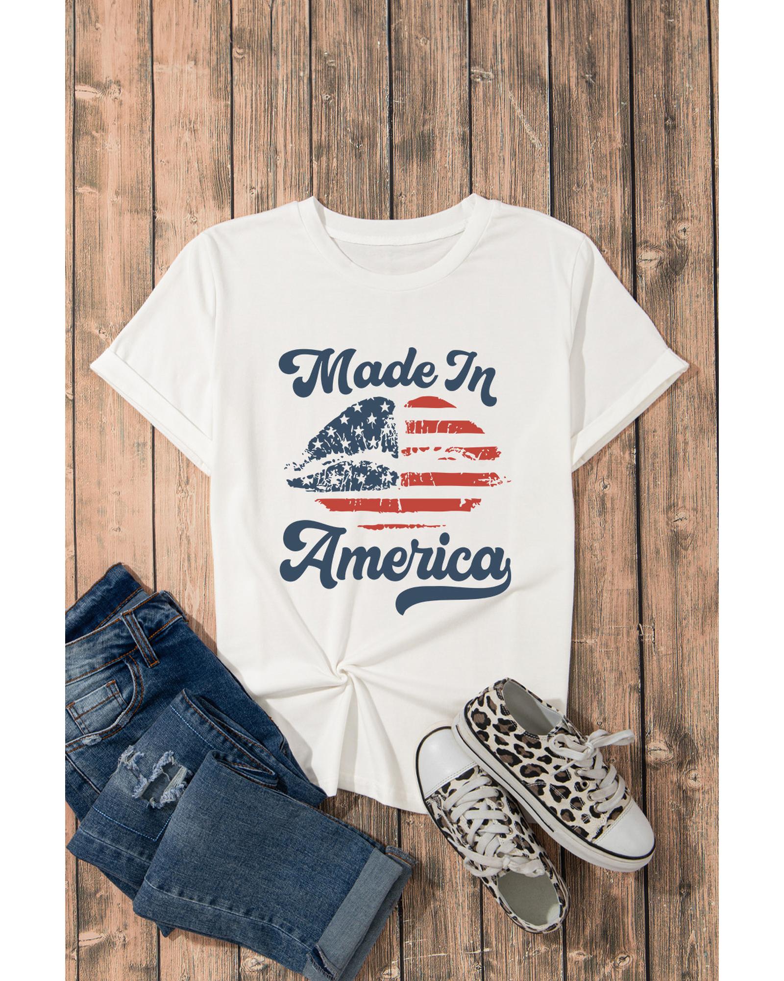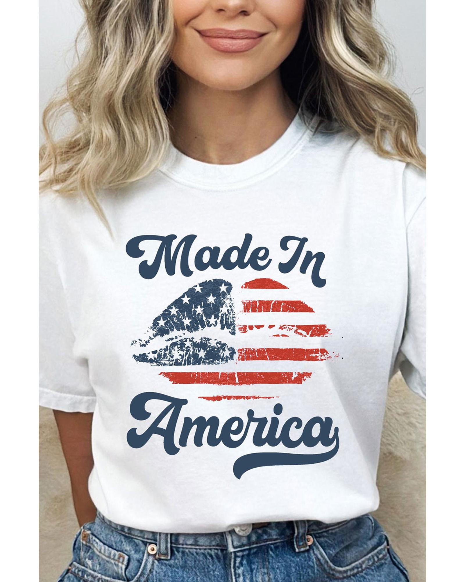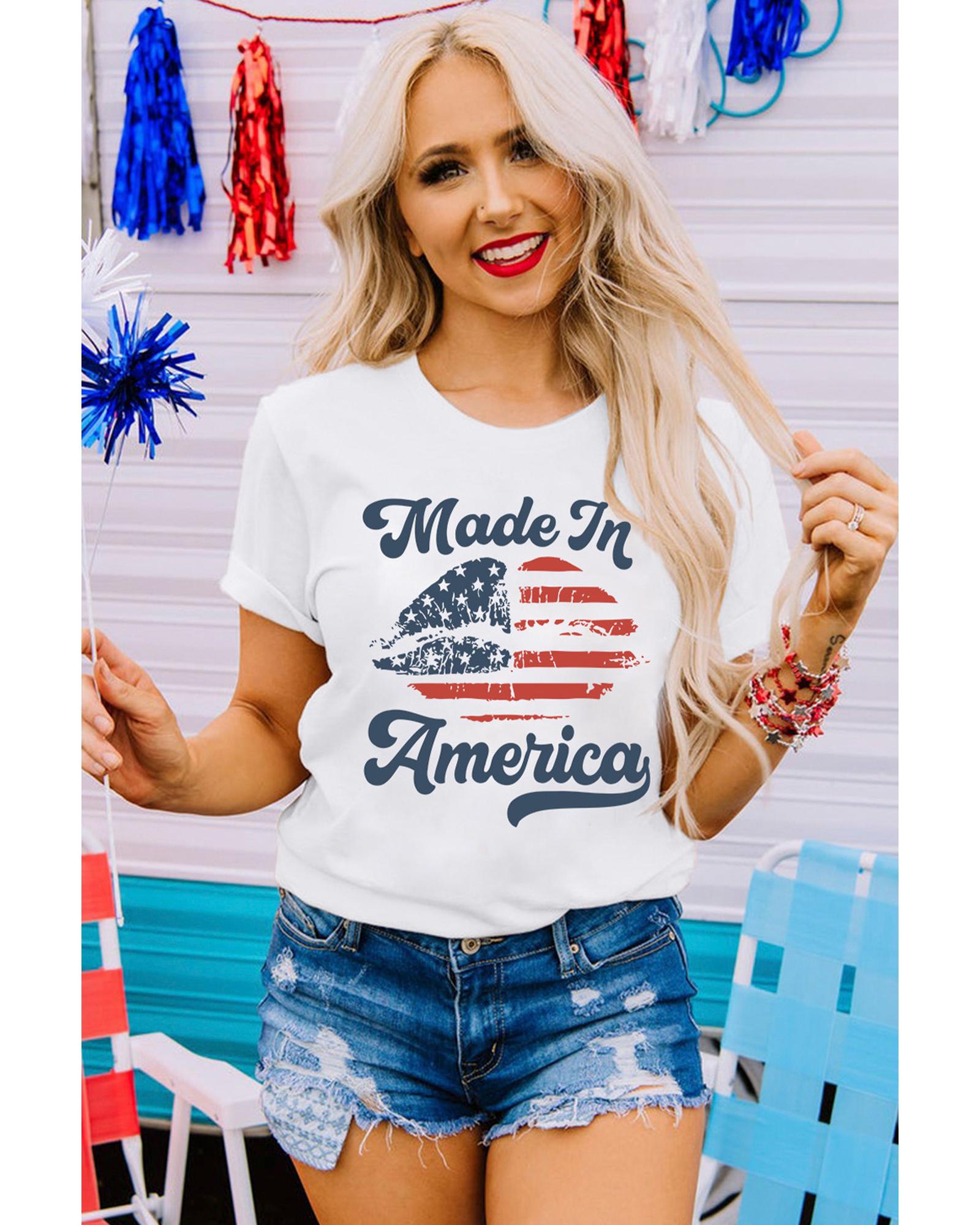 White Made in America Lip Printed O Neck T Shirt – 2XL