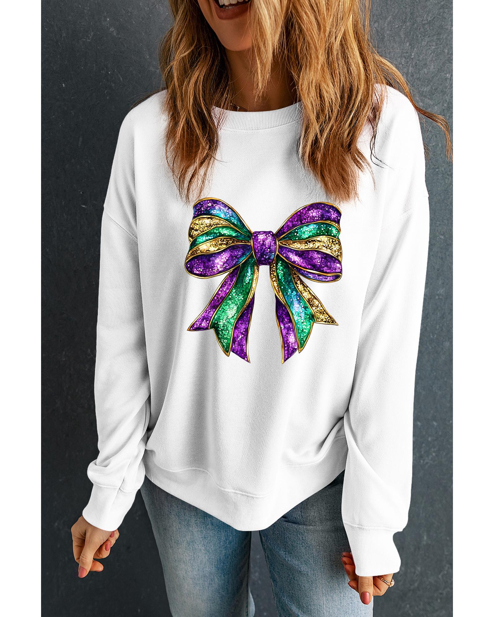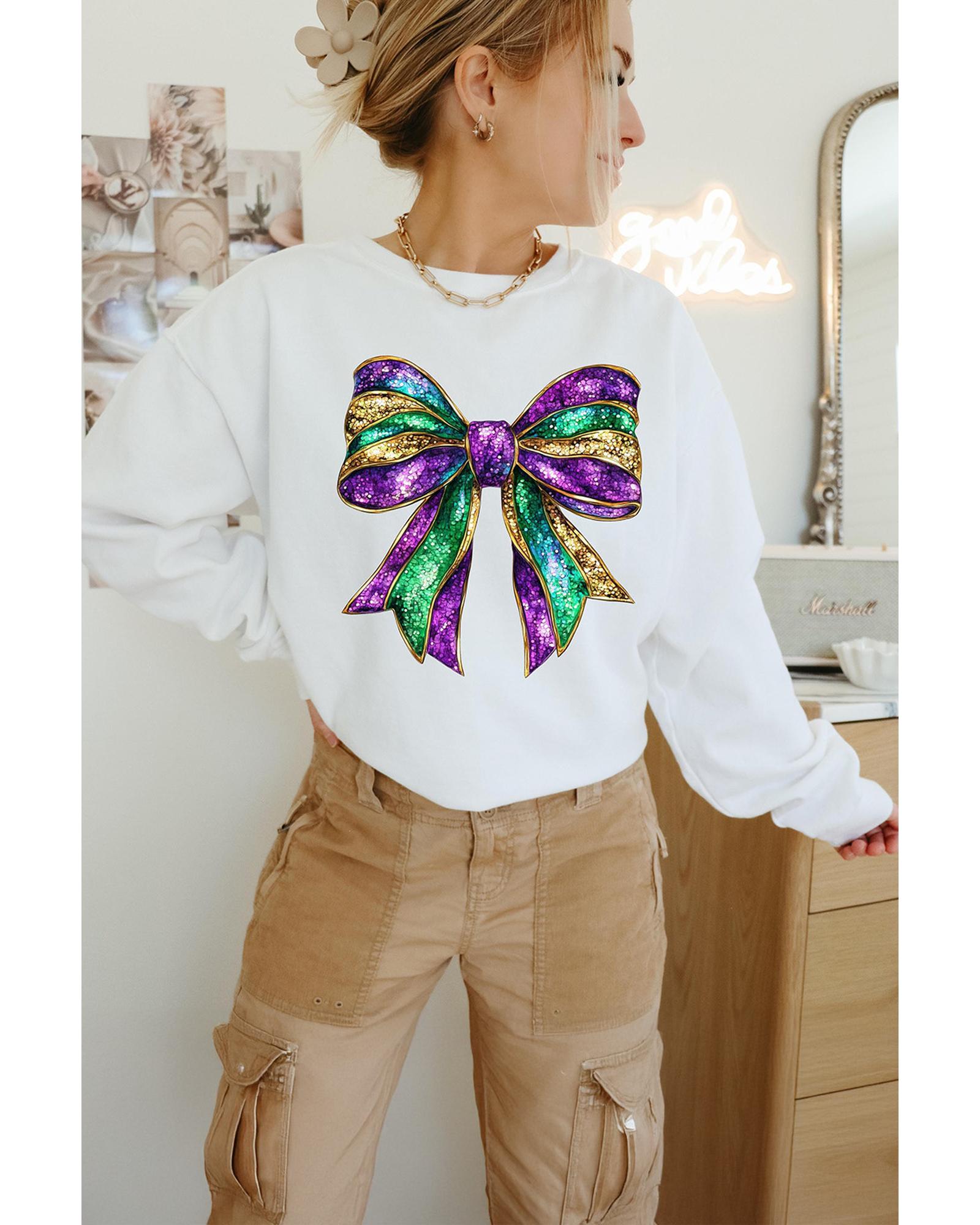 White Mardi Gras Bow Graphic Drop Shoulder Sweatshirt – 2XL
