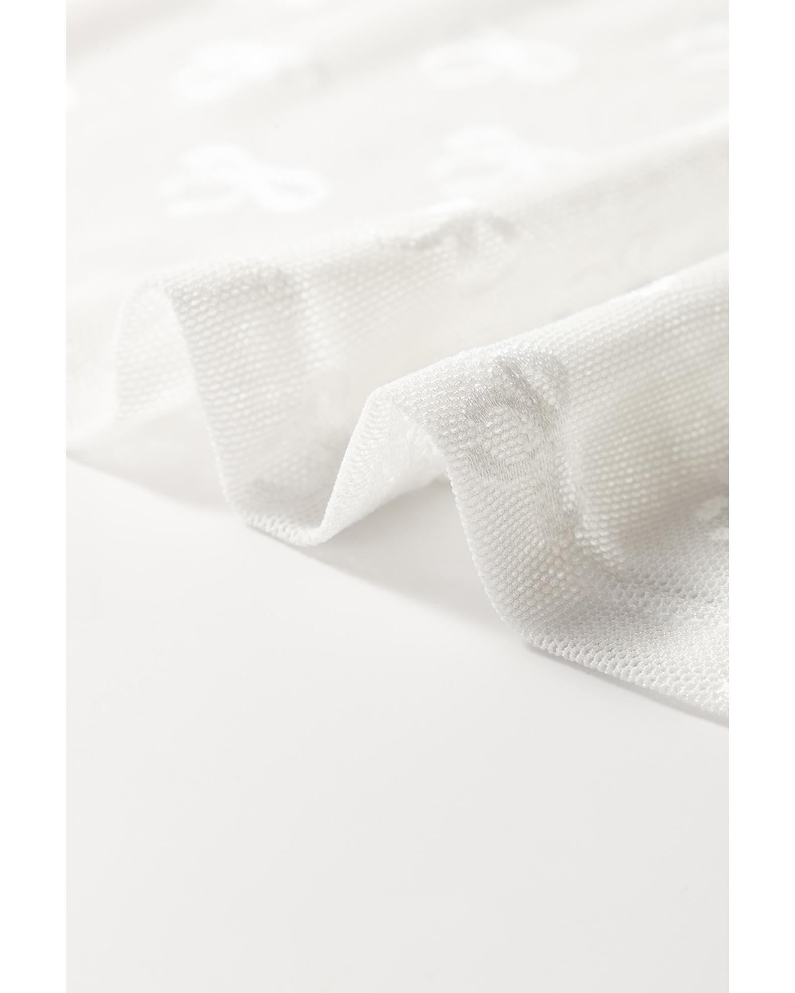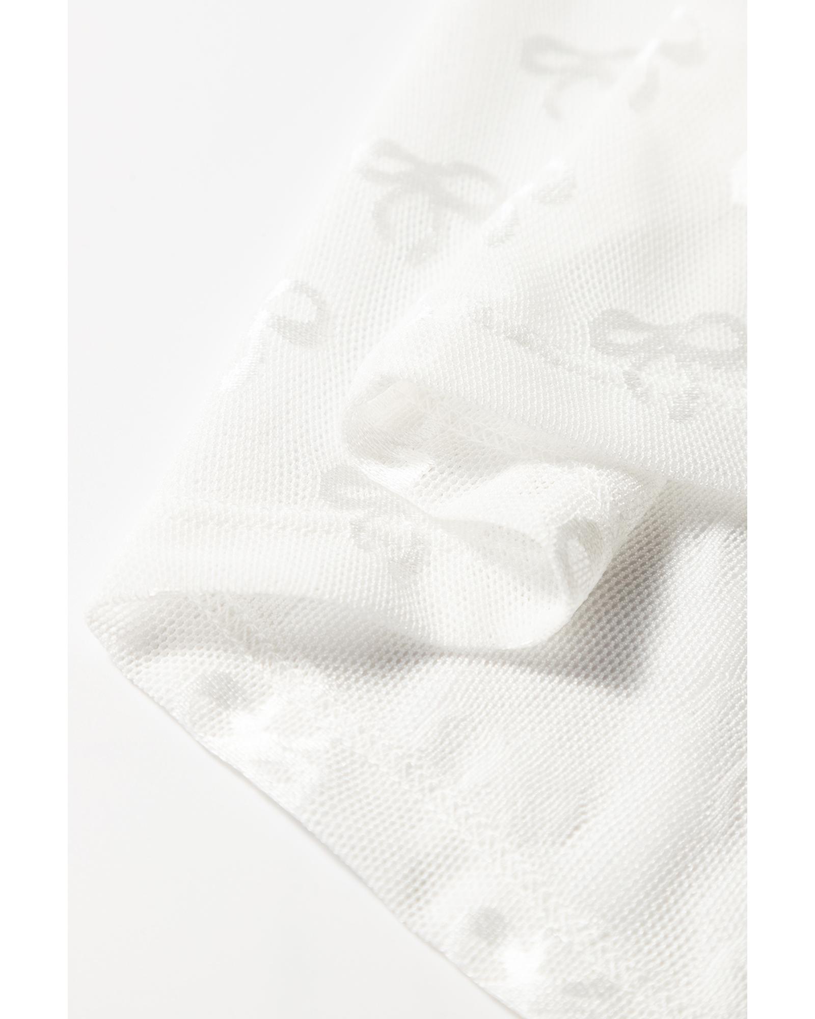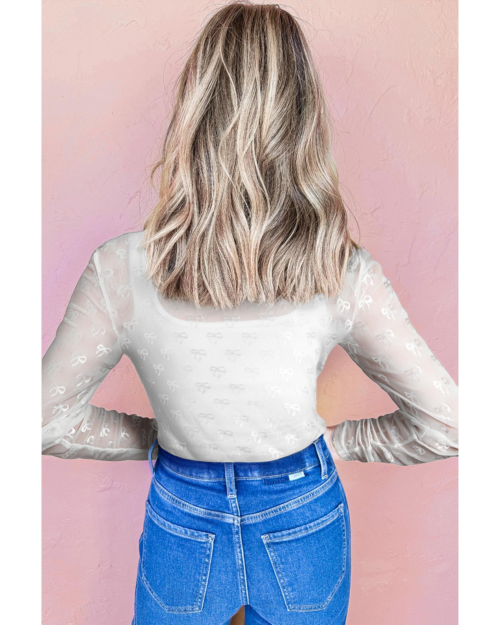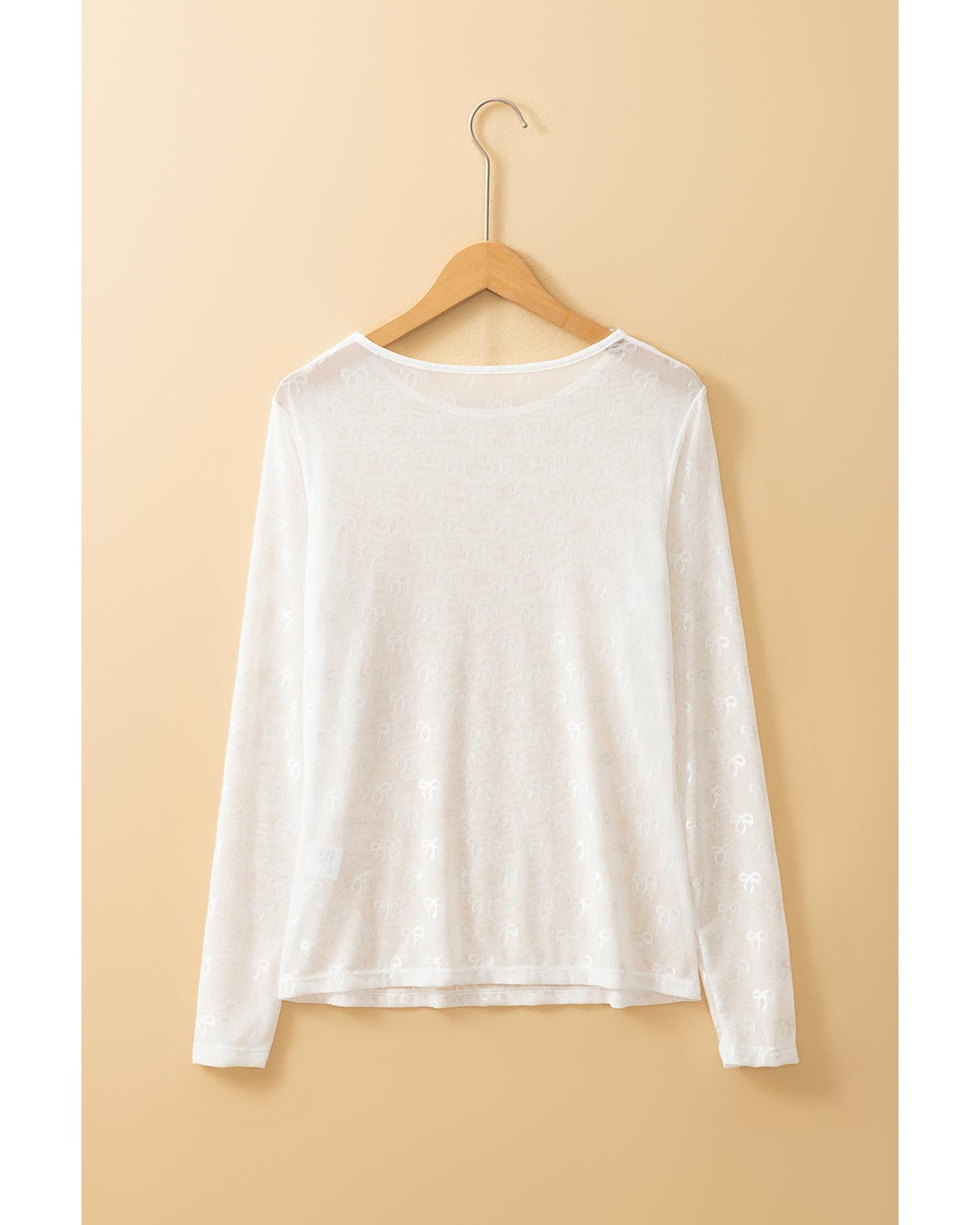 - White Mesh Bow Pattern Long Sleeve Top