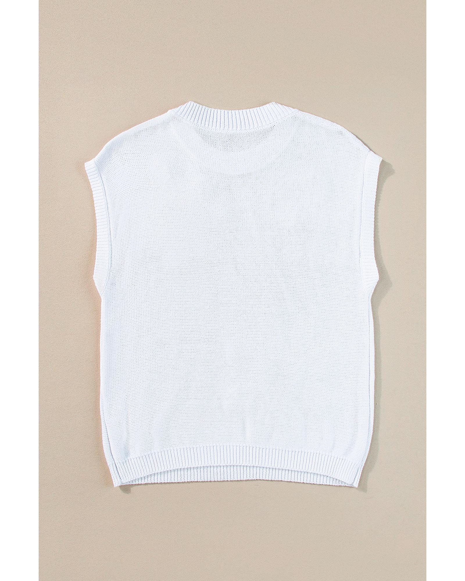 White Multi Crochet Flower Knit Short Sleeve Sweater Tops – XL
