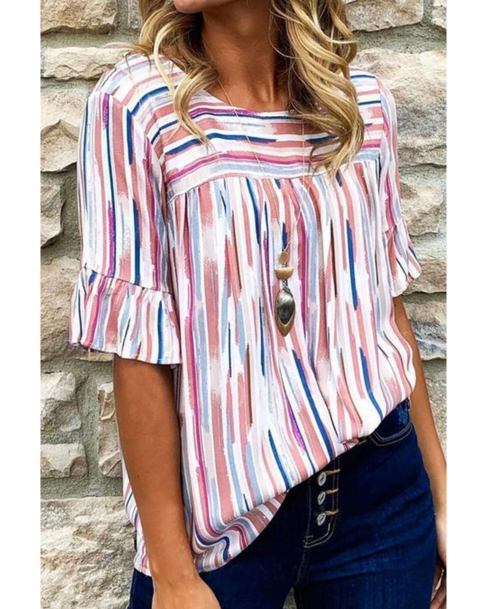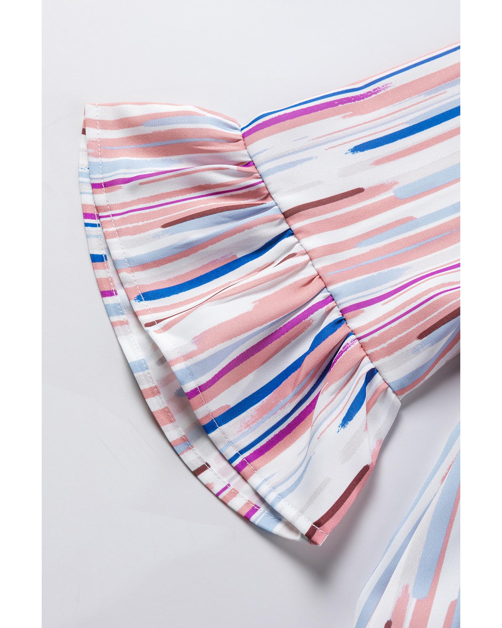 - White Multicolor Striped Splash Half Sleeve Blouse