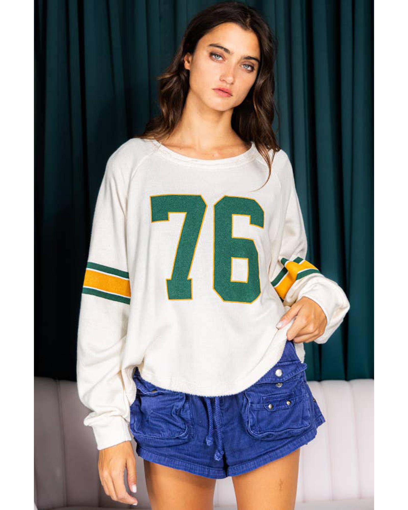 White Number 76 Printed Retro Sporty Long Sleeve Top – S