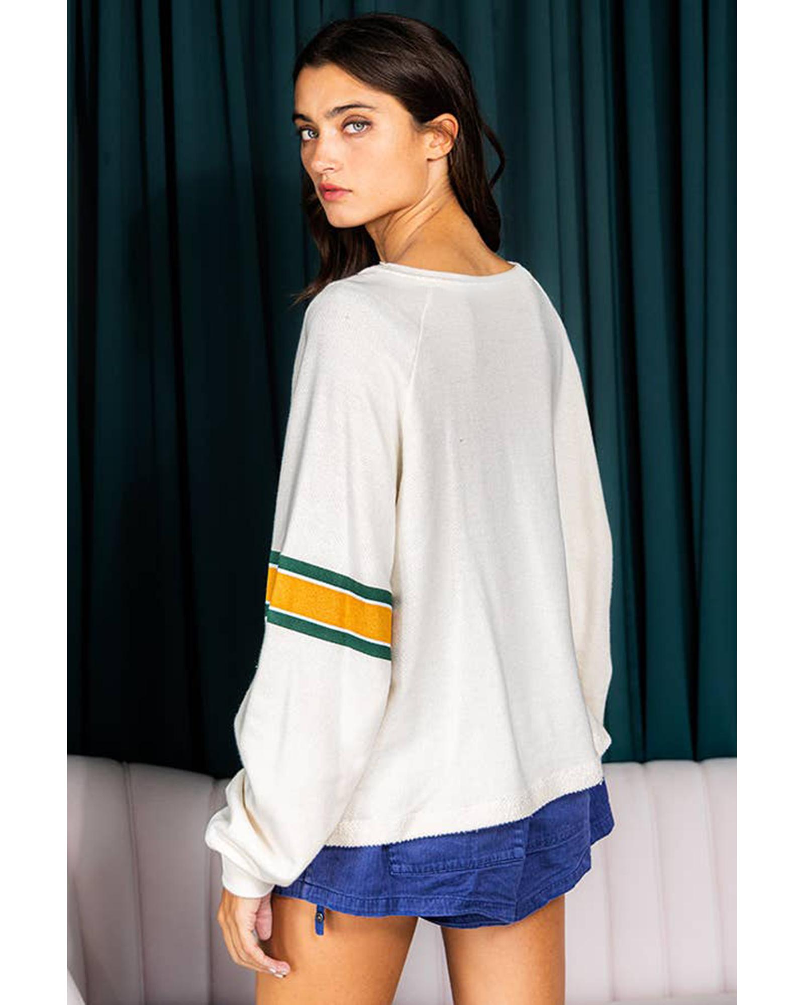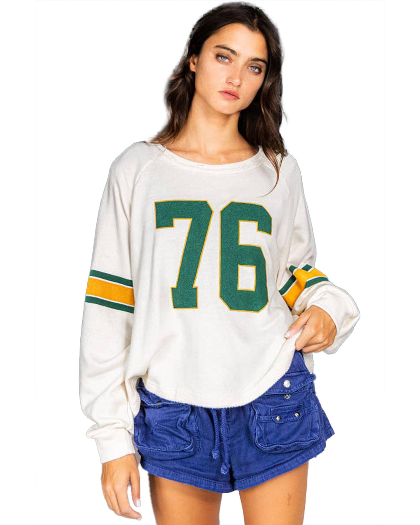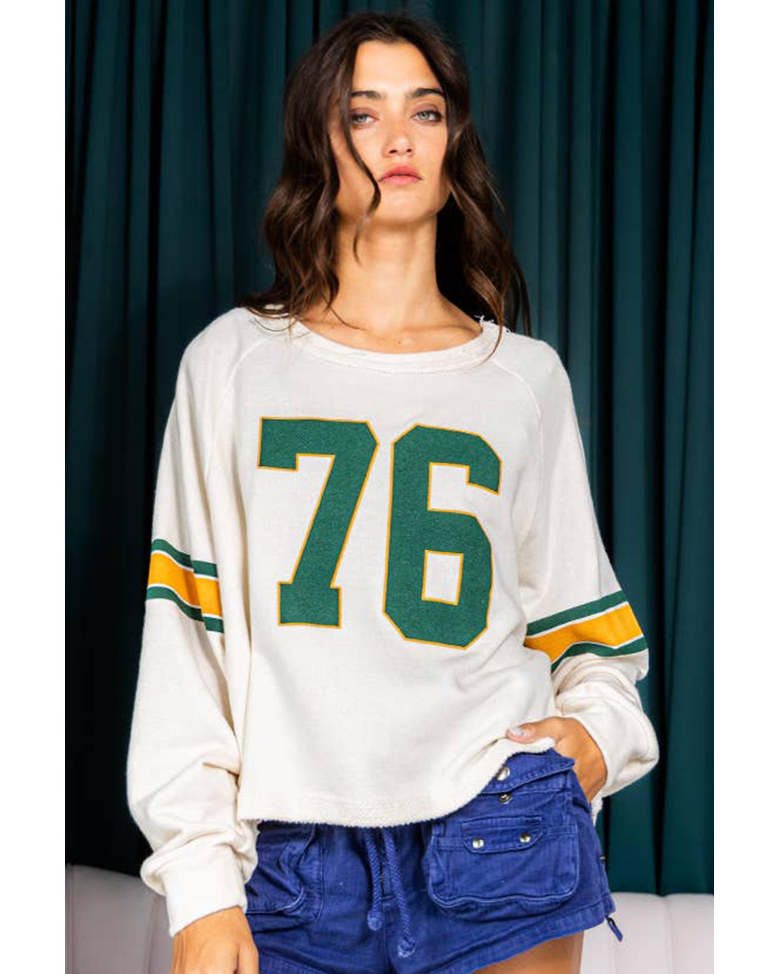 White Number 76 Printed Retro Sporty Long Sleeve Top – XL