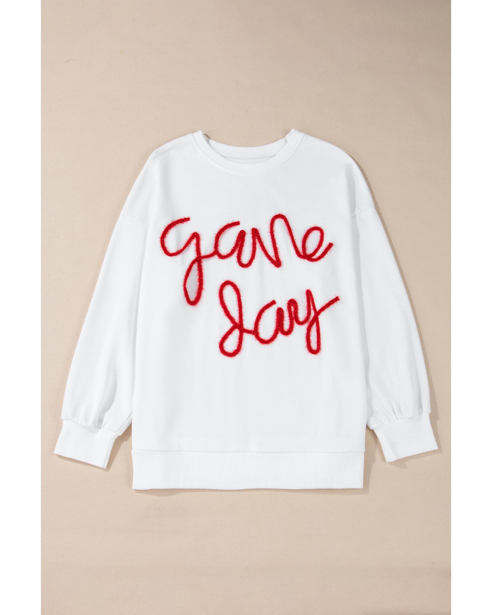 - White Plus Size Game Day Tinsel Rugby Football Season Sweatshirt