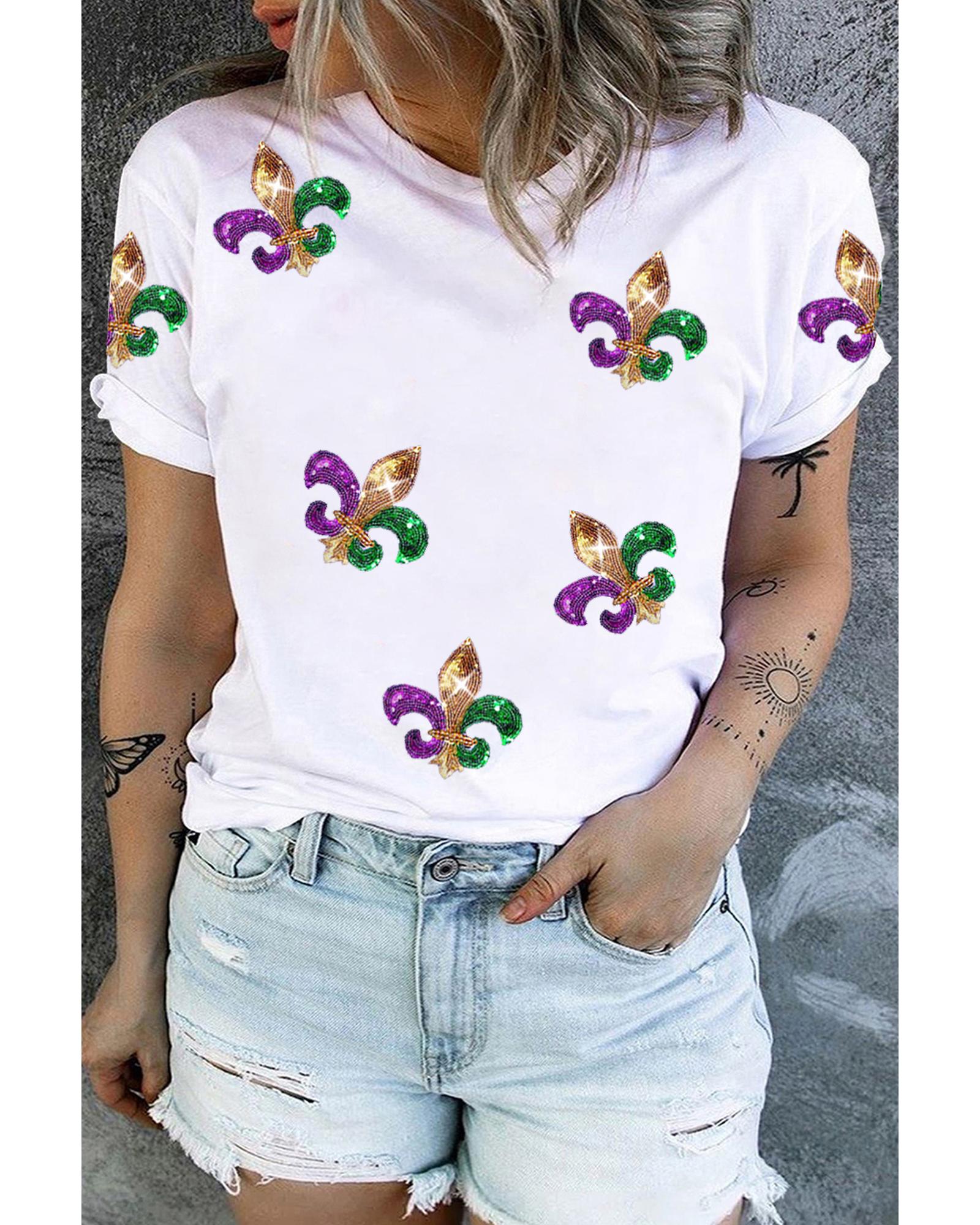 White Plus Size Glitter Fleur De Lis Patch Mardi Gras T-shirt – 1X