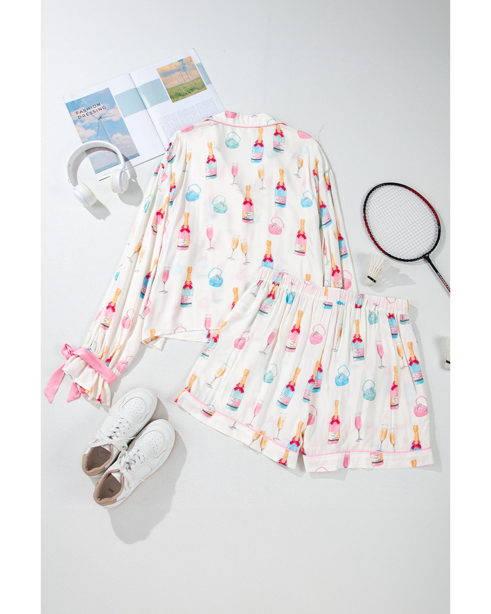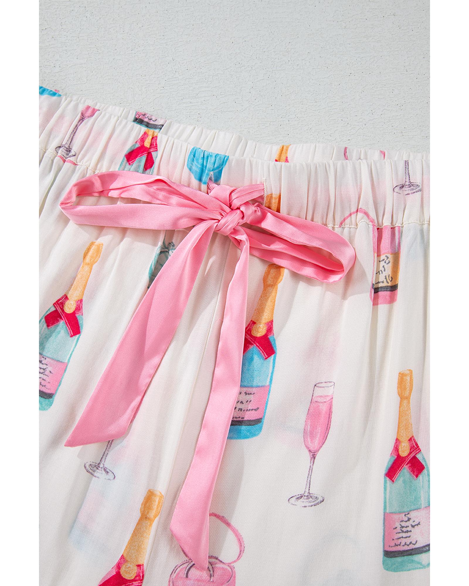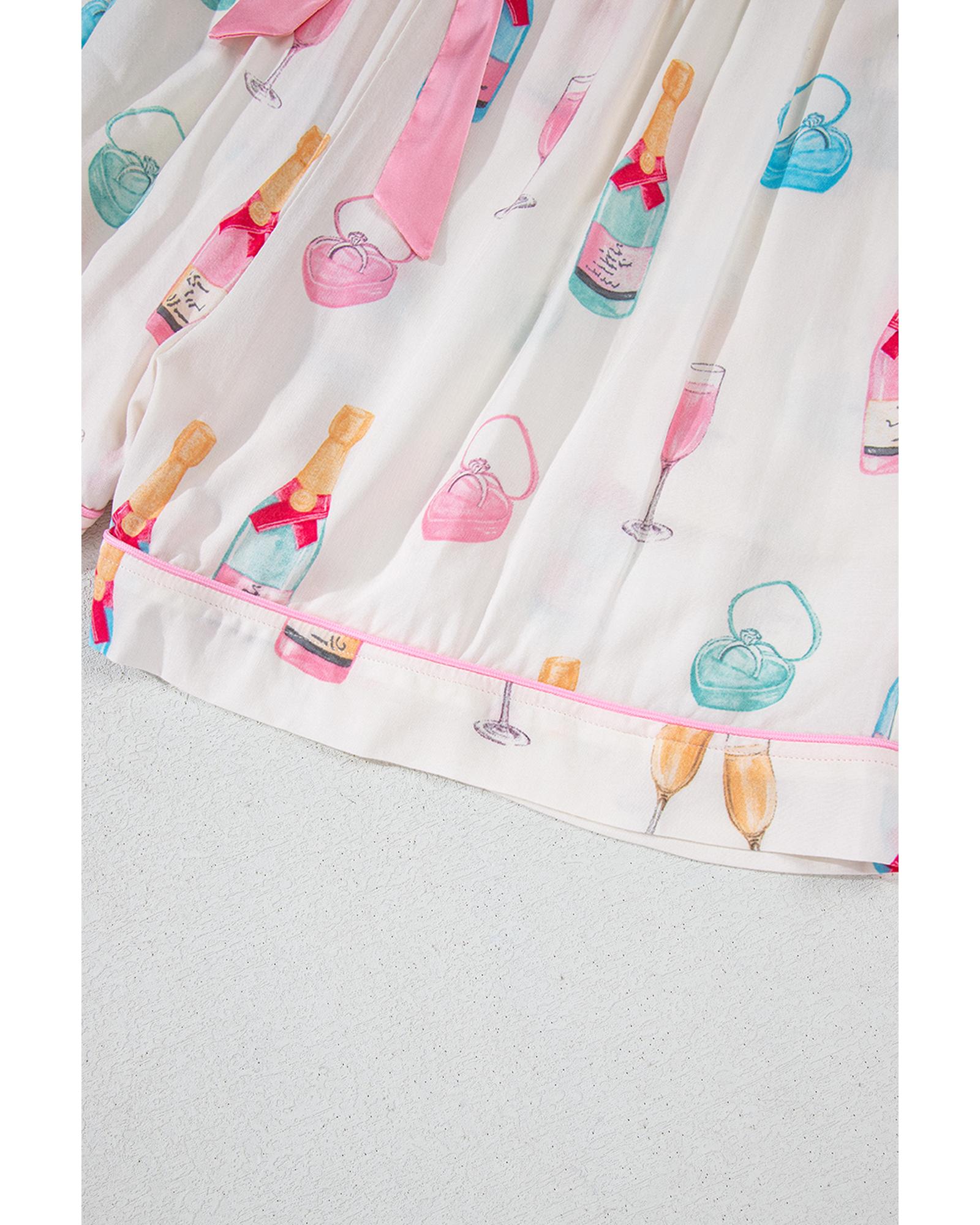 White Plus Size Wine Glass Print Bow Knot Pajama Set – 3X