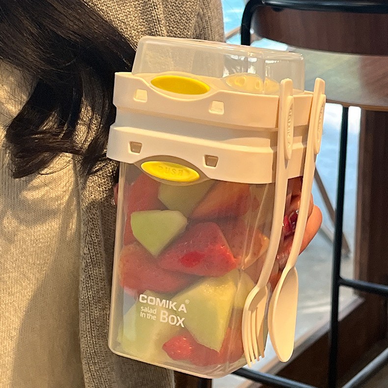 Enjoy Fresh Meals Anywhere: Portable Dual Compartment Salad & Breakfast Cup