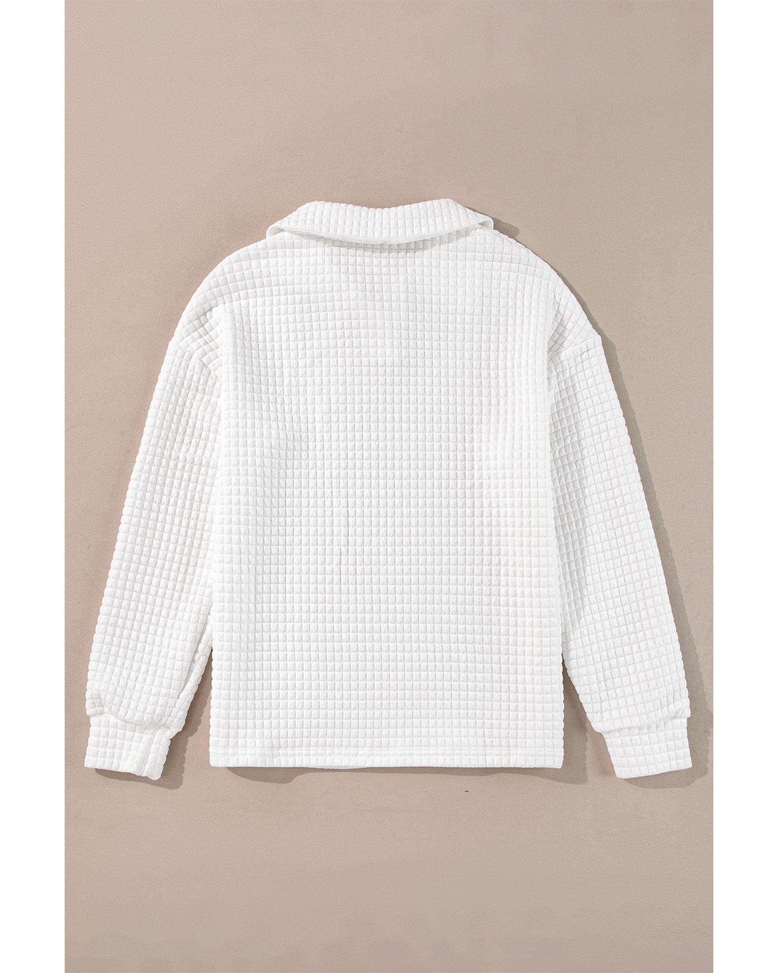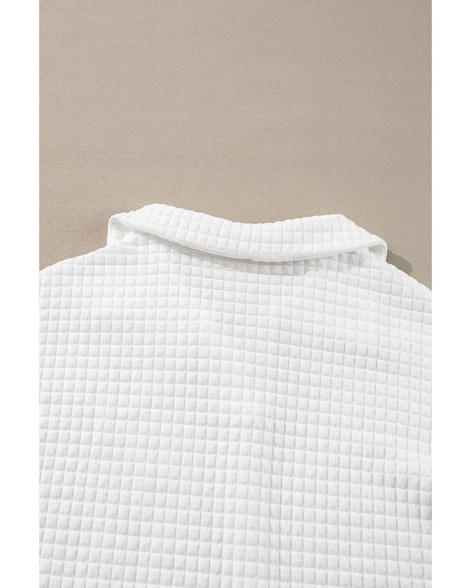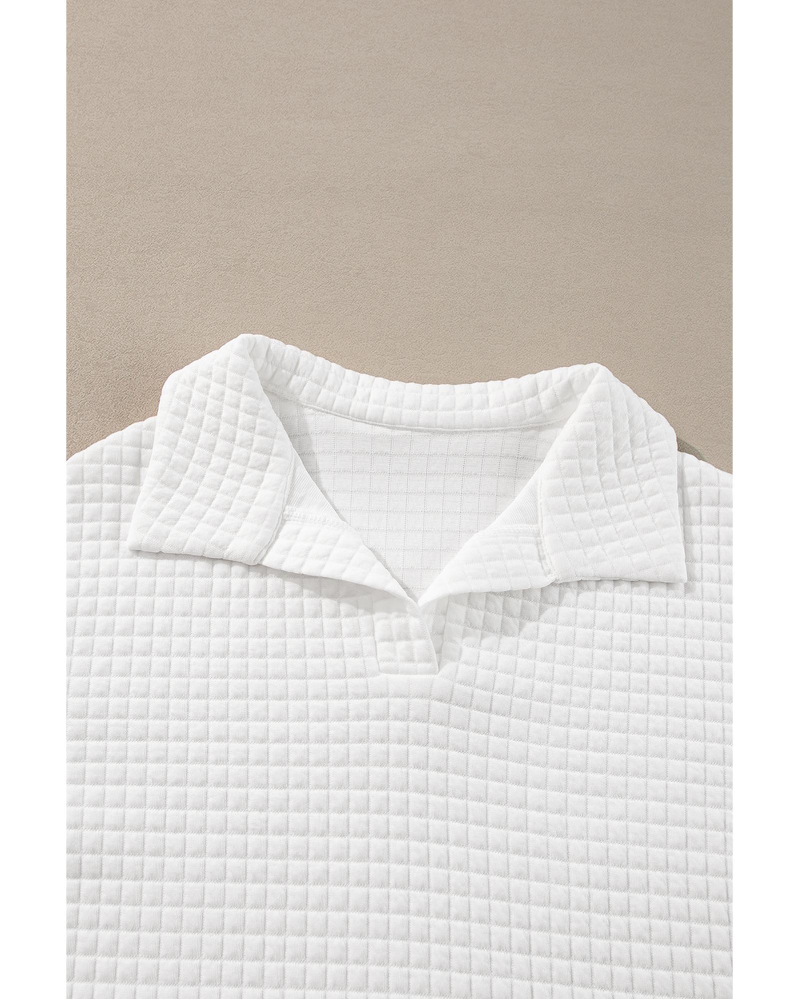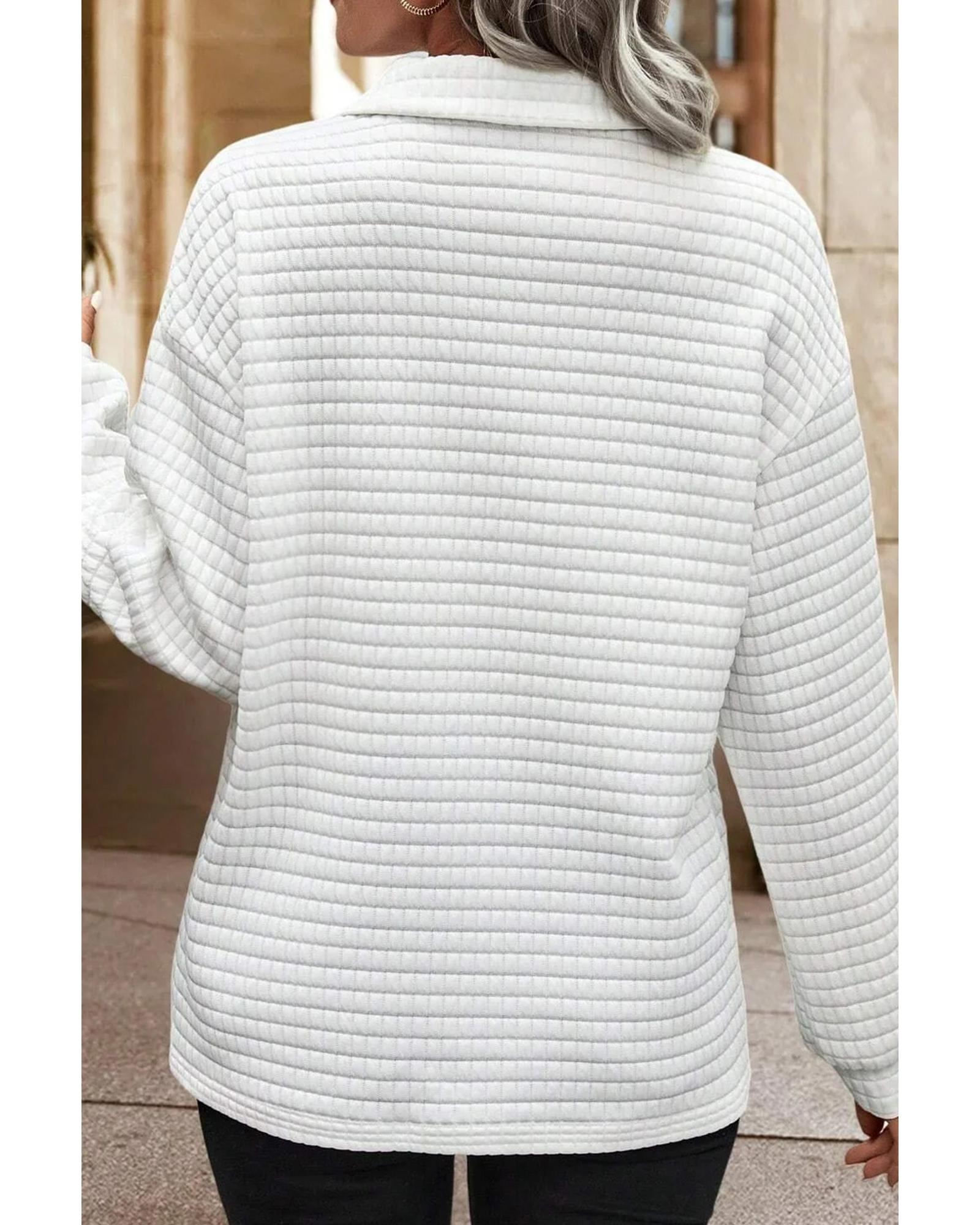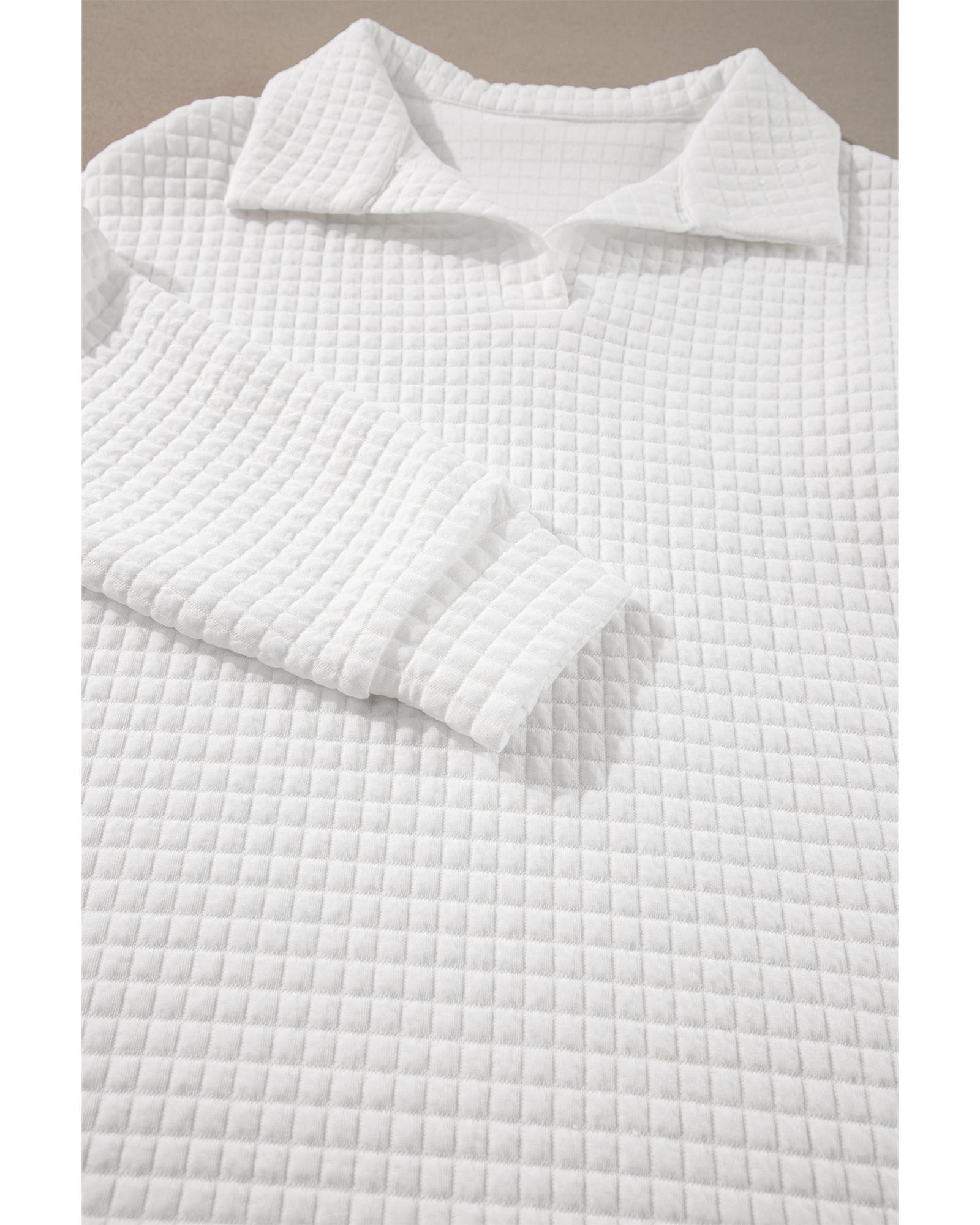 White Quilted Texture Sporty Collared Long Sleeve Top – L