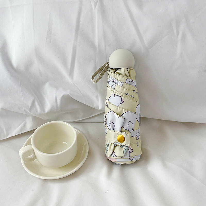 White Rabbit Mini 5-Fold Umbrella – Portable, Anti-UV, Black Glue Coating