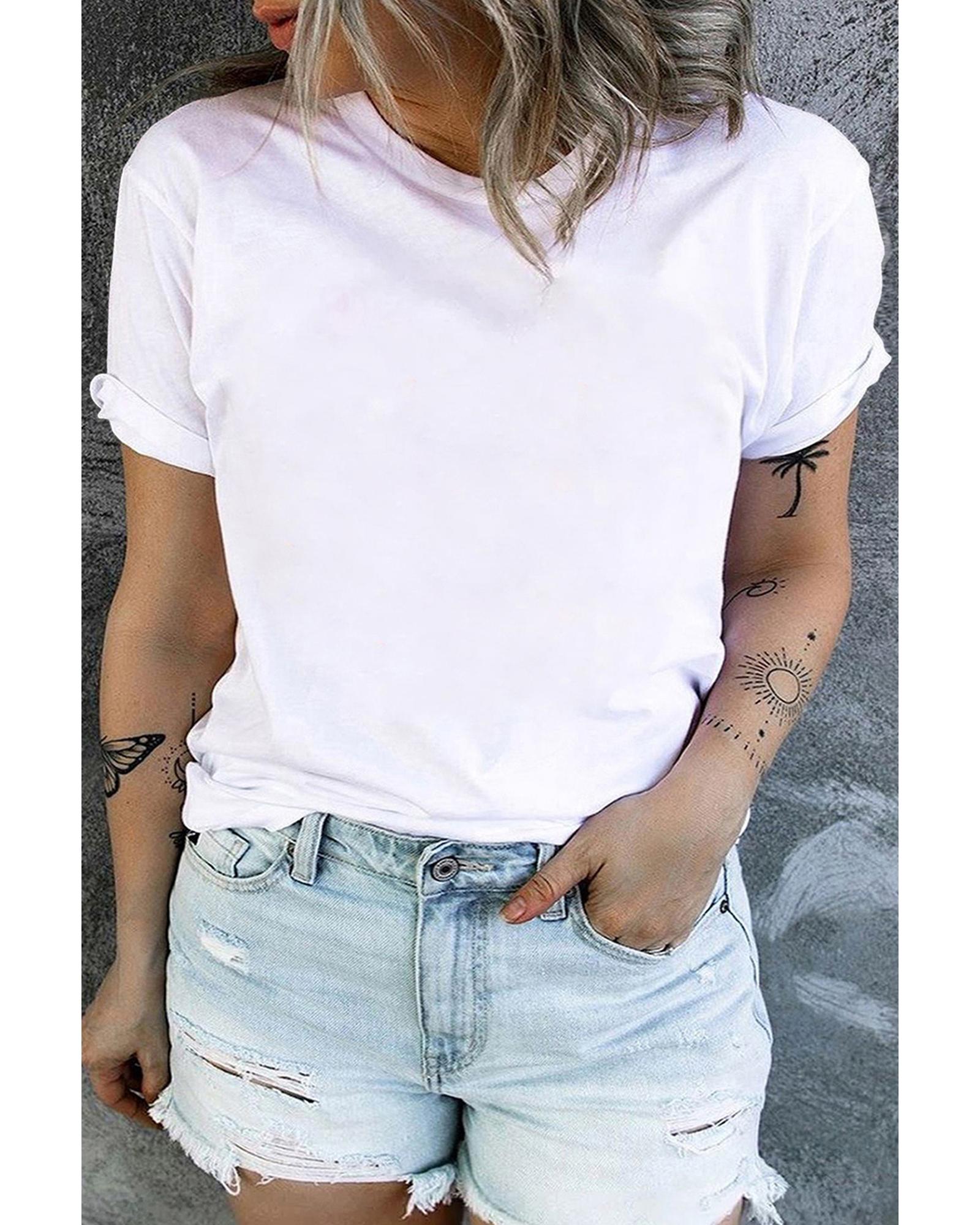 White Round Neck Rolled Sleeve Plus Size T-shirt – 1X