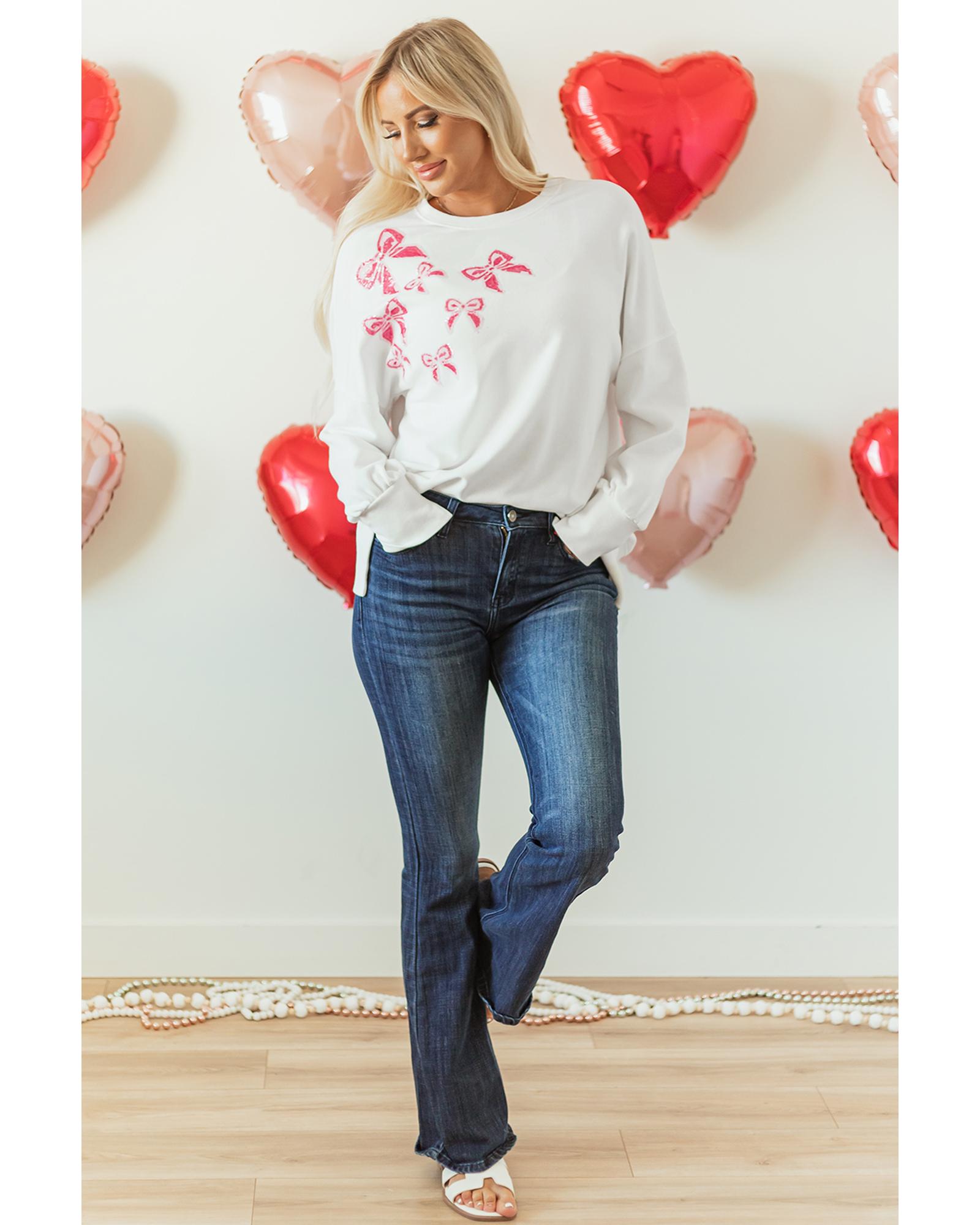 White Sequin Bowknot High Low Oversize Sweatshirt – S