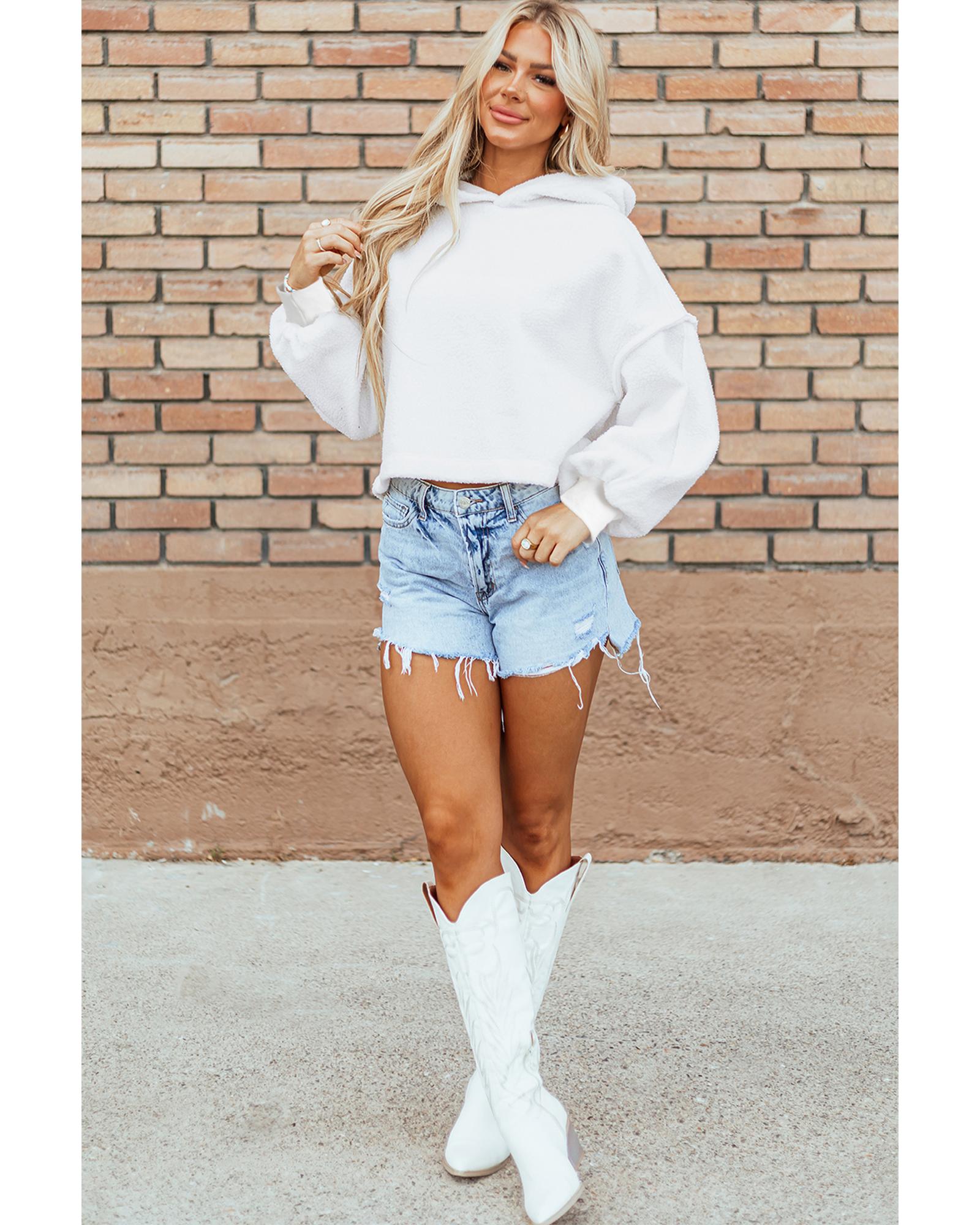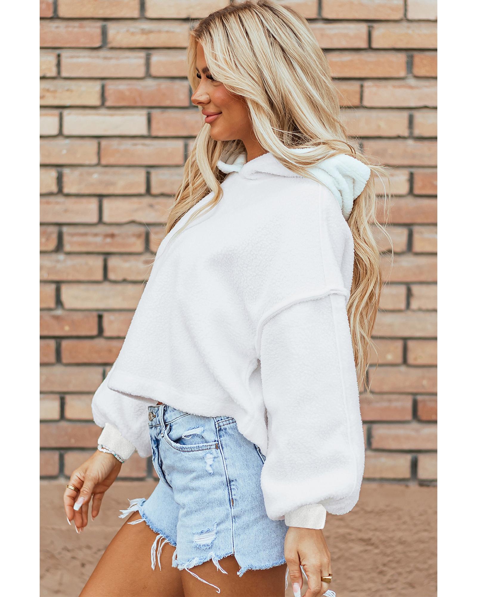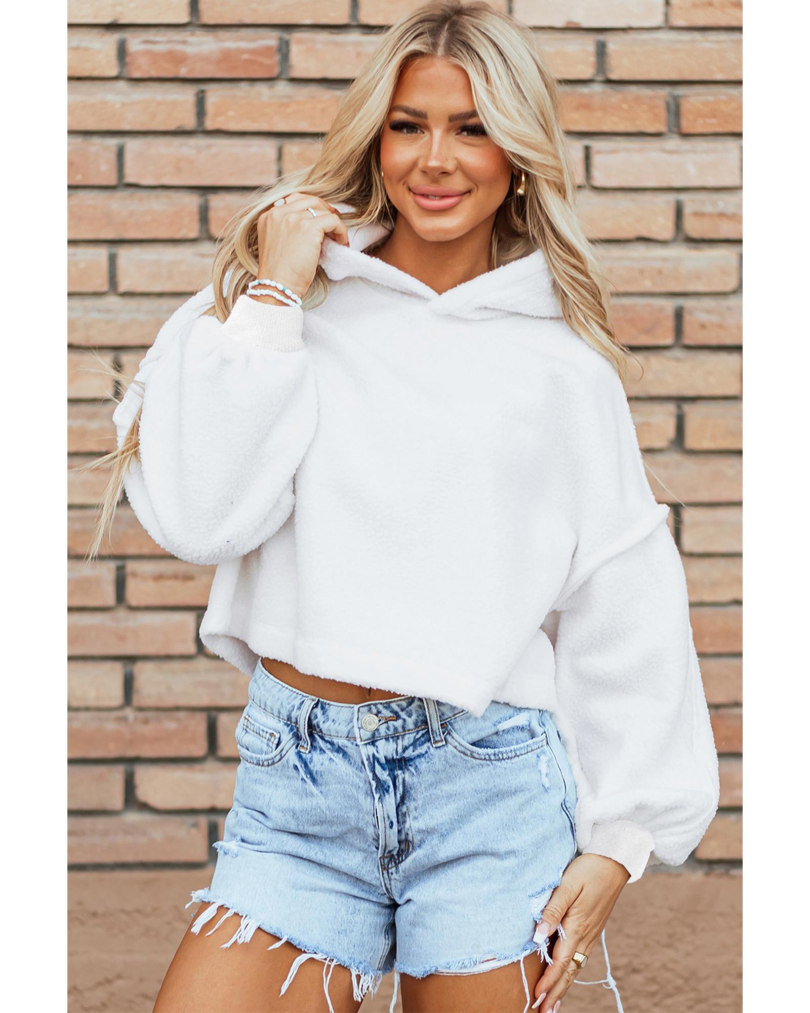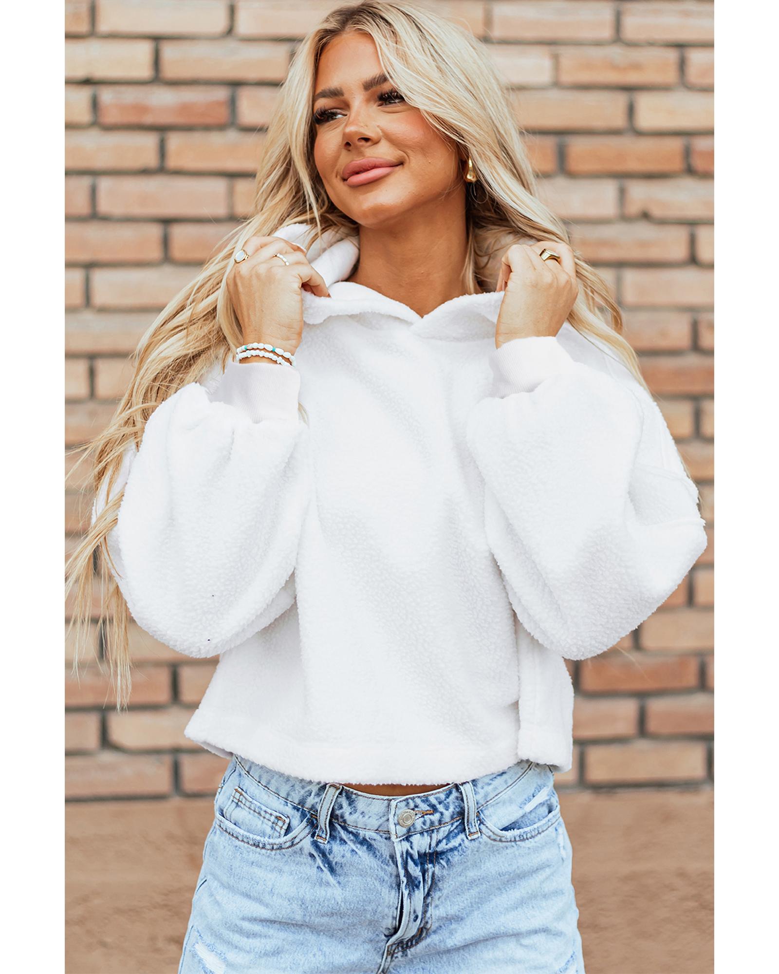 - White Sherpa Fleece Drop Shoulder Hoodie