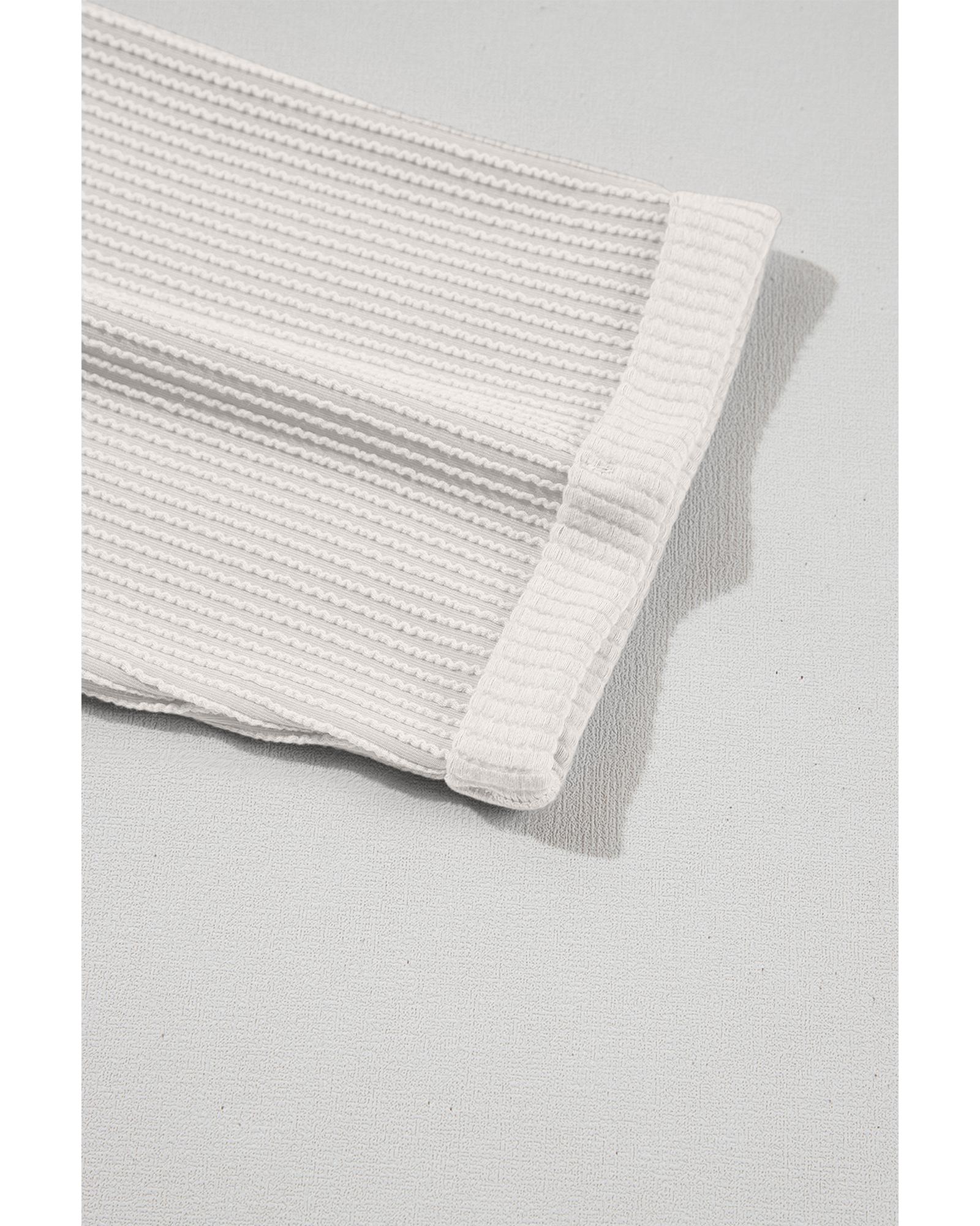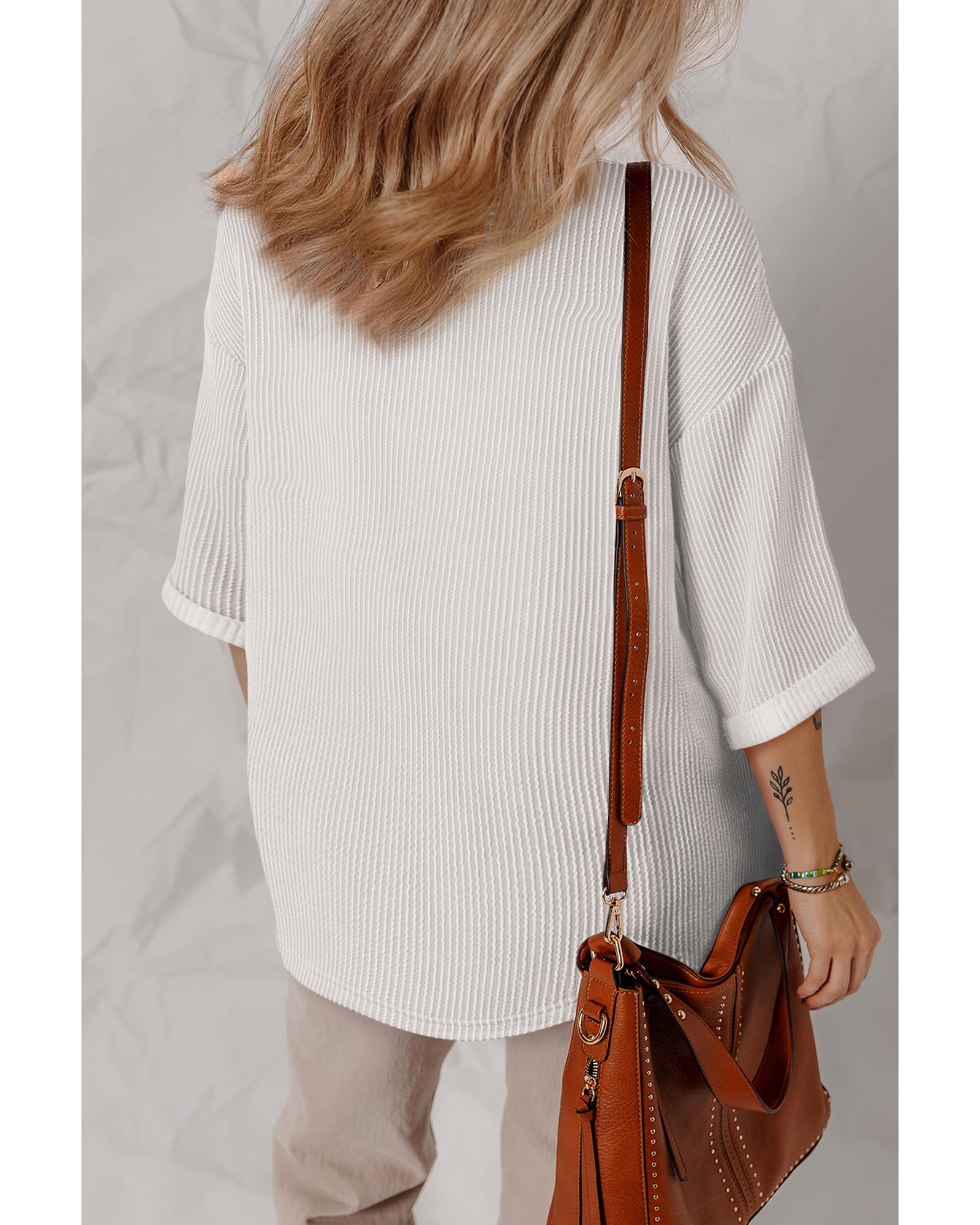White Solid Color Corded Drop Shoulder 3/4 Sleeve V Neck Top – S