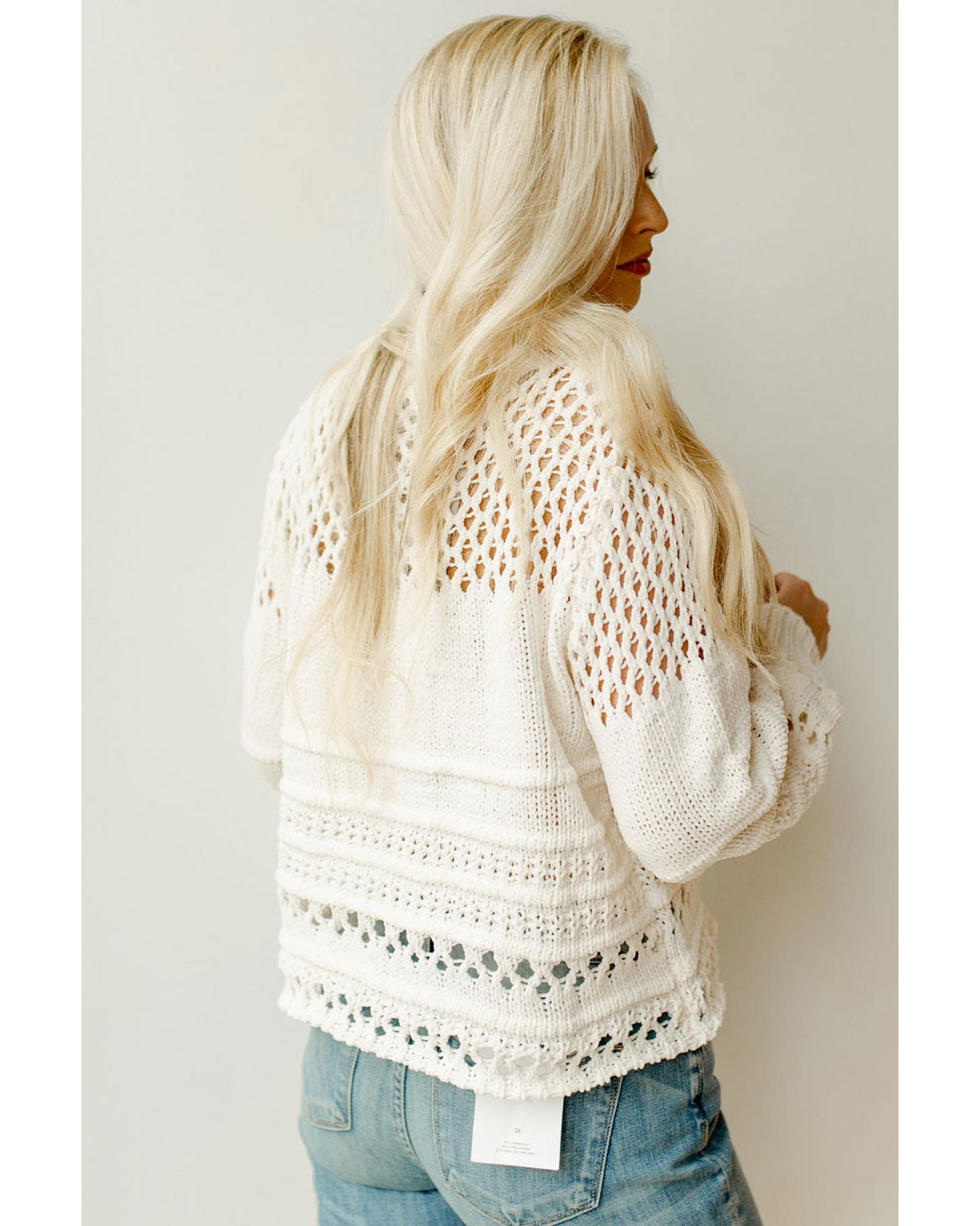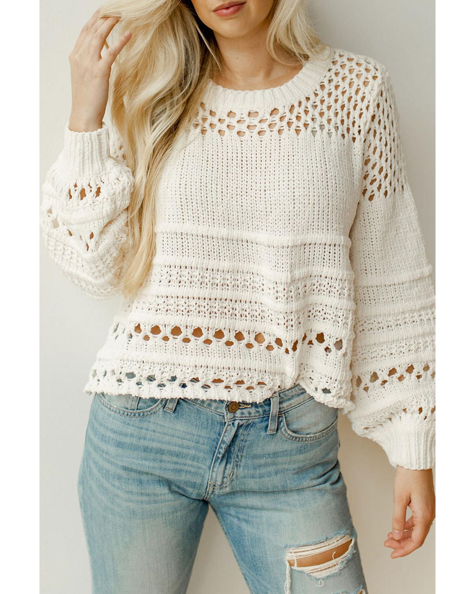 White Solid Color Pointelle Knit Puff Sleeve Sweater – 2XL