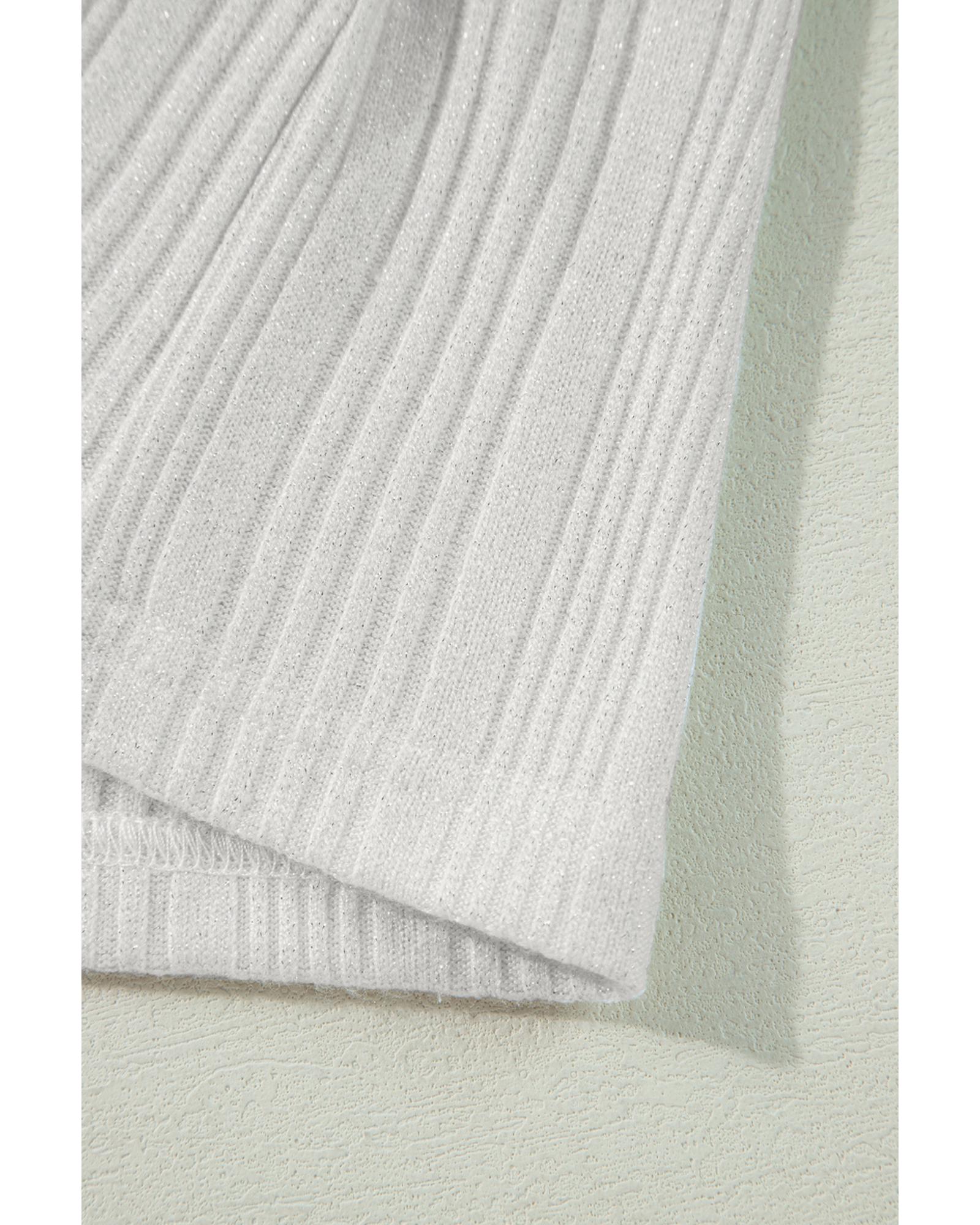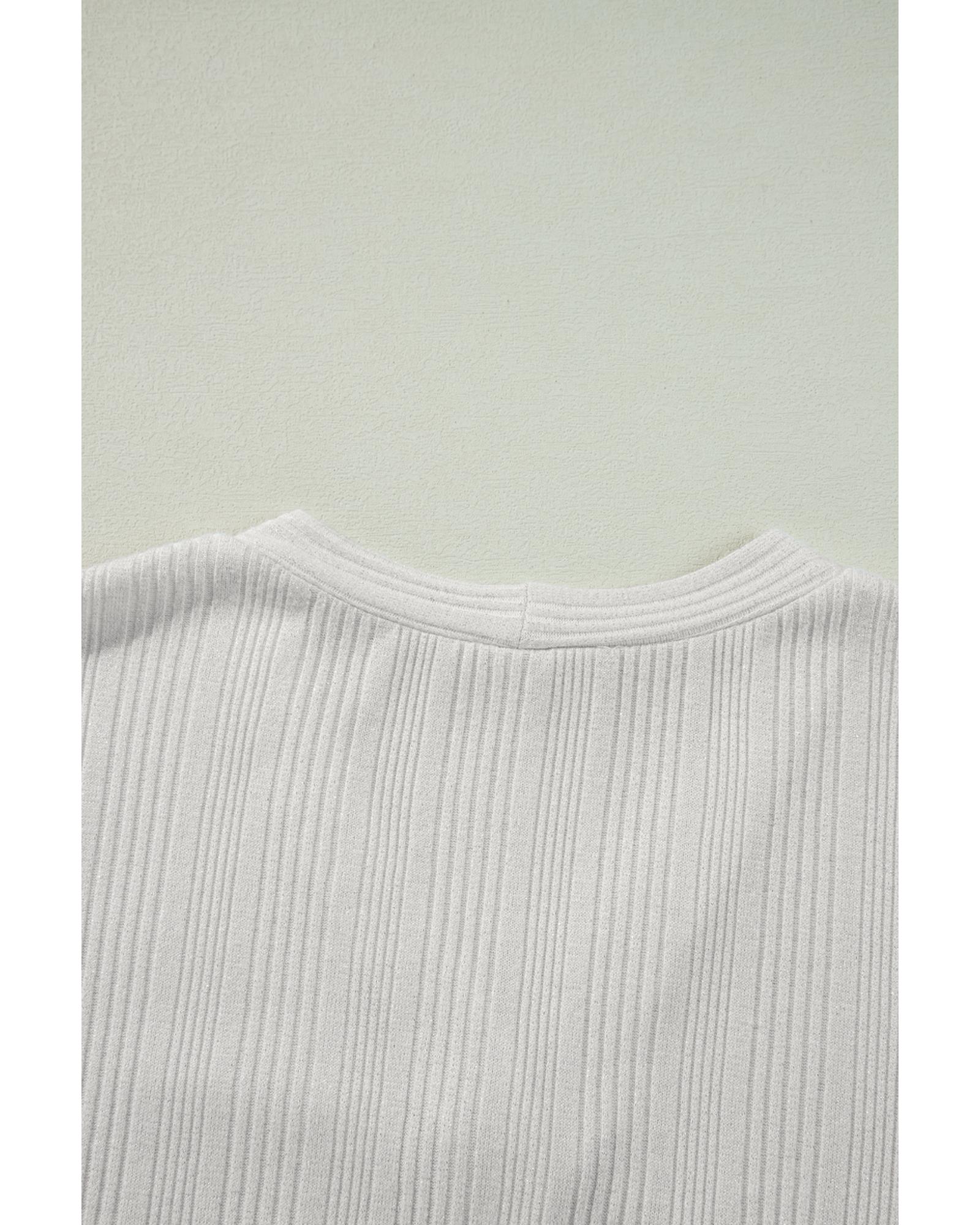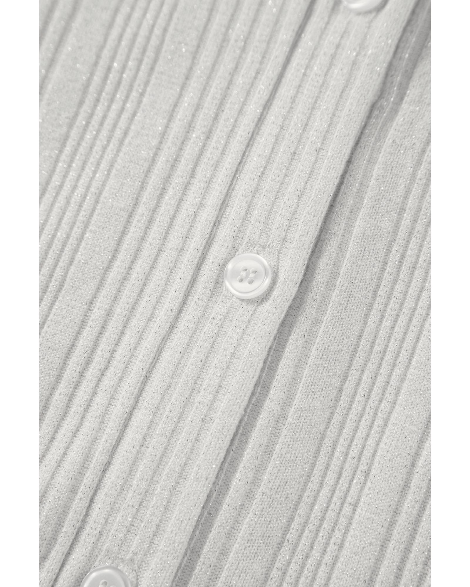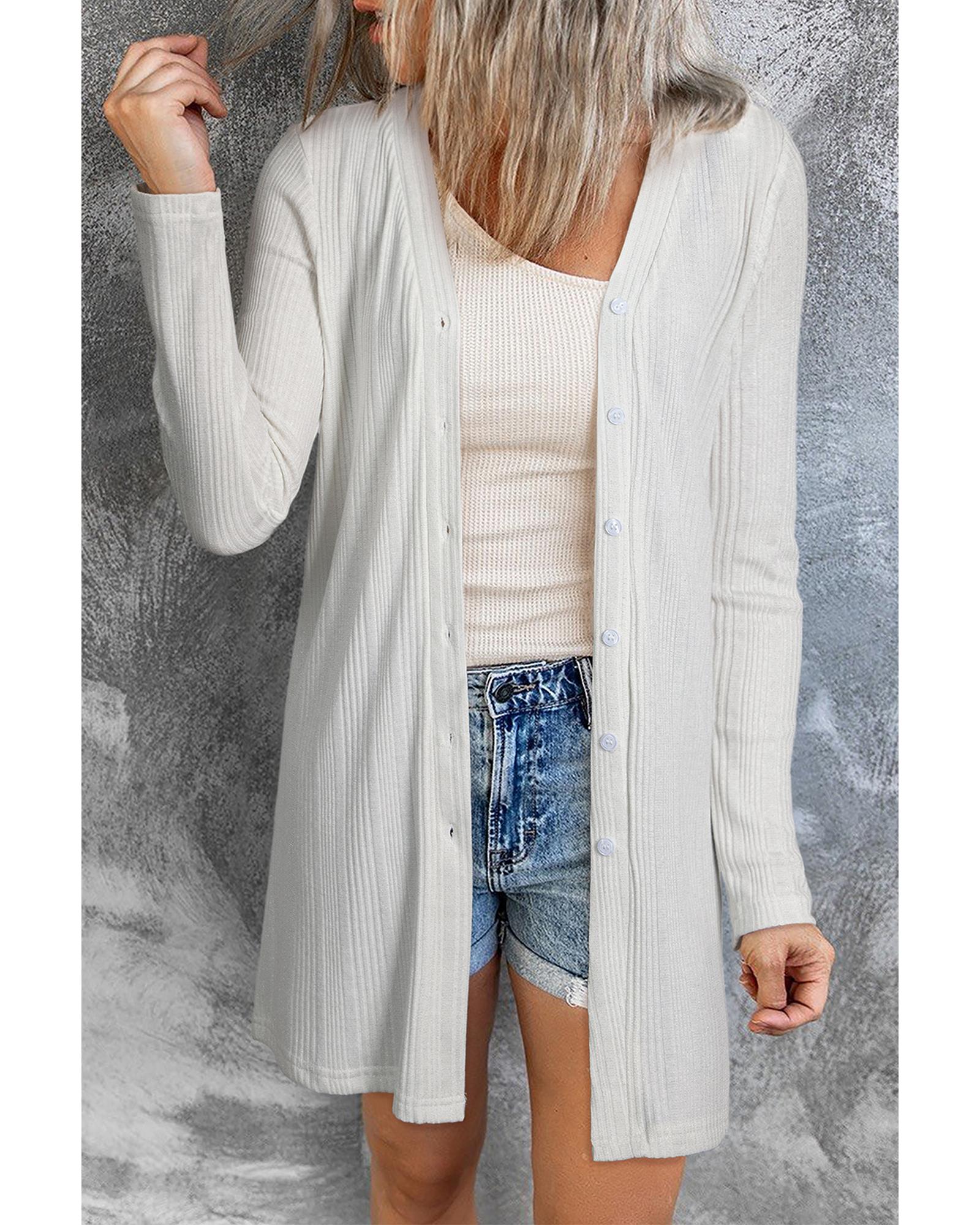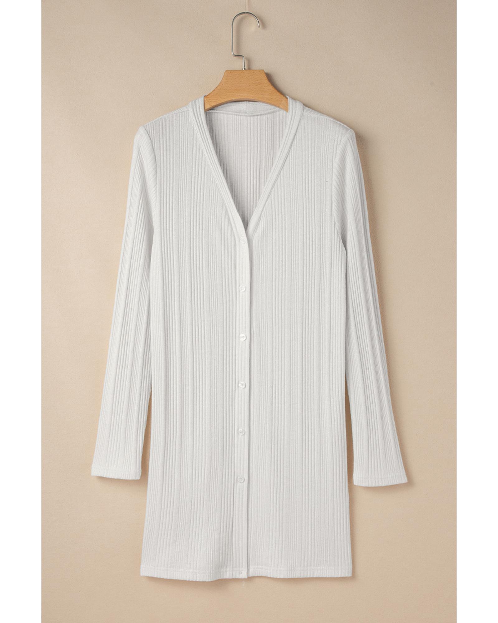 • White solid color ribbed button up tunic cardigan