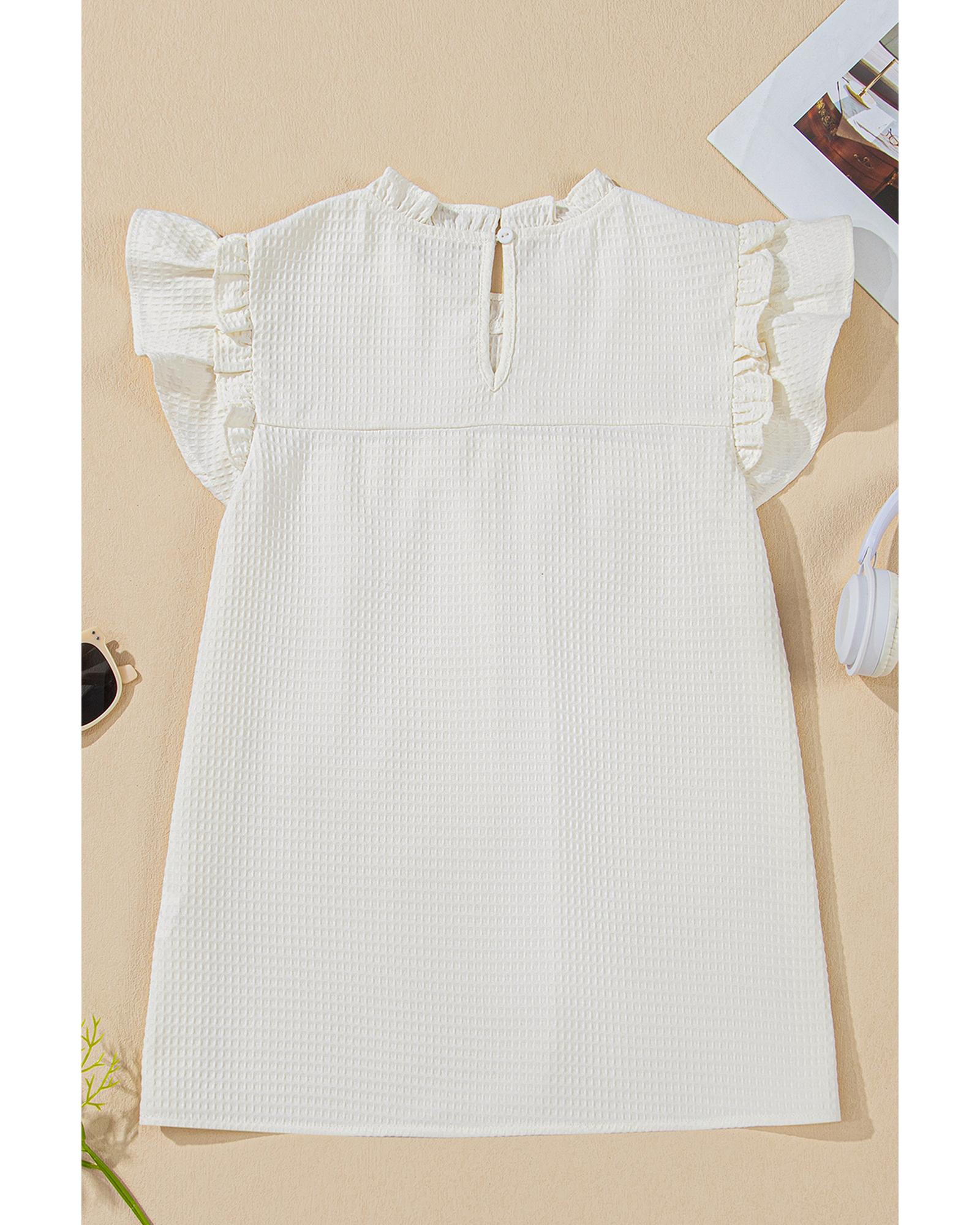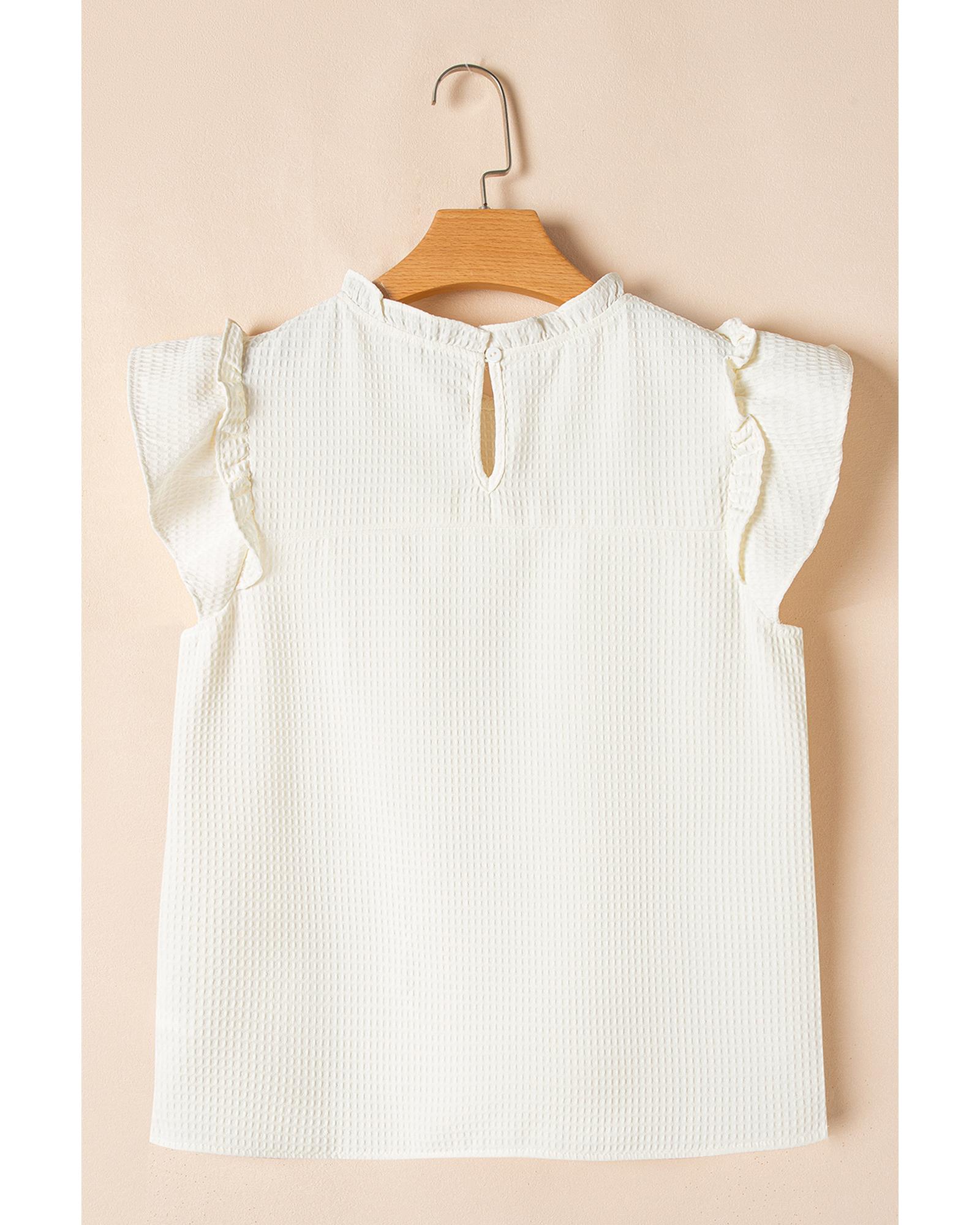 White Solid Color Ruffle Trim Waffle Knit Blouse – XL
