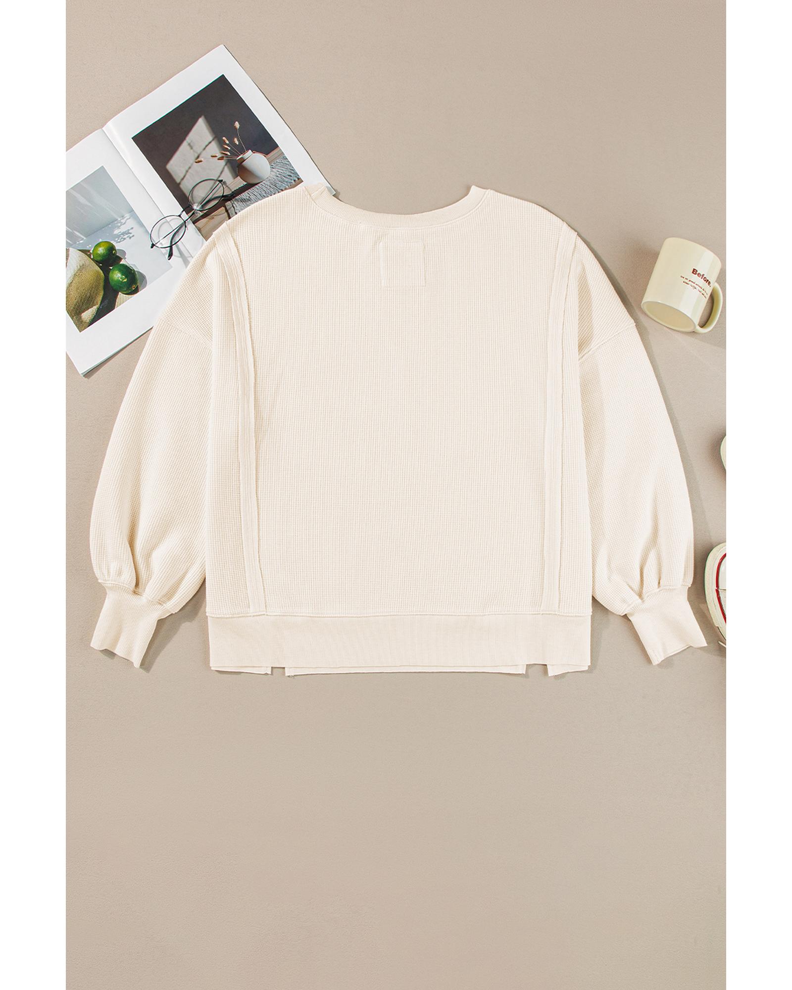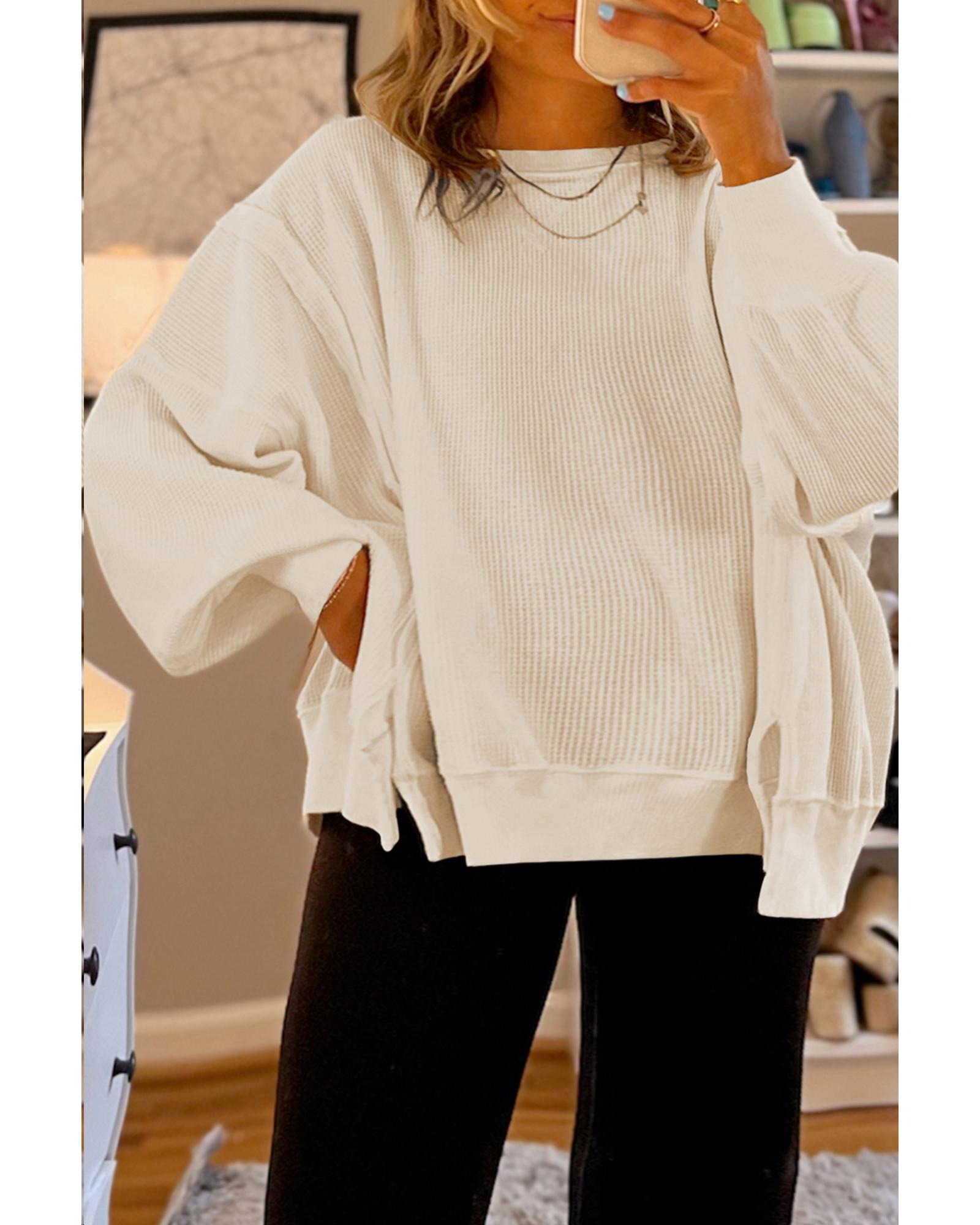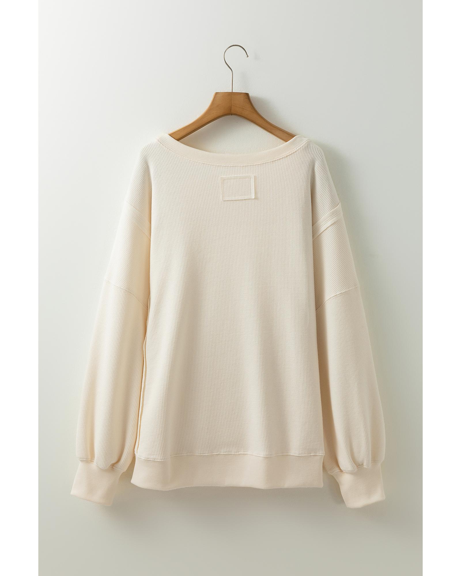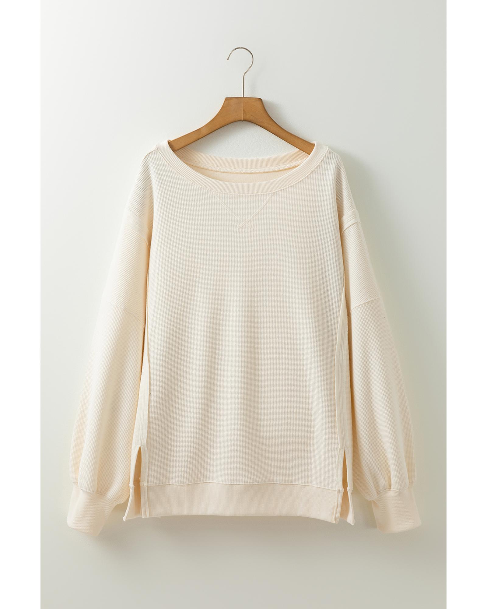 White Solid Color Waffle Knit Drop Shoulder Plus Size Sweatshirt – 2X