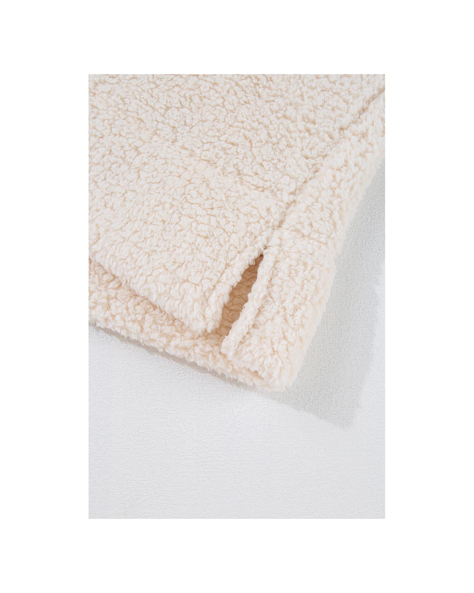 - White Solid Fleece High Neck Drop Shoulder Pullover Sweatshirt
