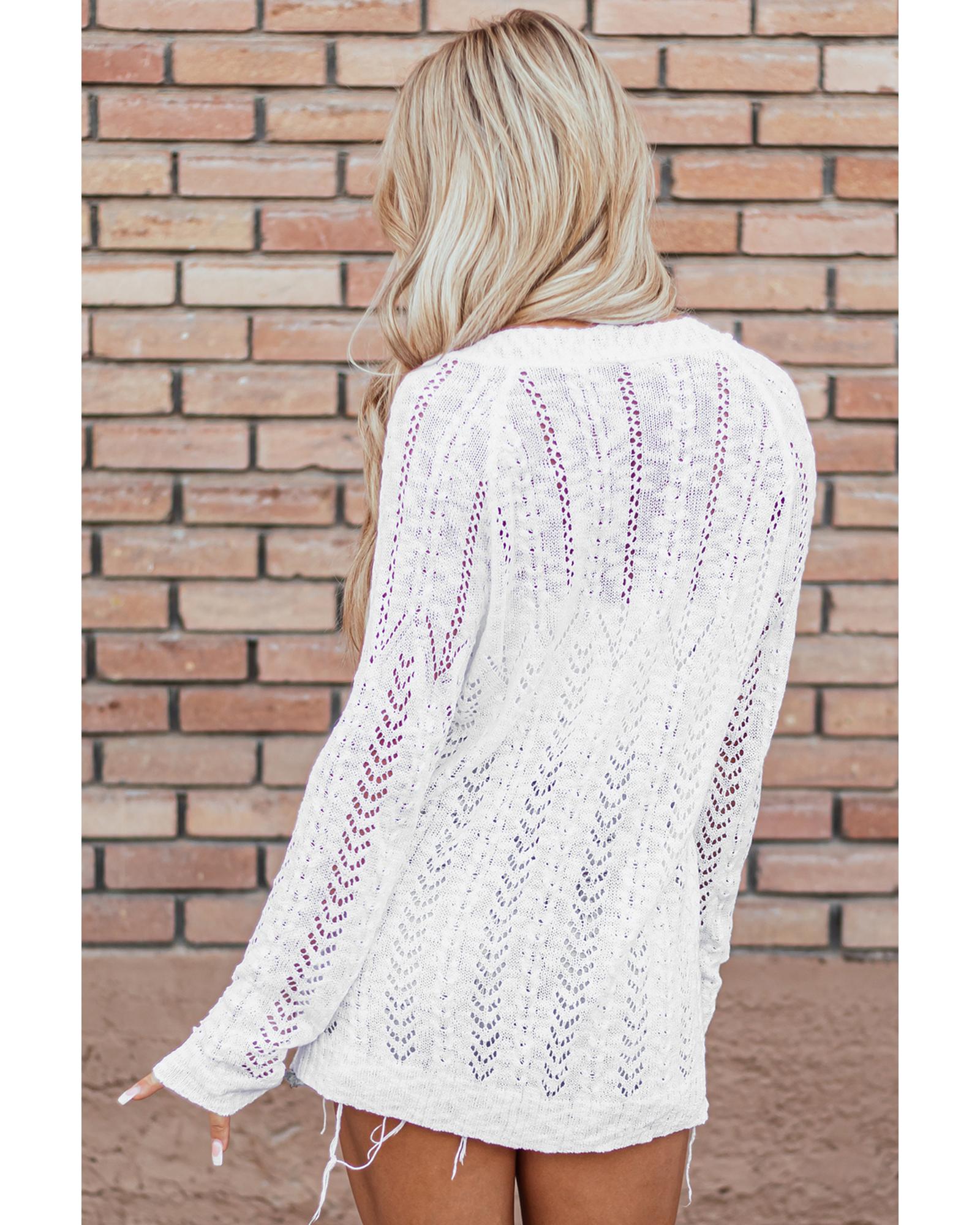 Azura Exchange Khaki Hollow-out Openwork Knit Cardigan - M