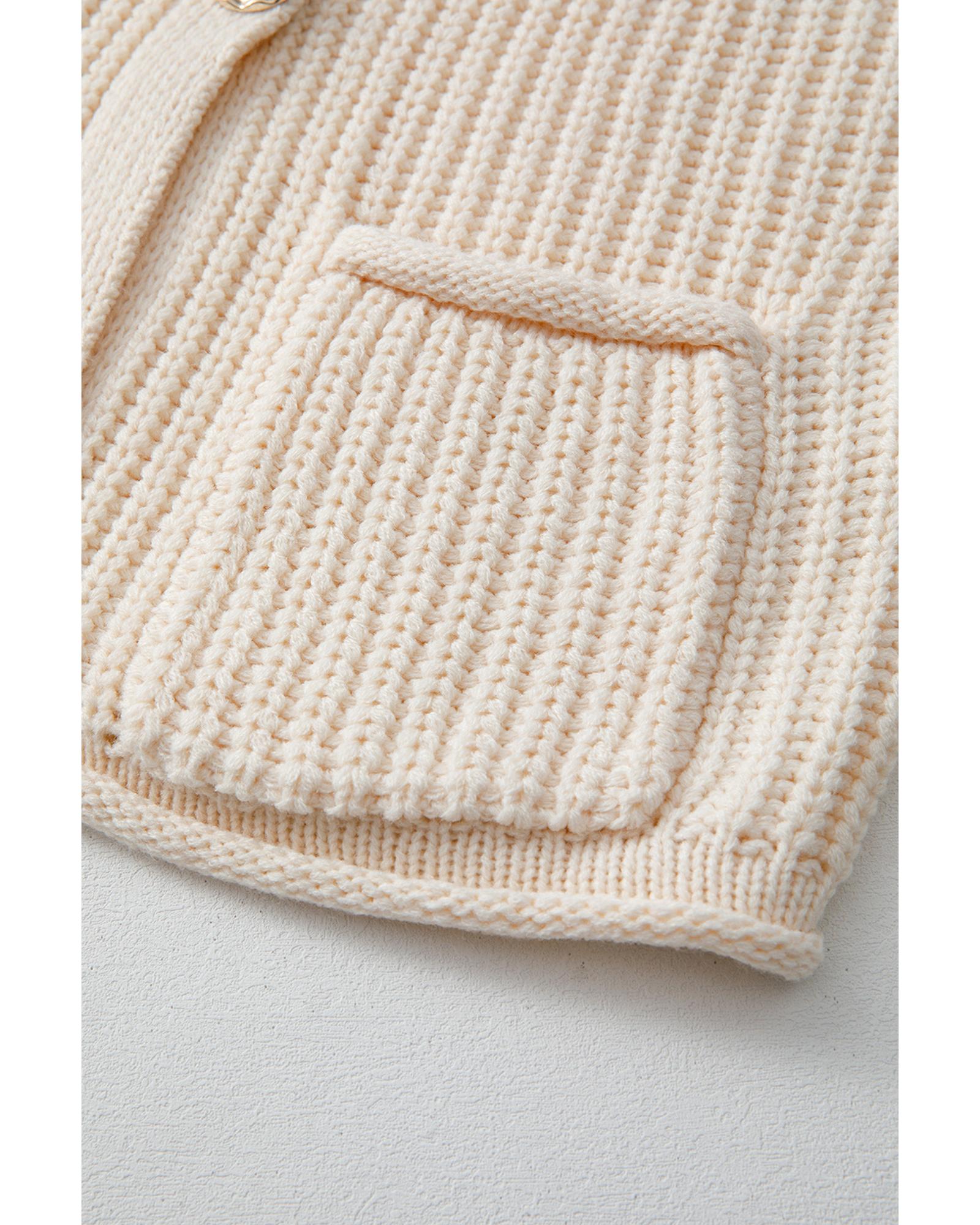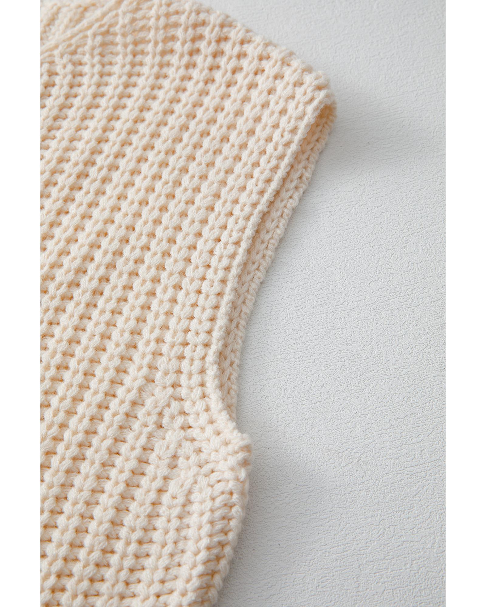 White Solid Textured Knit Side Pockets Buttoned Sweater Vest – S