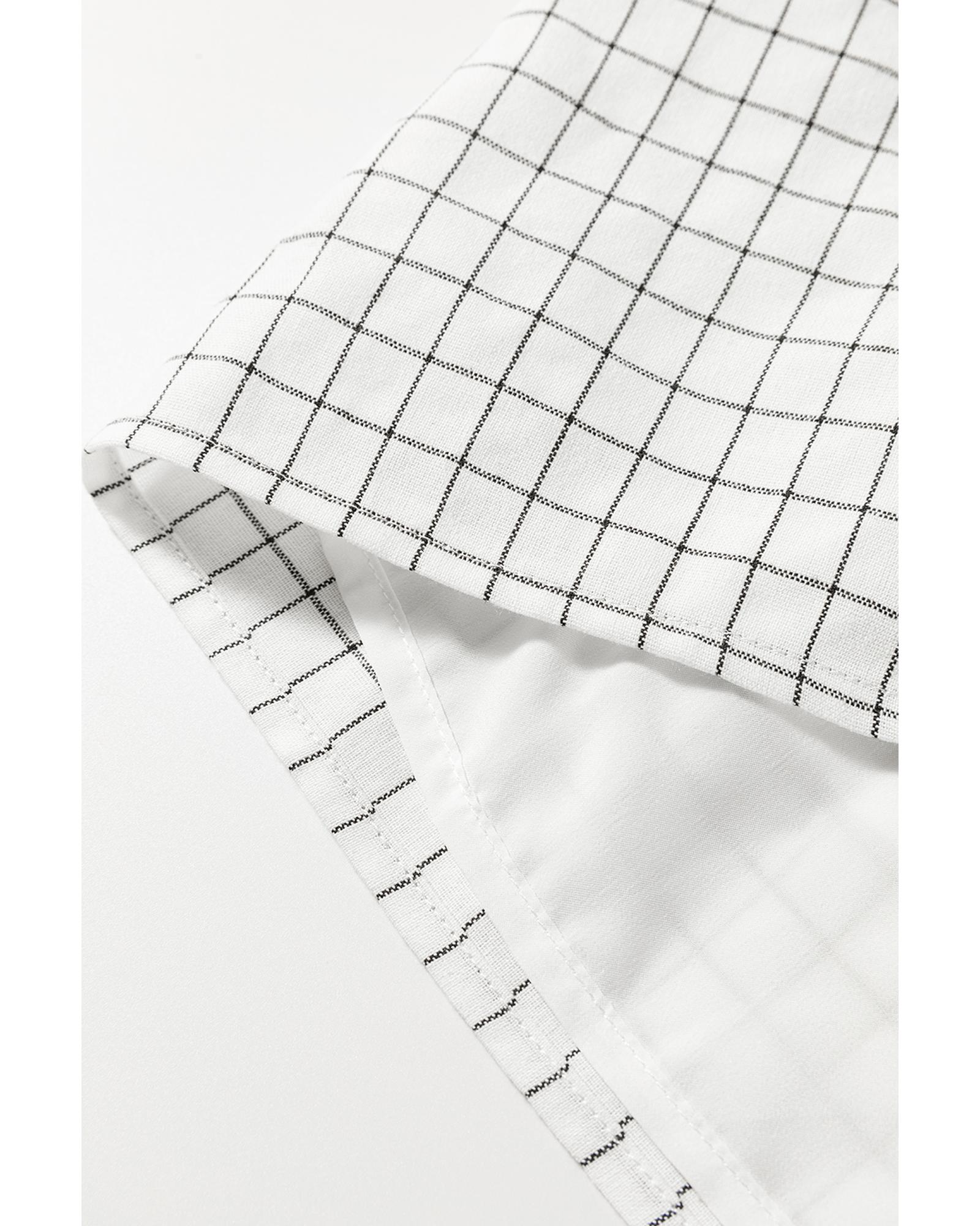 White Stripe Checkered Frilled V Neck Bracelet Sleeve Babydoll Dress - M