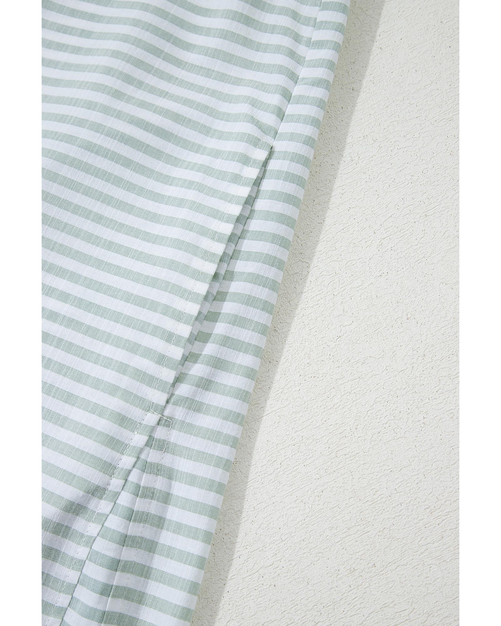 White Stripe Collared V Neck Chest Pocket Long Sleeve Beach Cover up – M