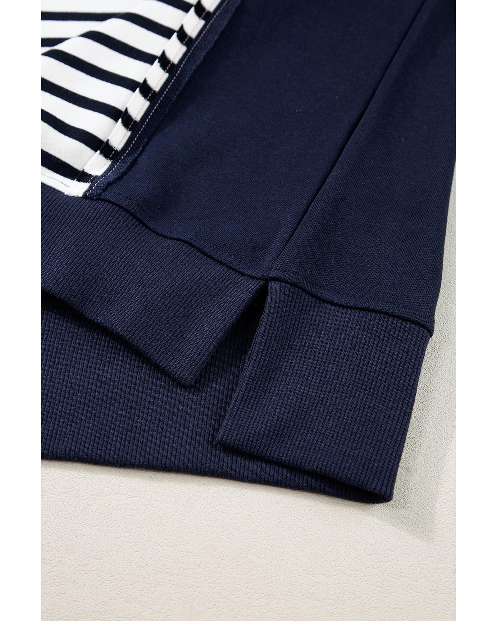 Black Stripe Raglan Sleeve Side Slits Loose Sweatshirt - S