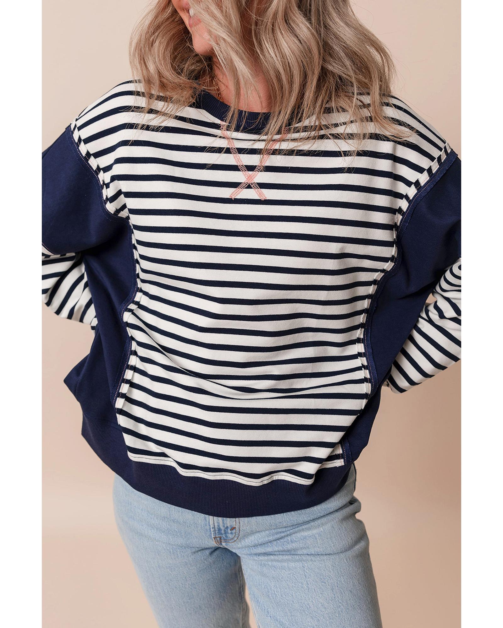 White Stripe Color Block Exposed Seam Loose Fit Sweatshirt – XL