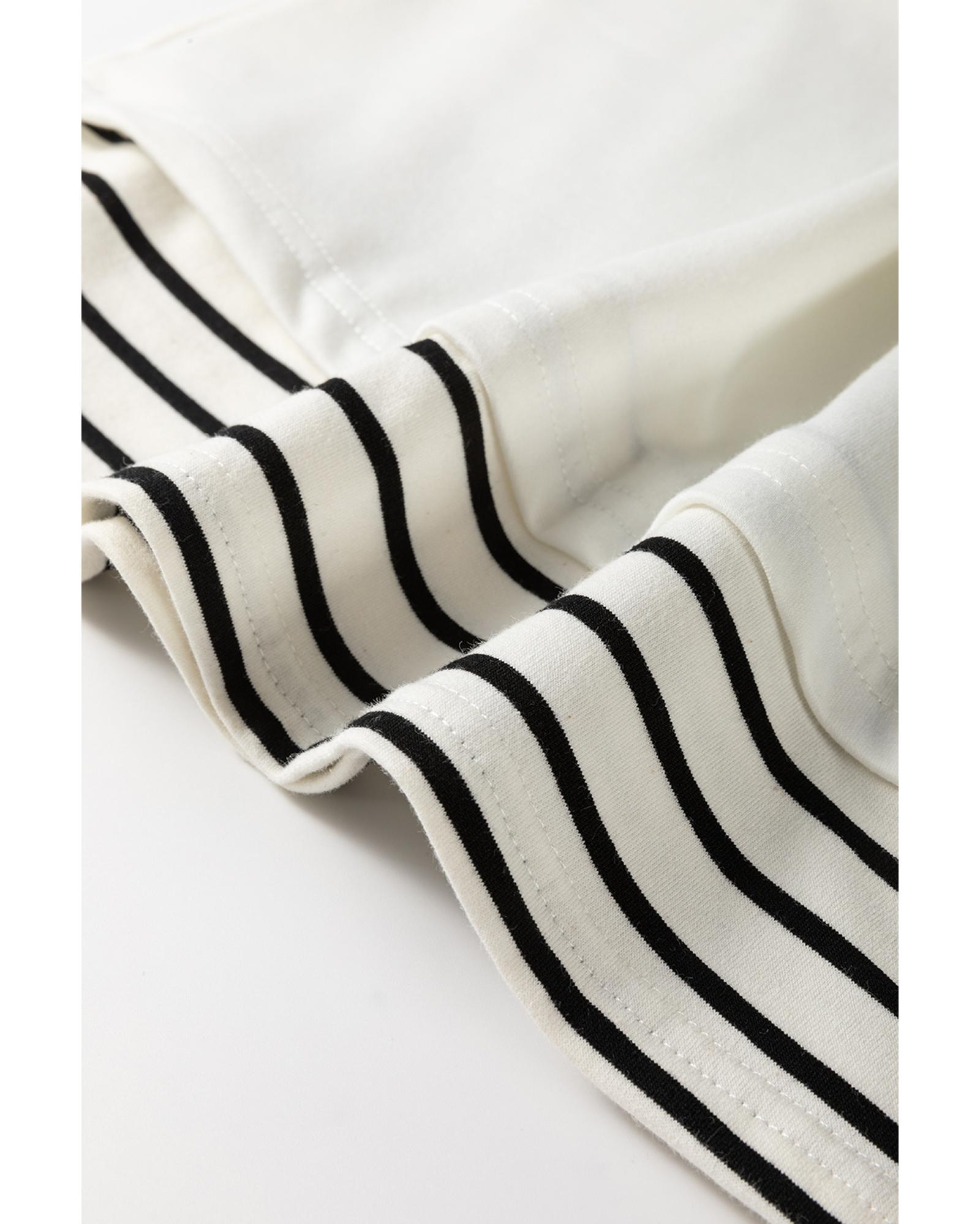 - White Stripe Colorblock Sleeve Exposed Seam Fake