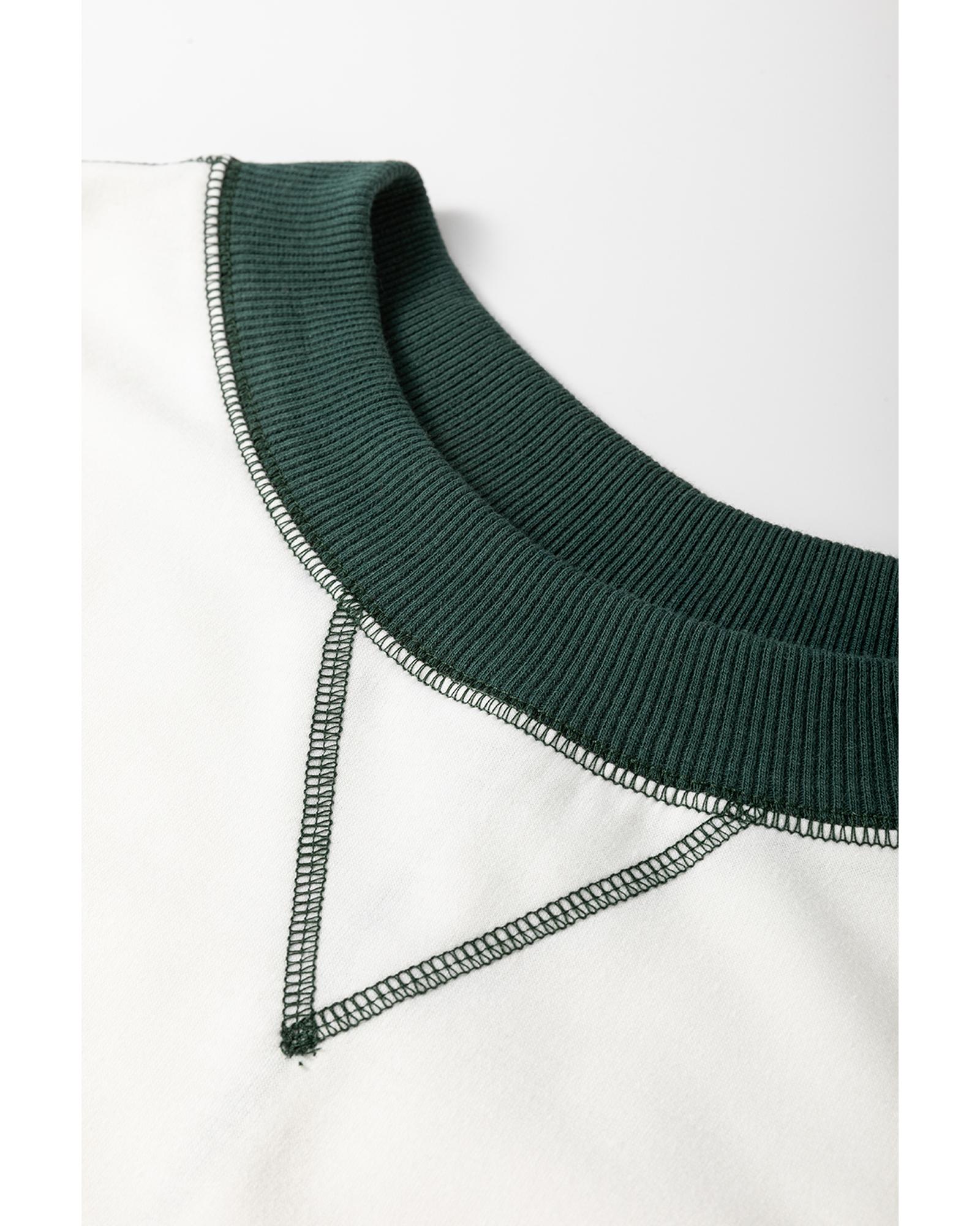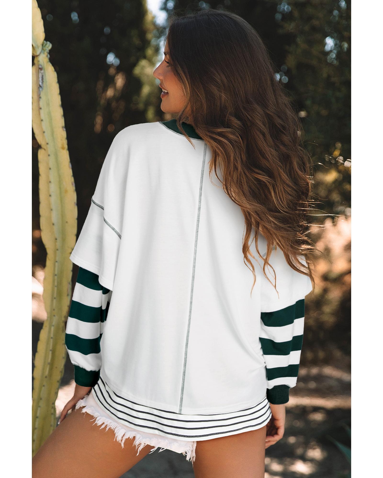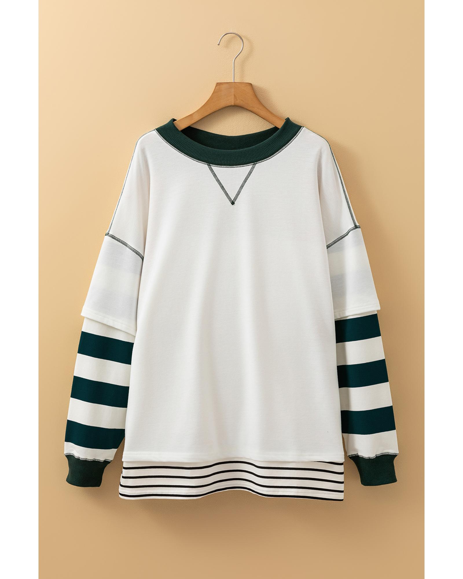 White Stripe Colorblock Sleeve Exposed Seam Fake-2-Piece Sweatshirt – XL