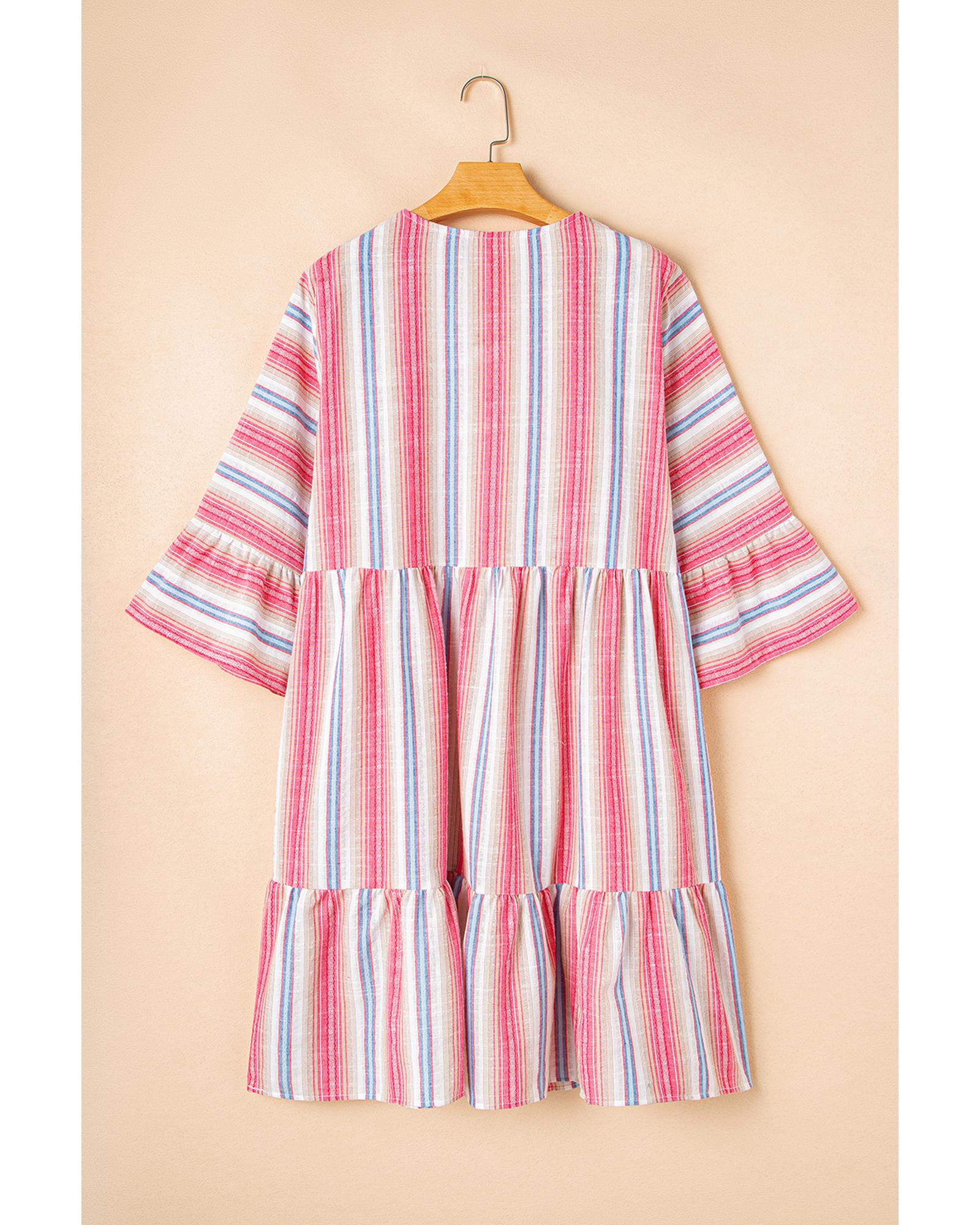 White Stripe Plus Size Embroidered Detail Flared 3/4 Sleeve V Neck Dress – 4X