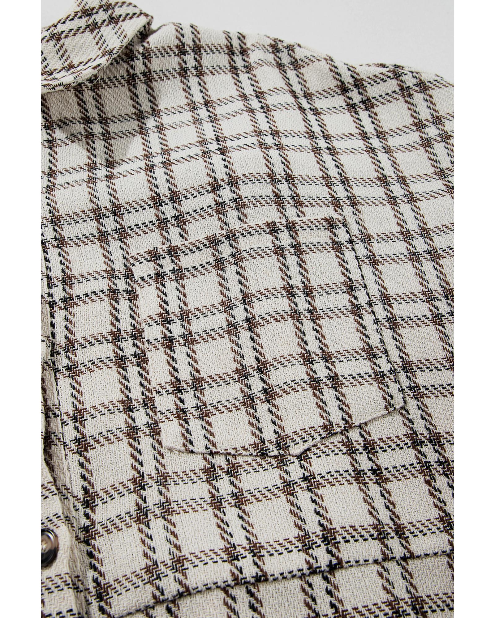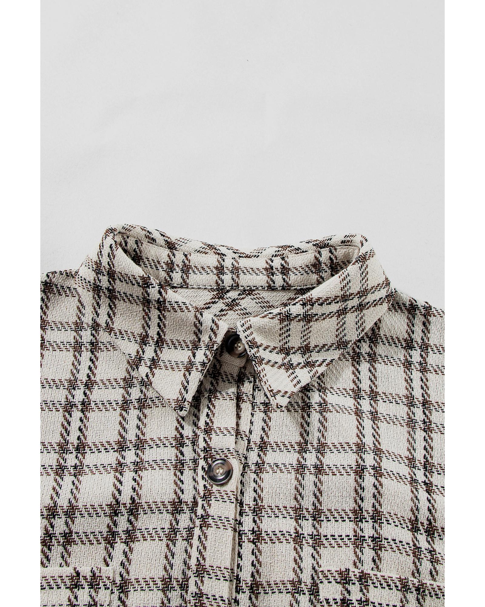 White Plaid Print Tunic Plus Size Shacket with Slits - 2X