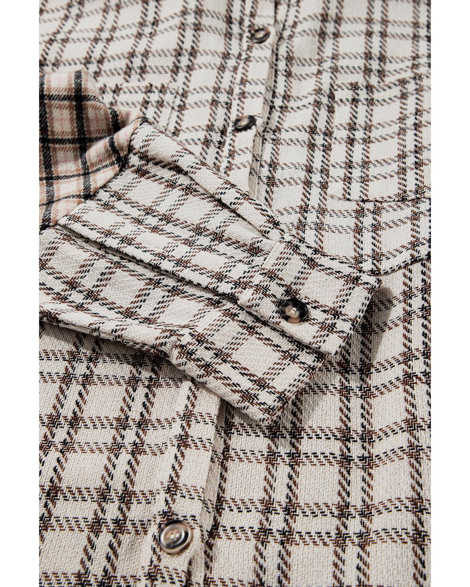 White Stripe Plus Size Plaid Buttoned Raw Hem Tunic Shirt Dress – 4X