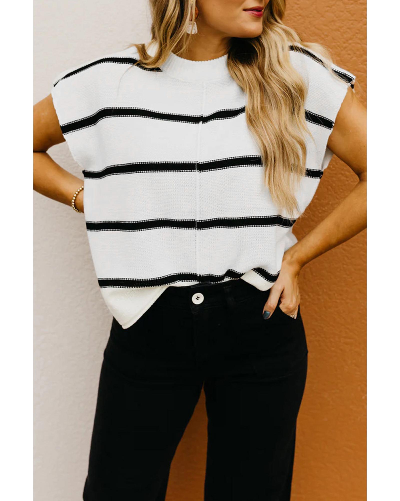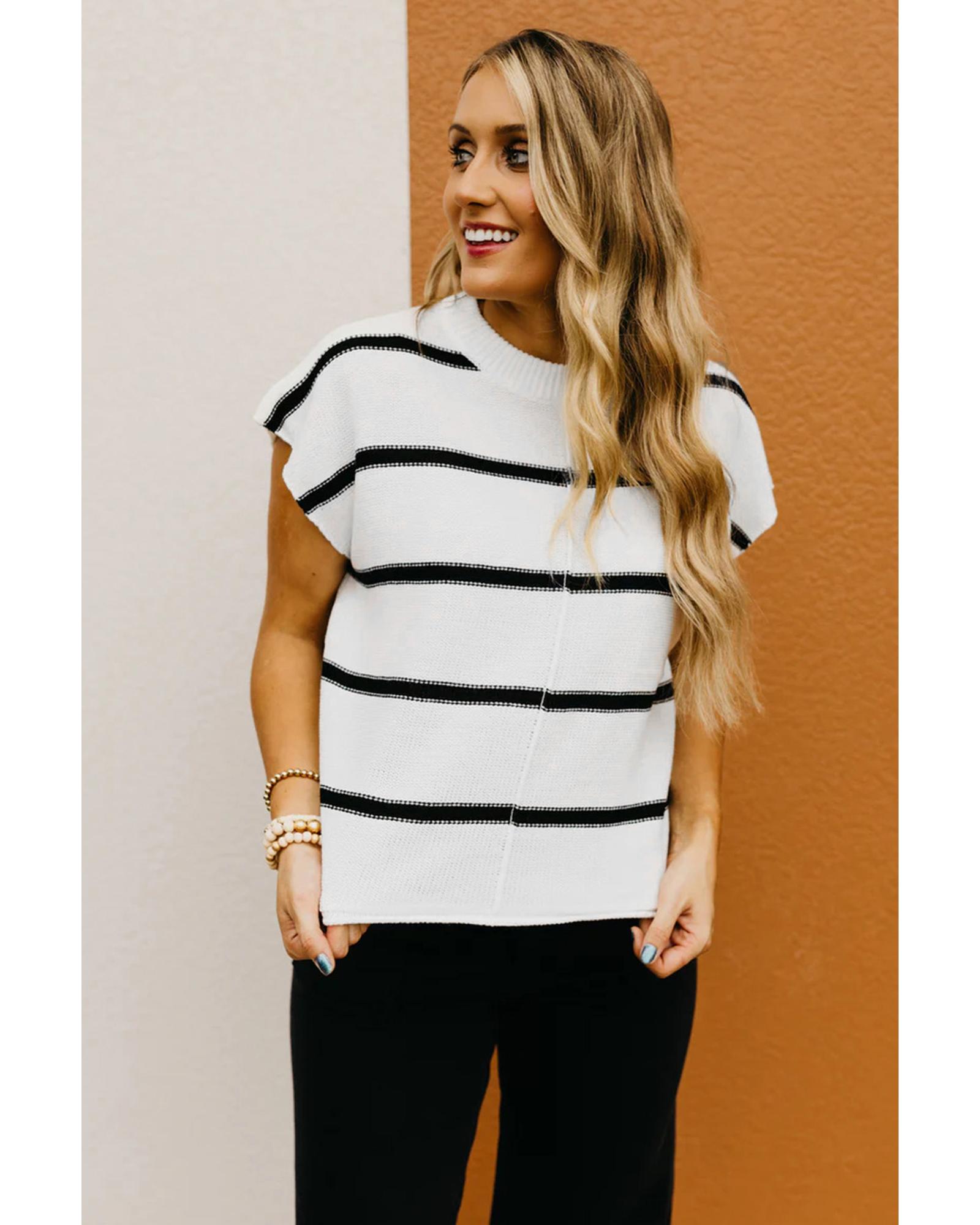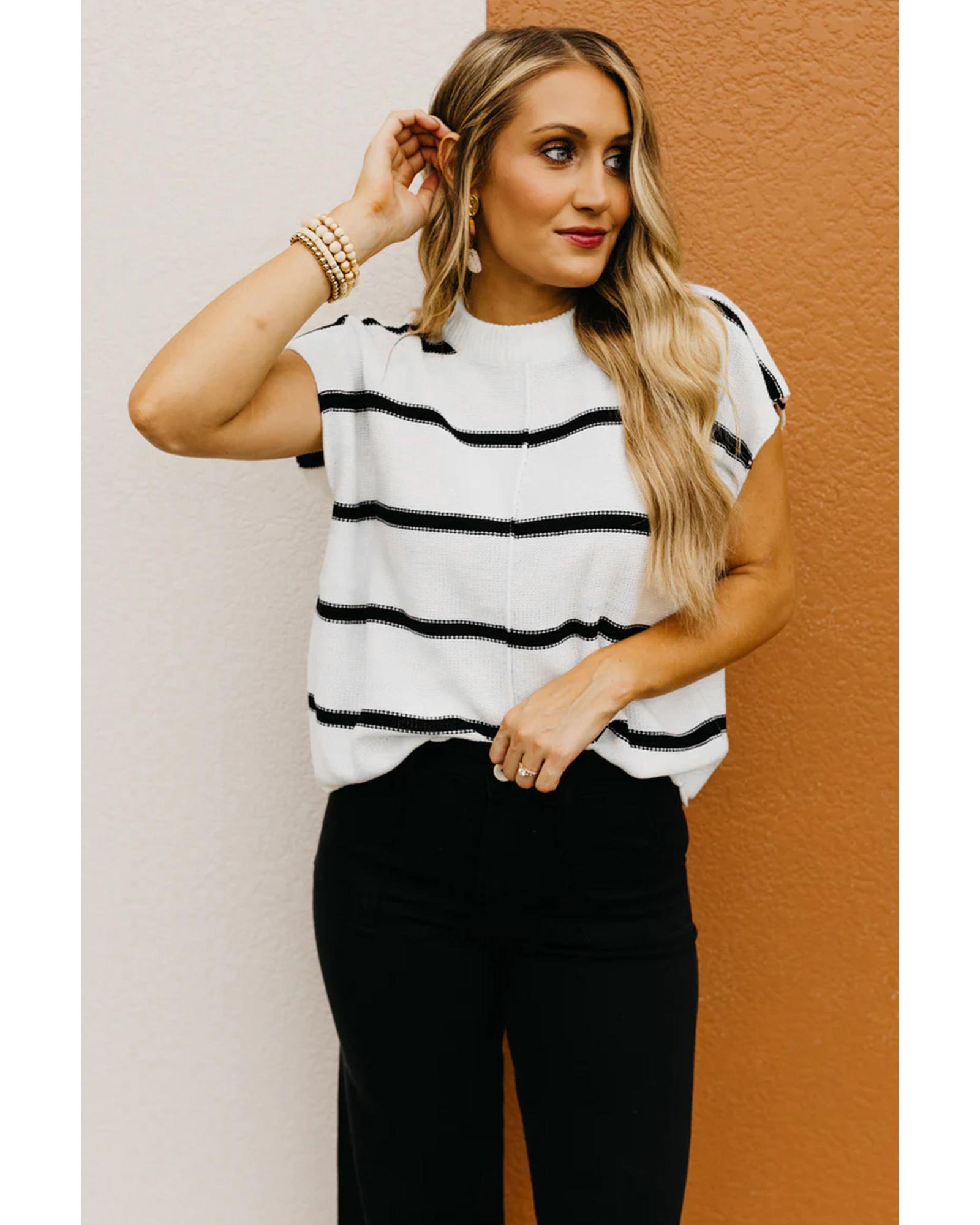 White Striped Batwing Sleeve Sweater Tee – M
