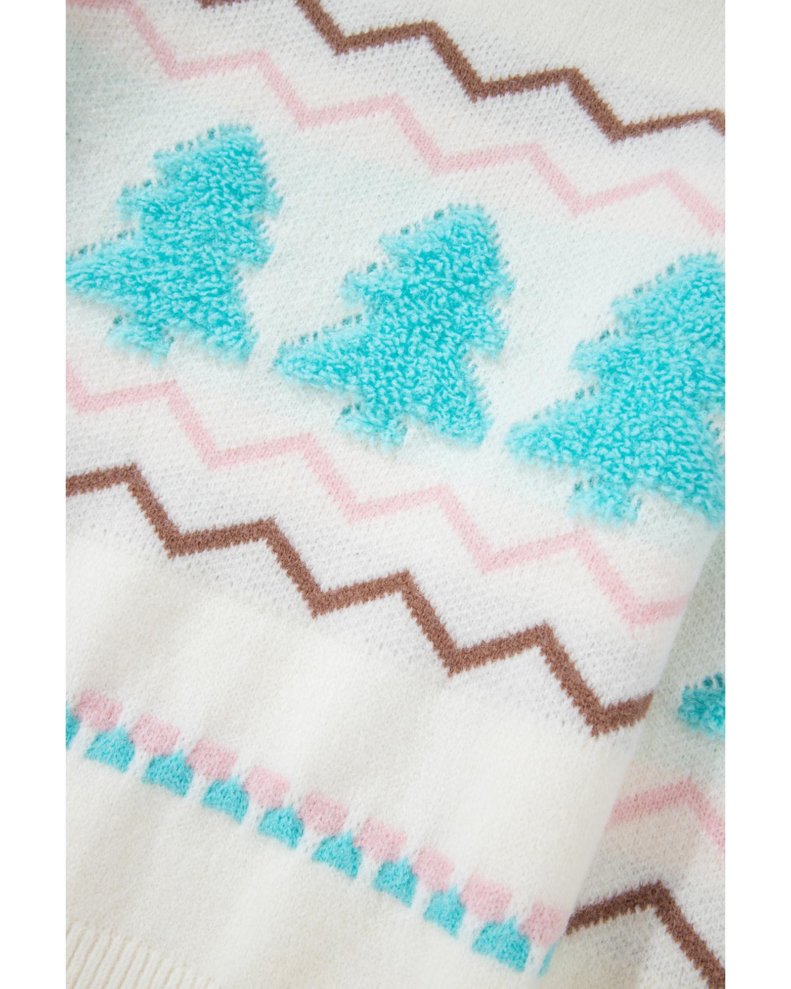 White Striped Christmas Tree Ribbed Trim Drop Shoulder Sweater – M