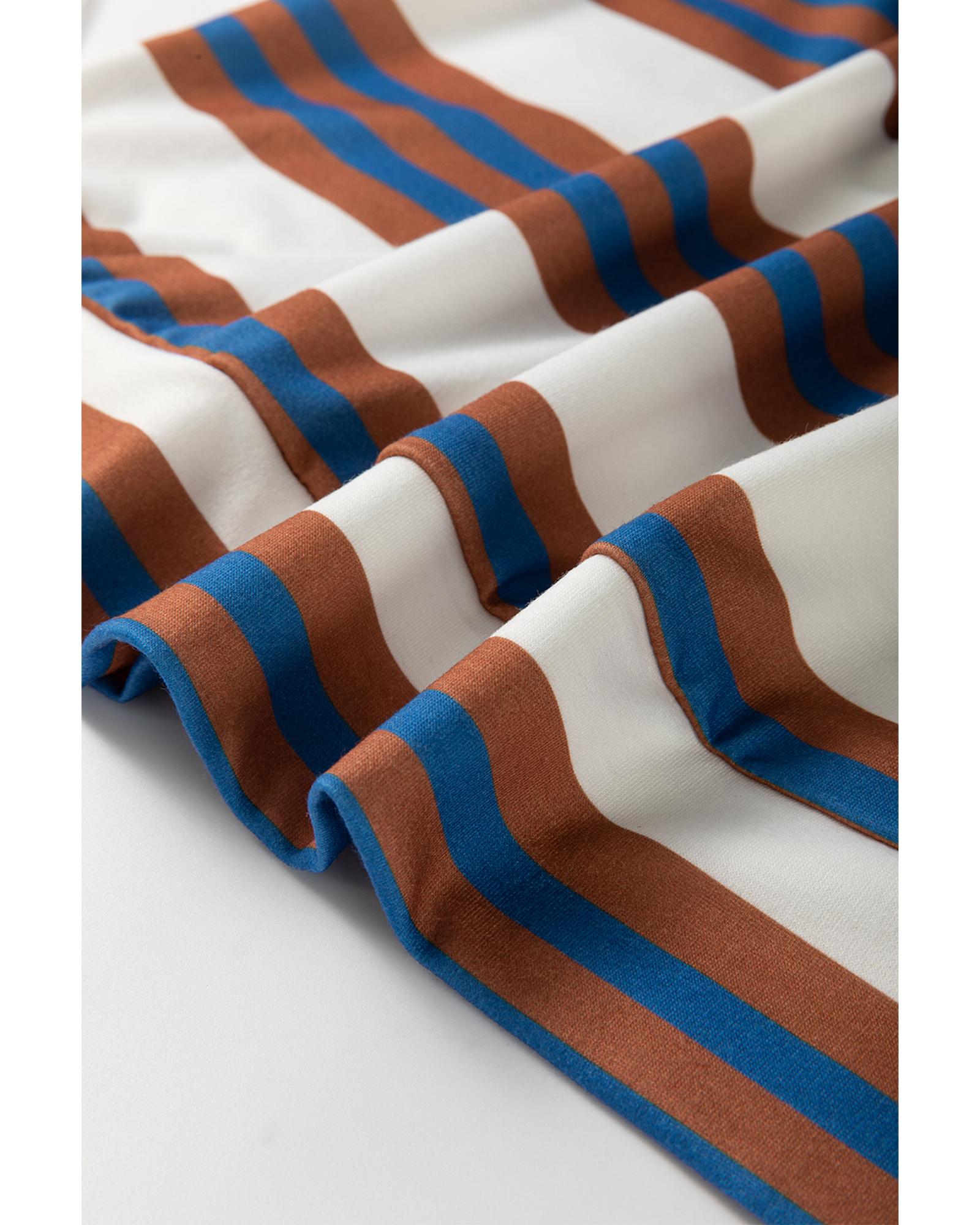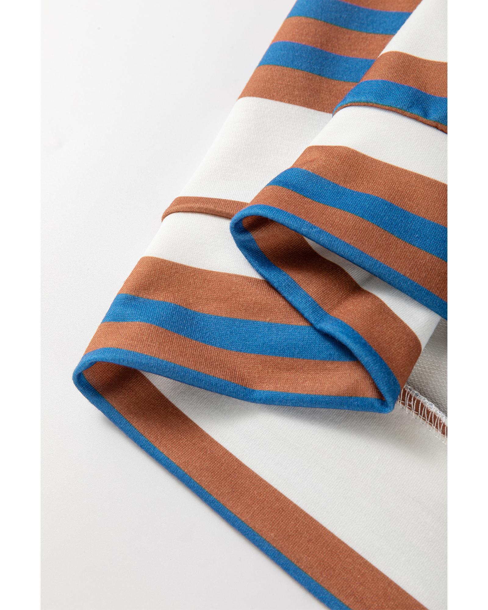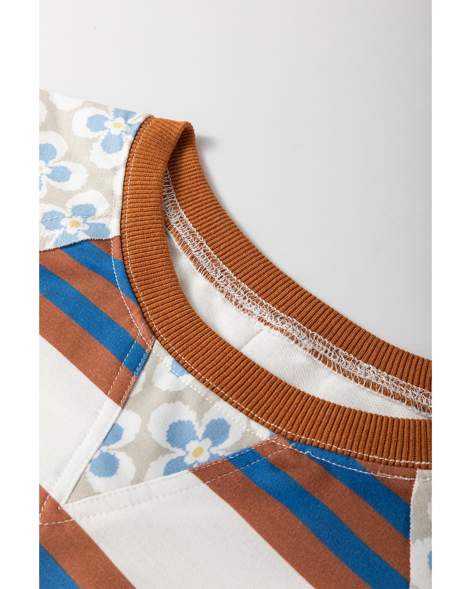 White Striped Floral Printed Patchwork Lantern Sleeve Blouse – XL
