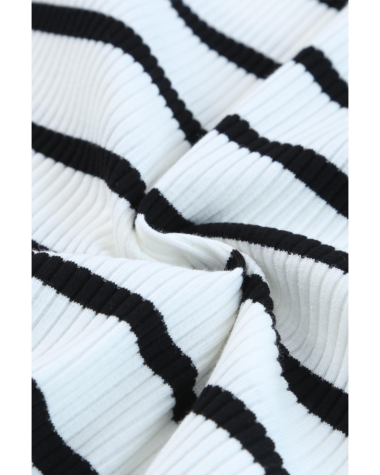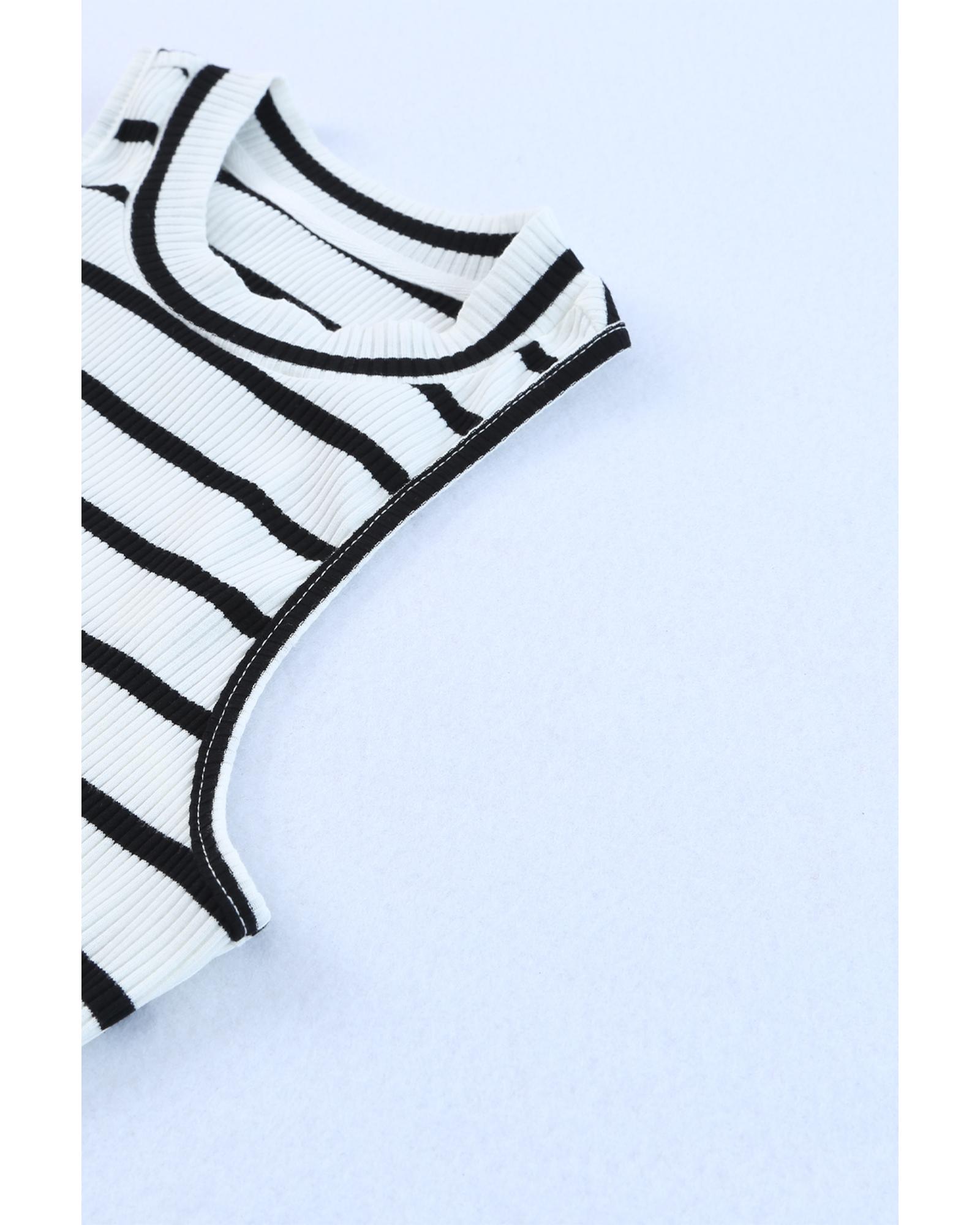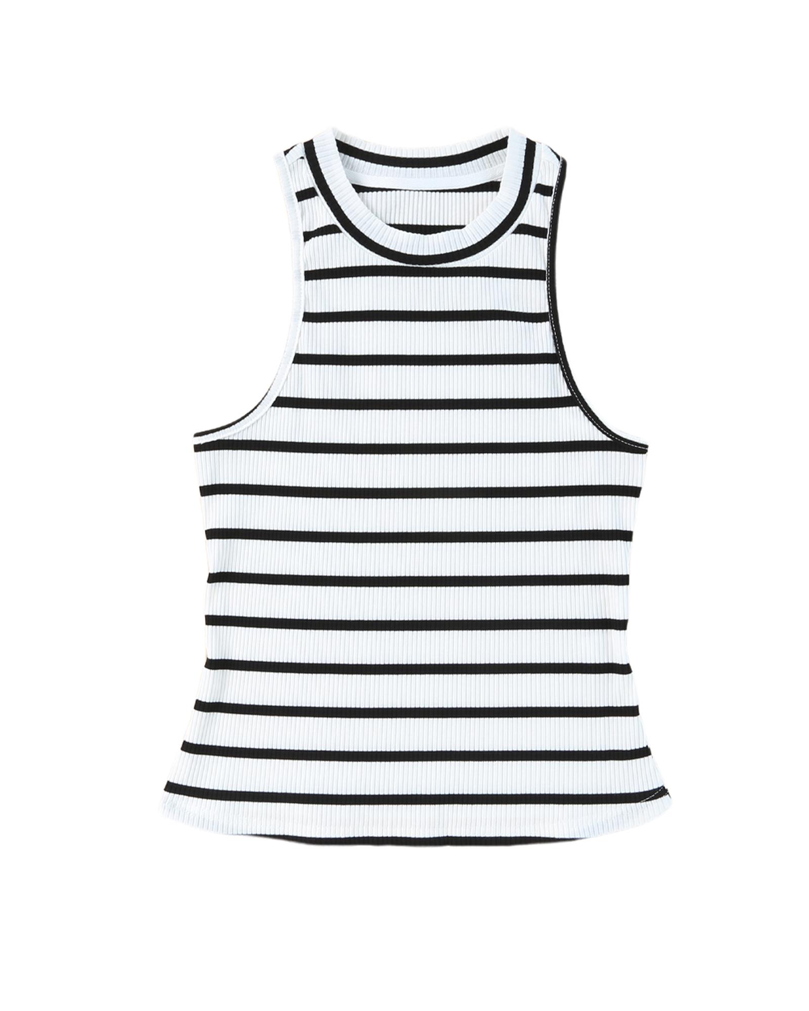 White Striped Print Ribbed O-neck Sleeveless Top – XL