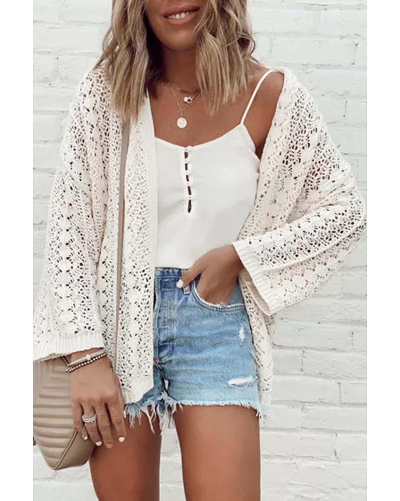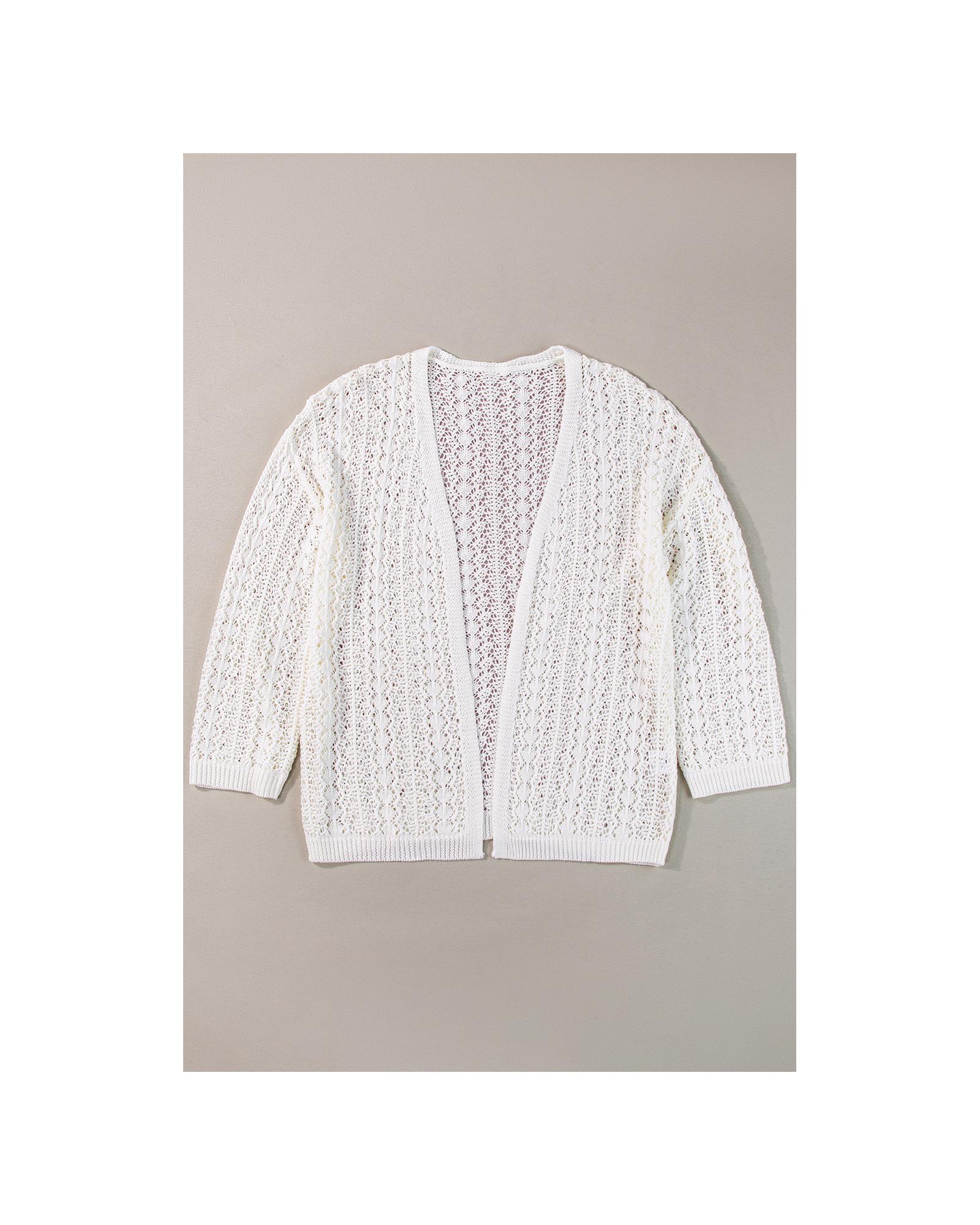 - White Stylish Hollow Out Knit Drop Shoulder Cardigan
