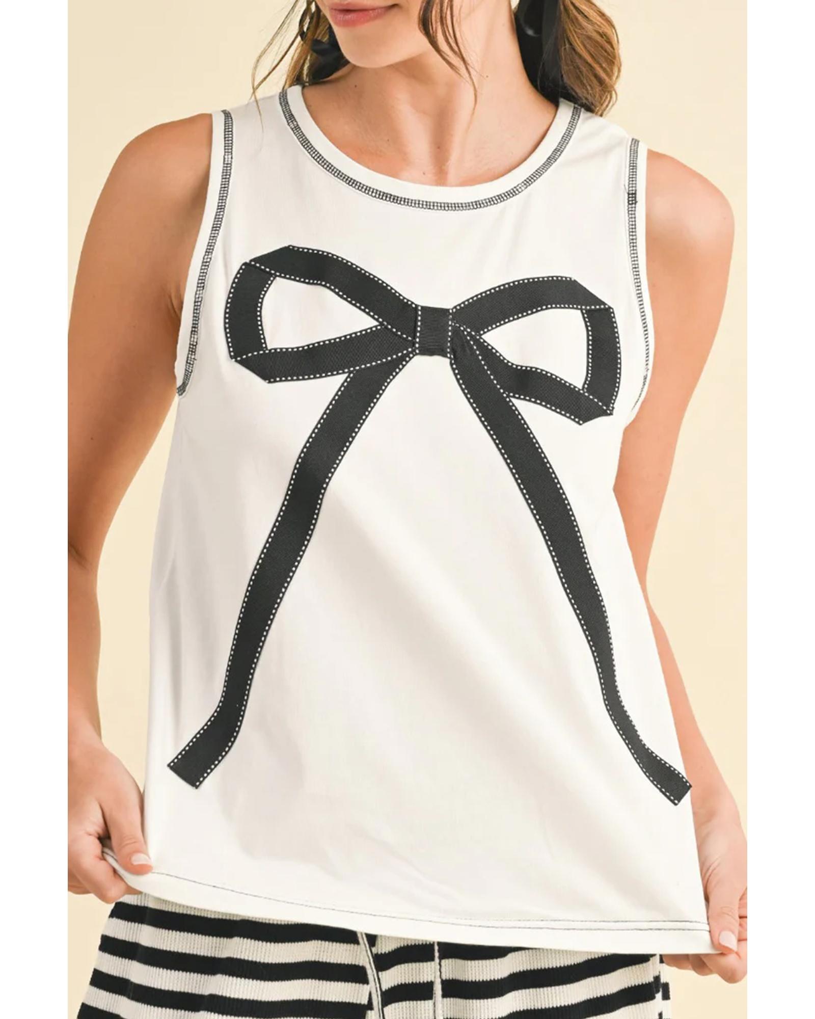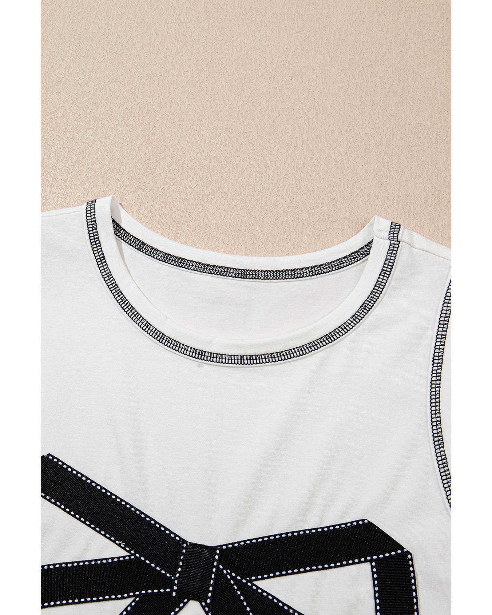 White Sweet Bow Stitching Trim Sleeveless Top – L