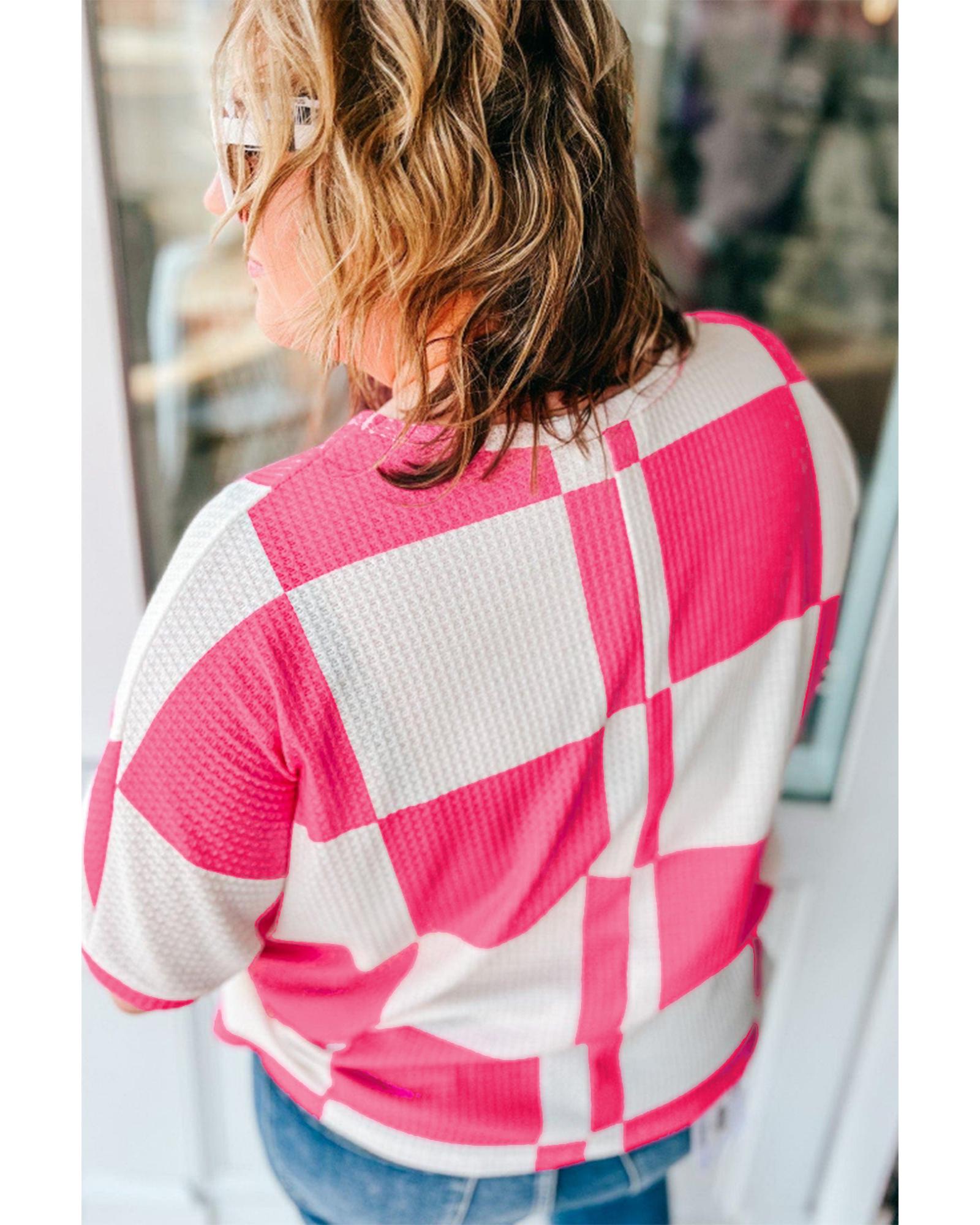 White Textured Checkerboard Round Neck Plus Size T Shirt – 2X
