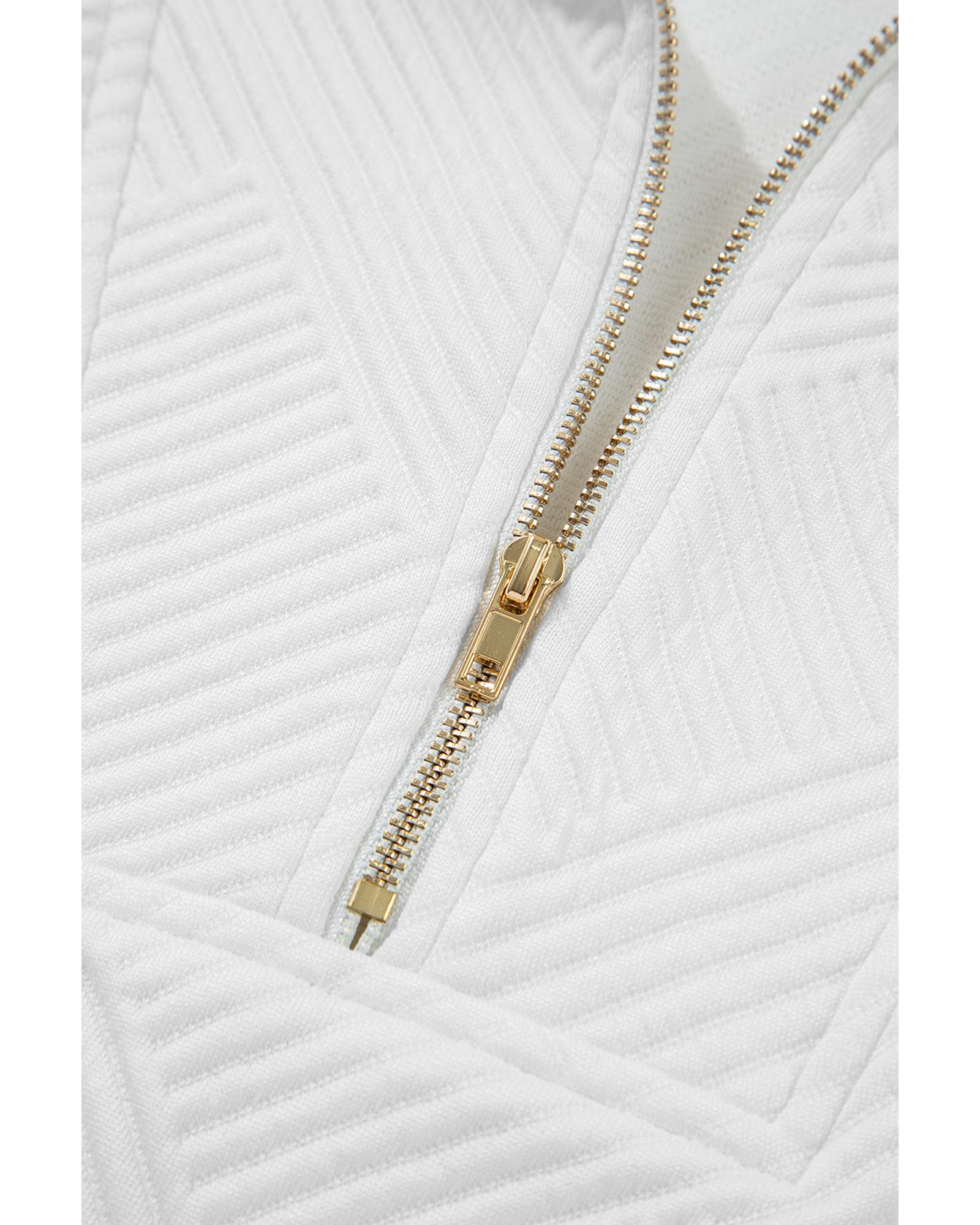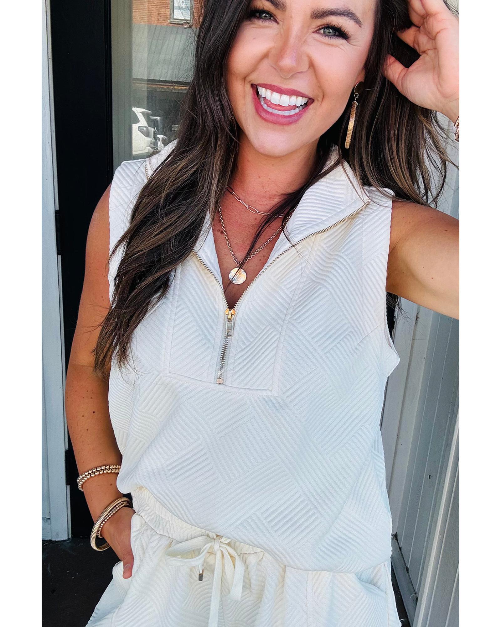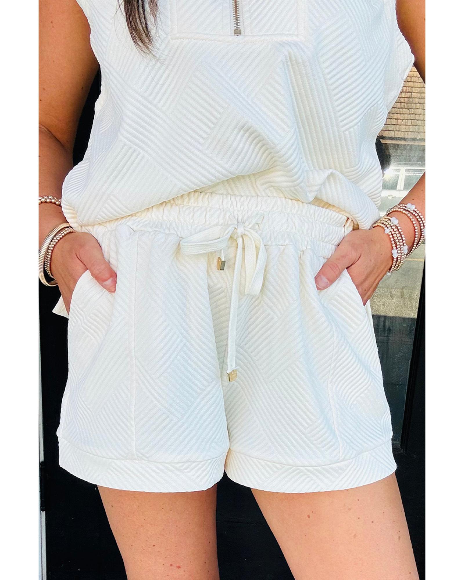 White Textured Half Zip Tank Top Drawstring Shorts Set – XL